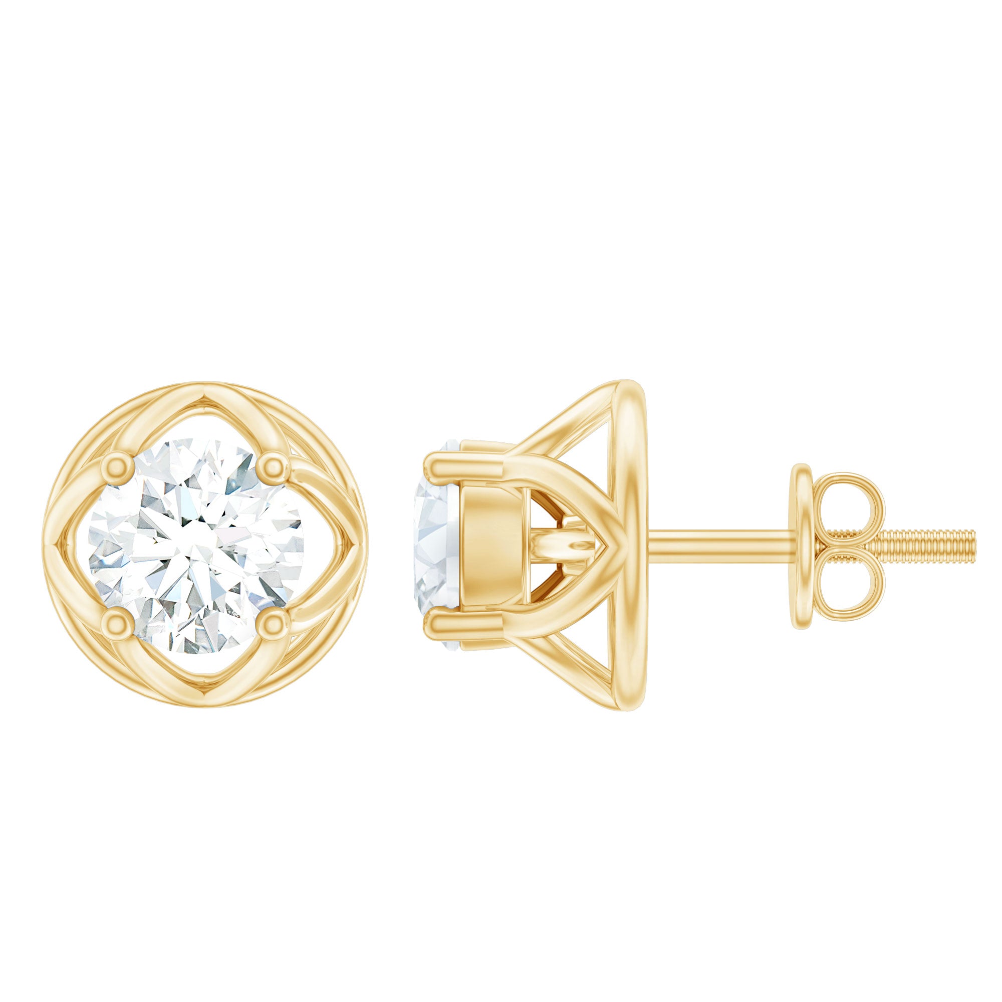 Bloom like a flower when you flaunt these Flower Stud Earrings with a Round Brilliant Moissanite with a unique flower like pattern accentuating the look of these Flower Stud Earrings.
