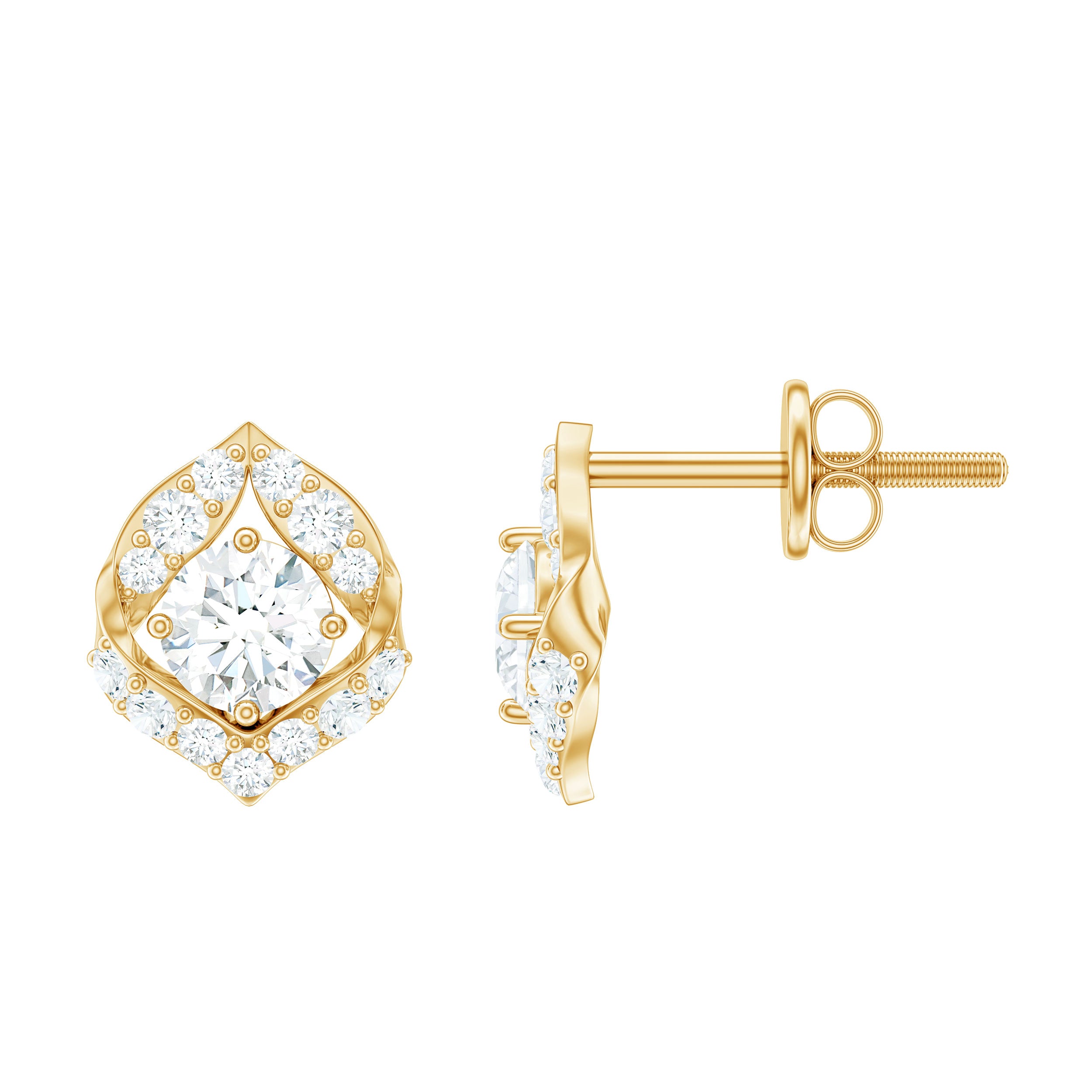 1 CT Moissanite Petal Stud Earrings with Screw Back