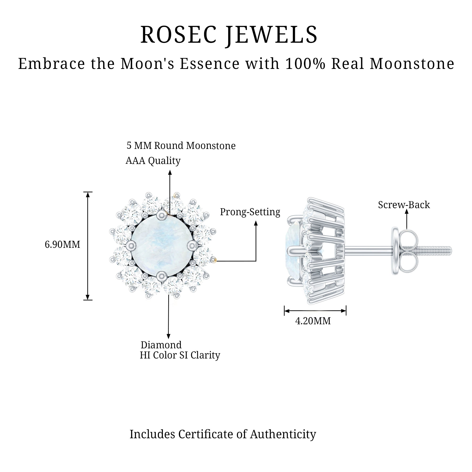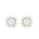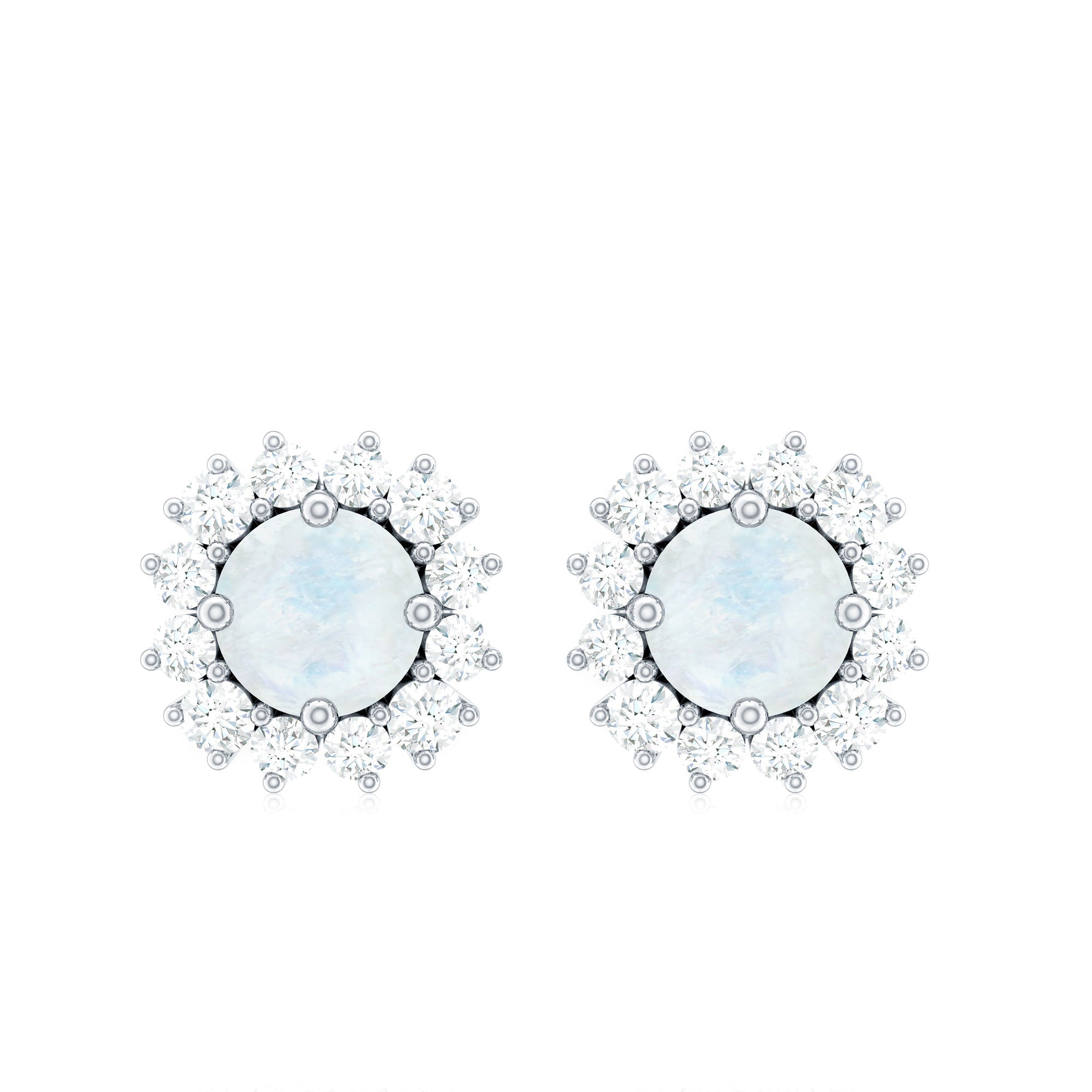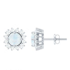 1 CT Moonstone and Diamond Halo Stud Earrings