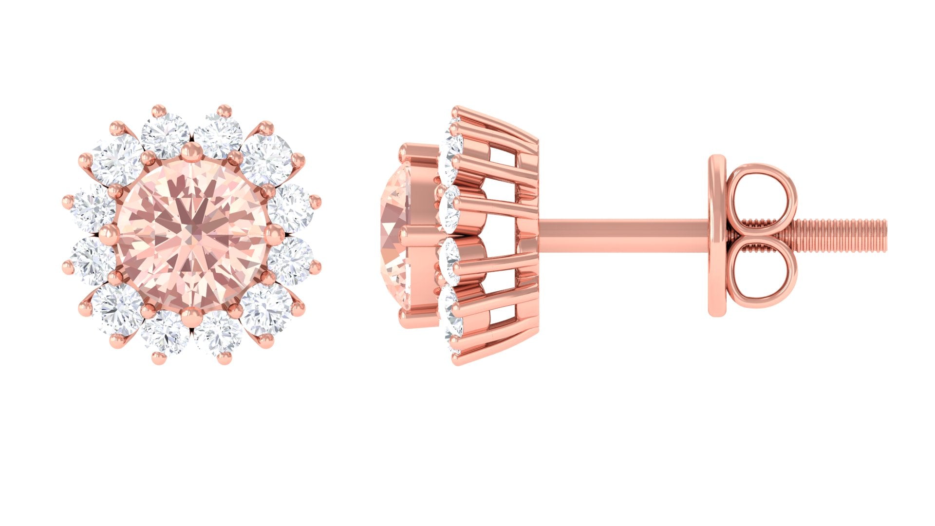 1 CT Morganite and Diamond Halo Stud Earrings