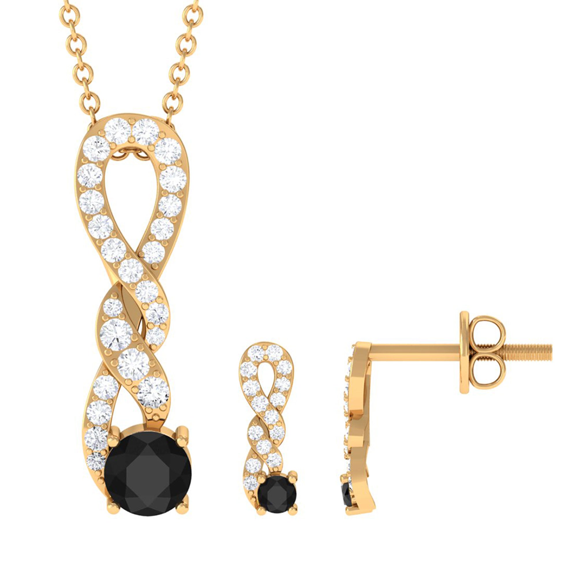 Strike a wonderful statement with this Infinity Jewelry Set. As it is beautifully decorated with Round Shape Black Onyx secured in 4 Prong Setting and Round Diamonds. This Onyx Pendant and Earrings Set makes a thoughtful present for her, so get it for the special person in your life and make her day even more memorable.
