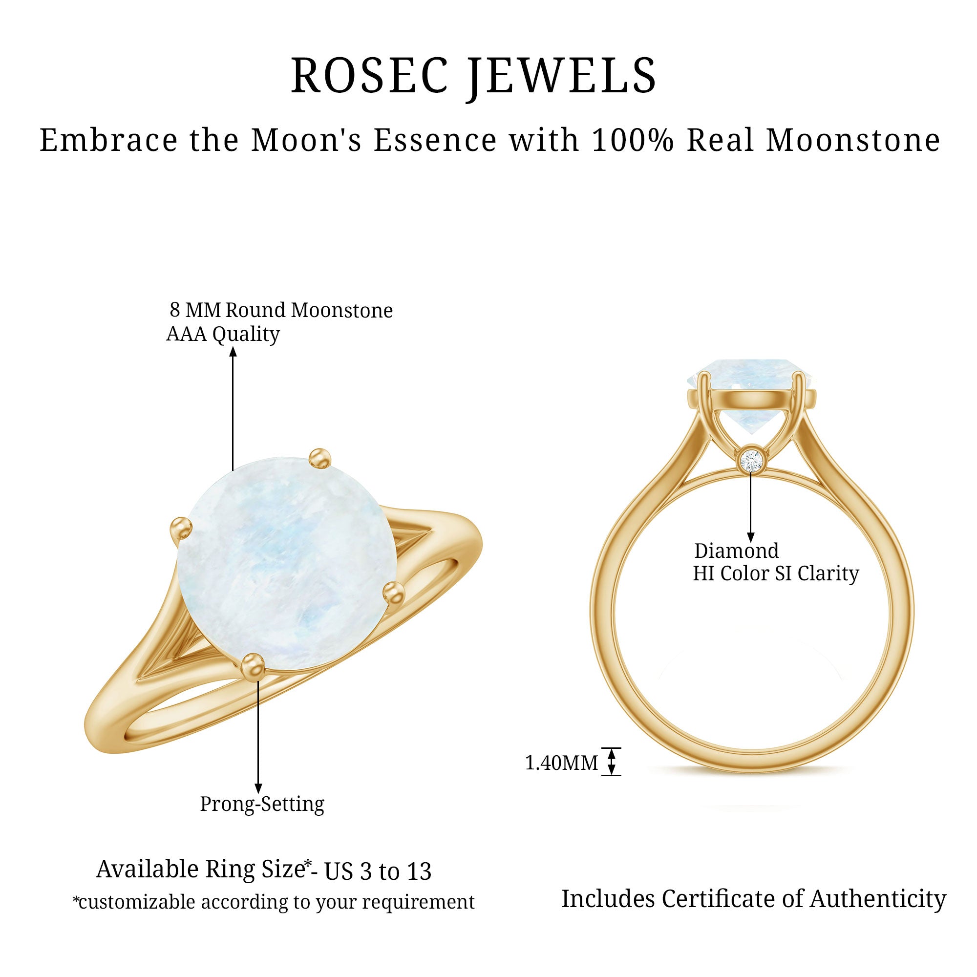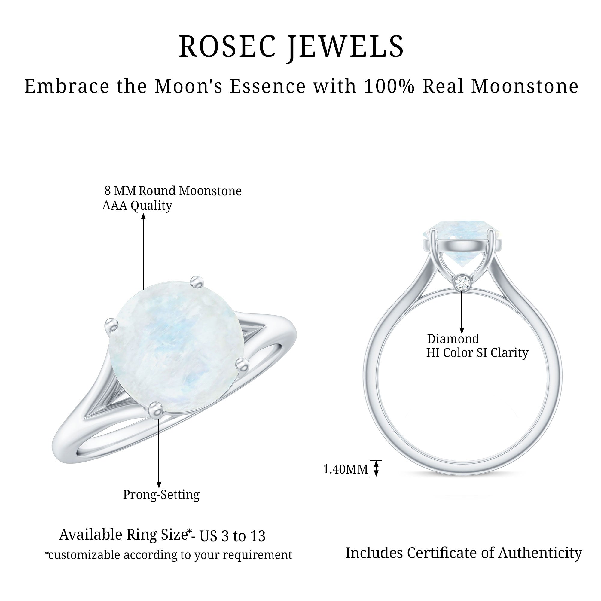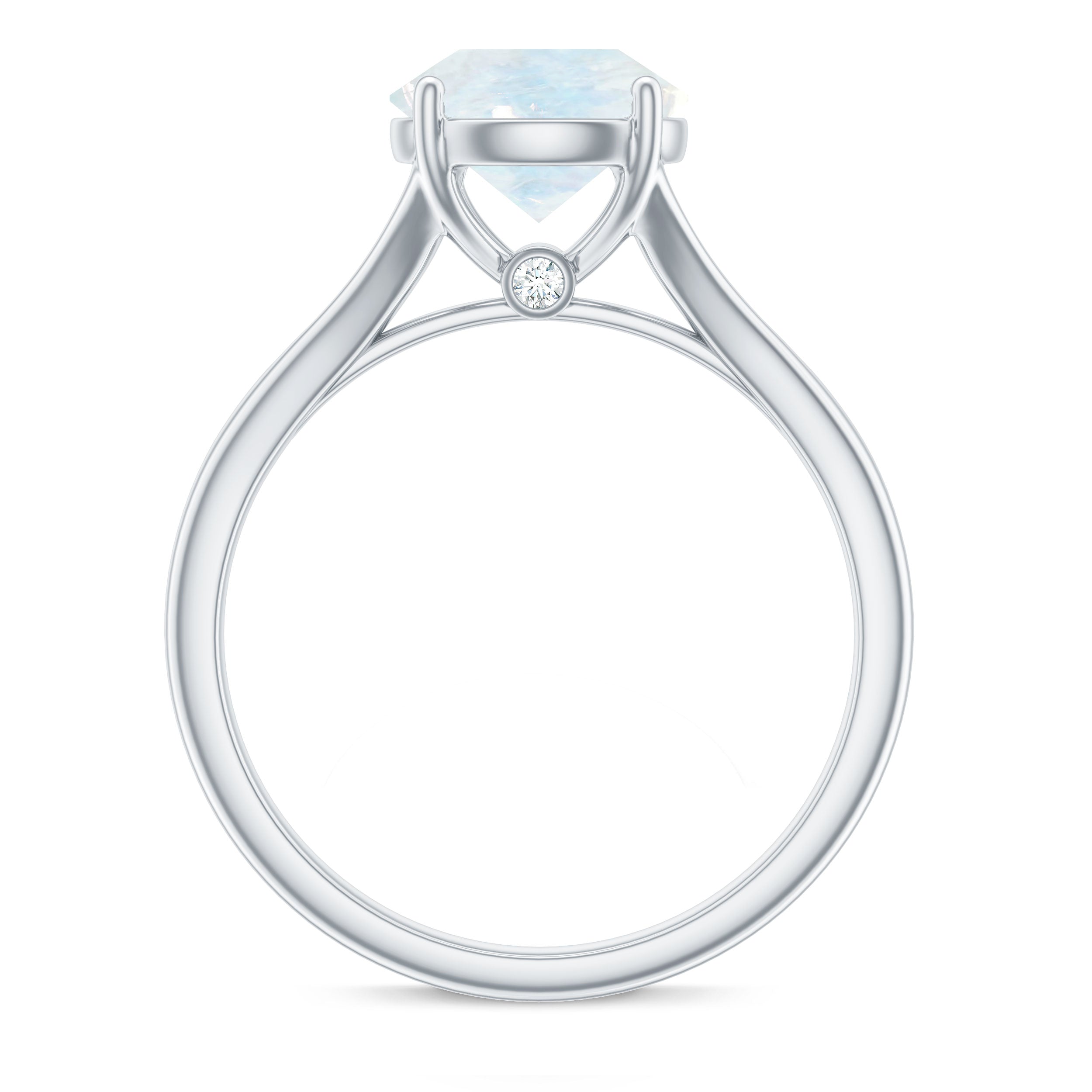 1 CT Natural Moonstone Solitaire Ring with Surprise Diamond