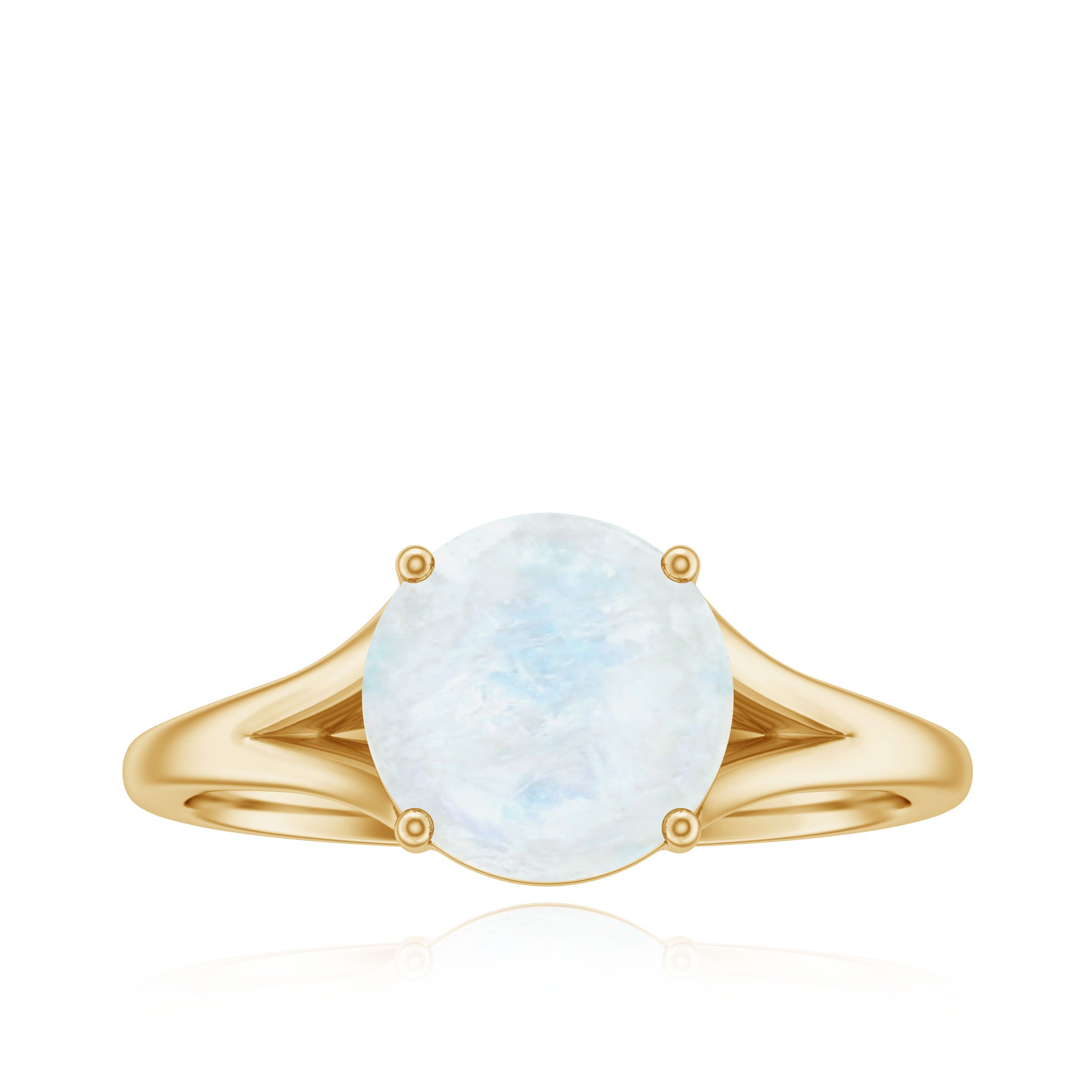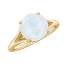 This pretty enough Solitaire Ring is adorned with Round Shape Moonstone as Solitaire in 4 Prong Setting, with a tiny Surprise Diamond. This Solitaire Ring is Composed in Gold.