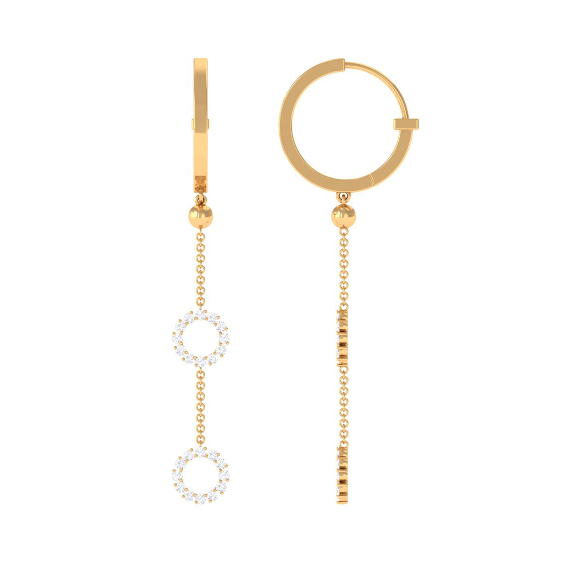 1 CT Open Circle Diamond Dangle Chain Hoop Earrings