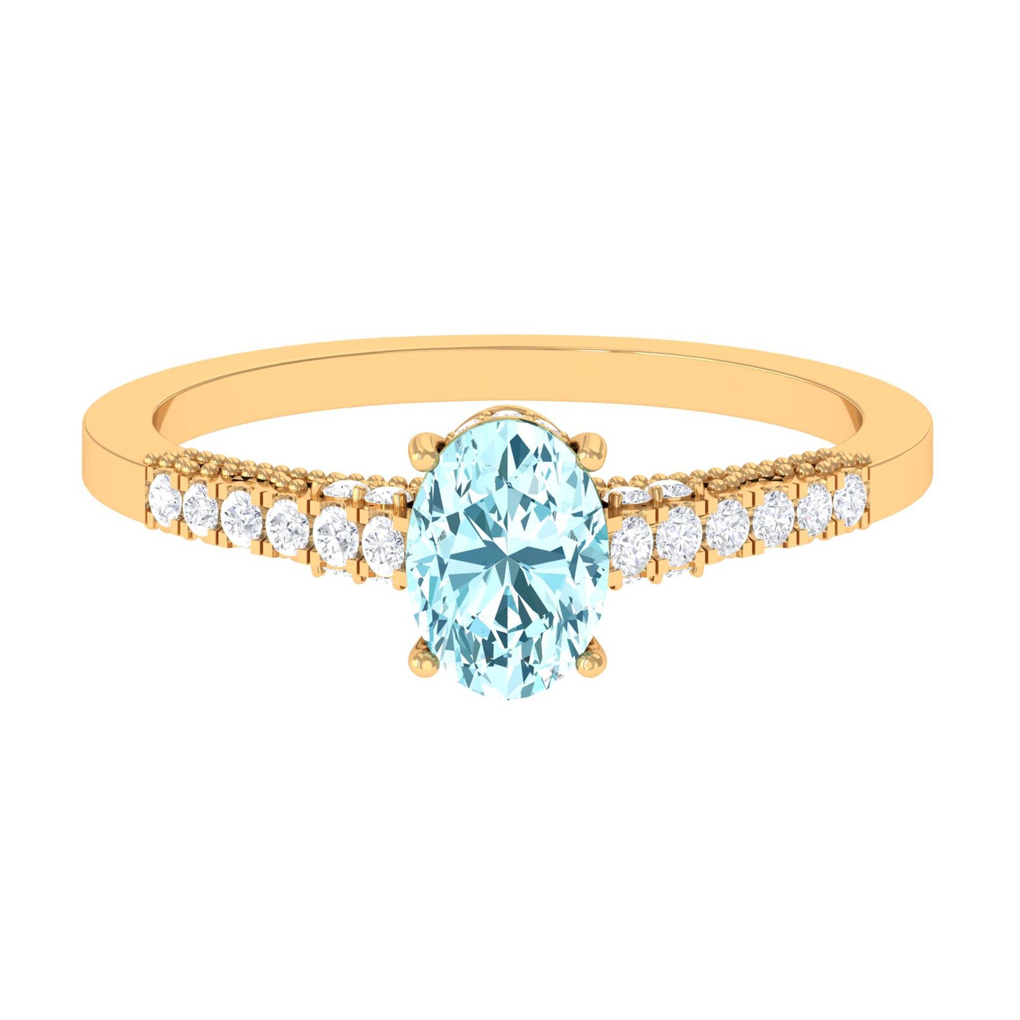 1 CT Oval Aquamarine Solitaire Engagement Ring with Diamond Side Stones
