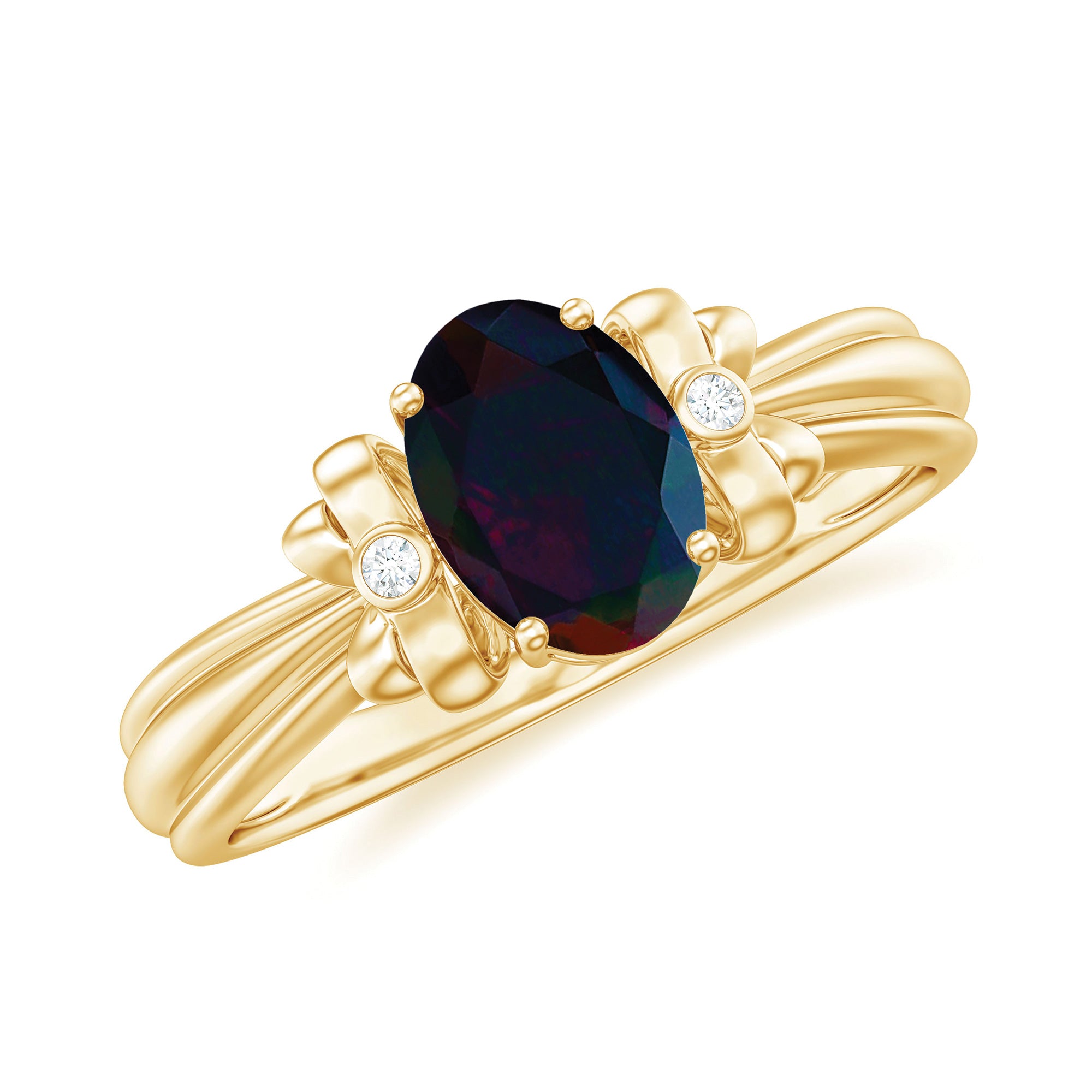 1 CT Oval Black Opal Solitaire Floral Ring with Diamond Accent