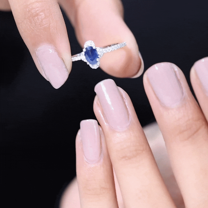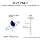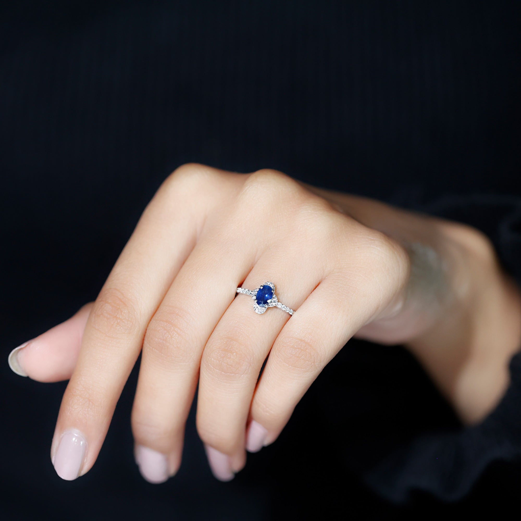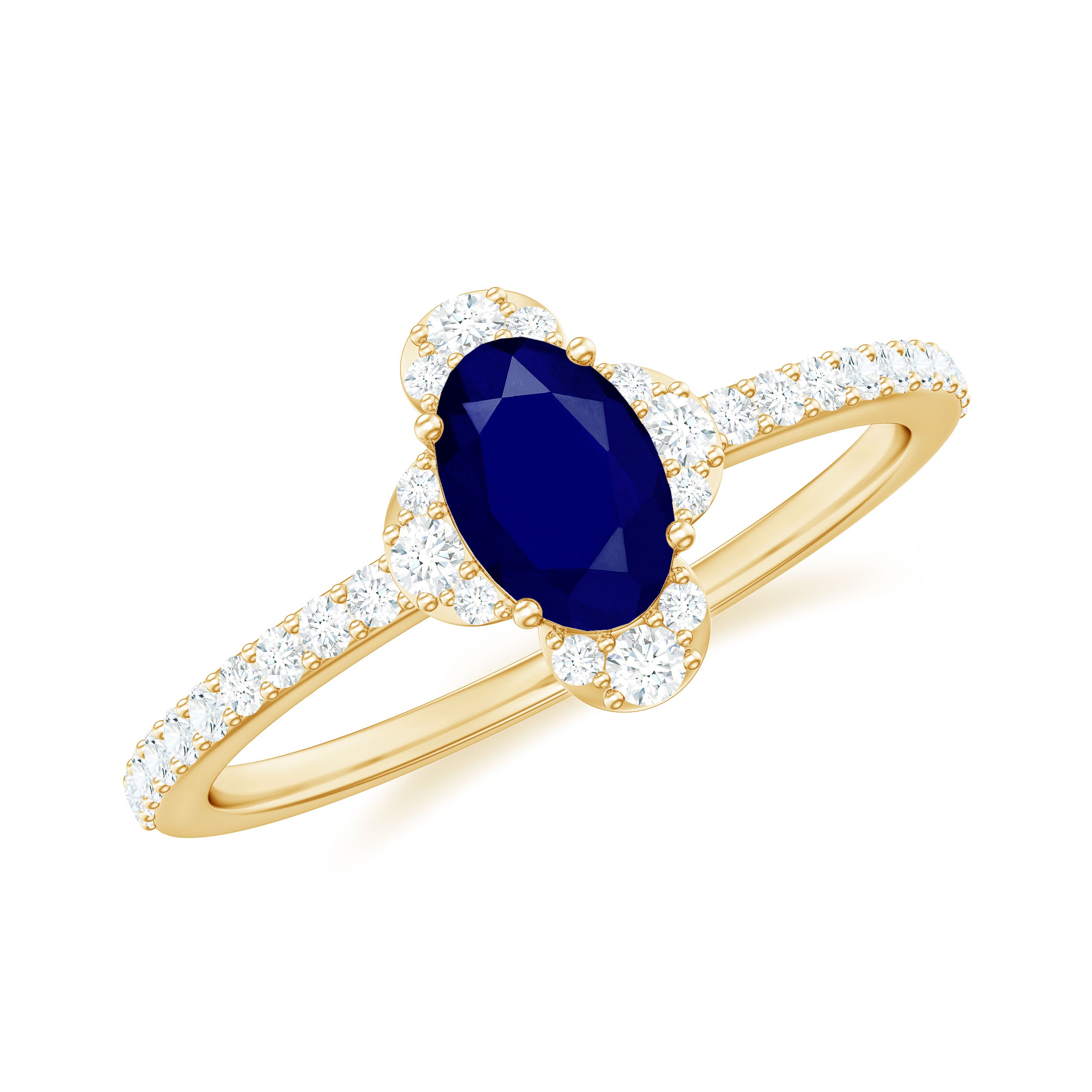 1 CT Oval Cut Blue Sapphire Classic Solitaire Ring with Diamond Halo