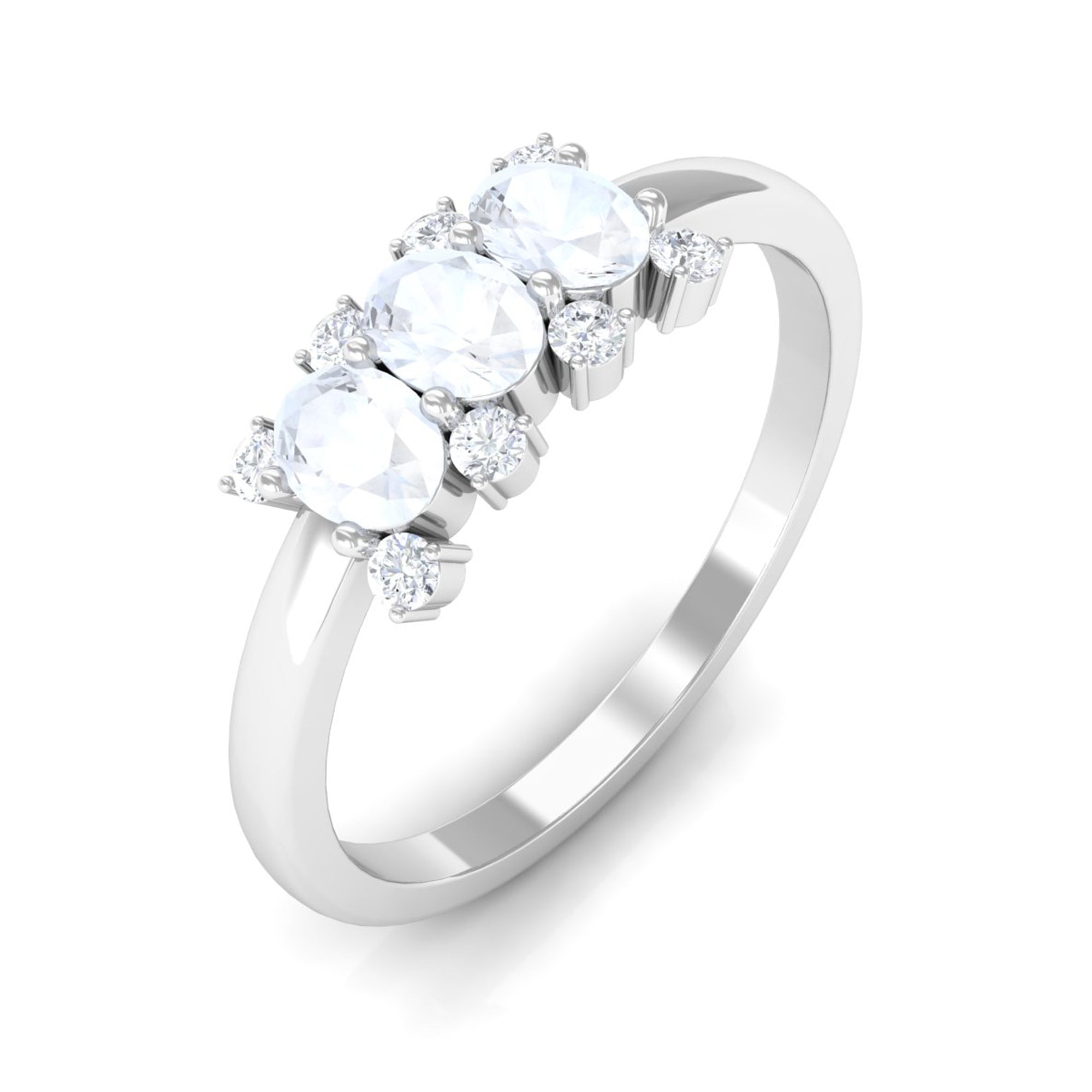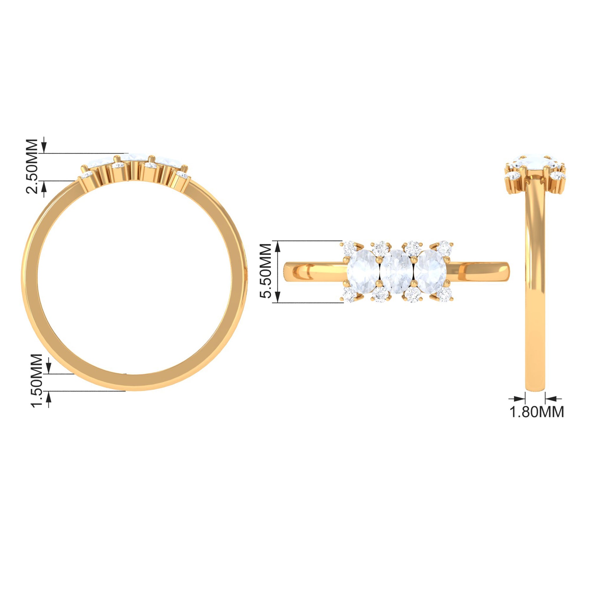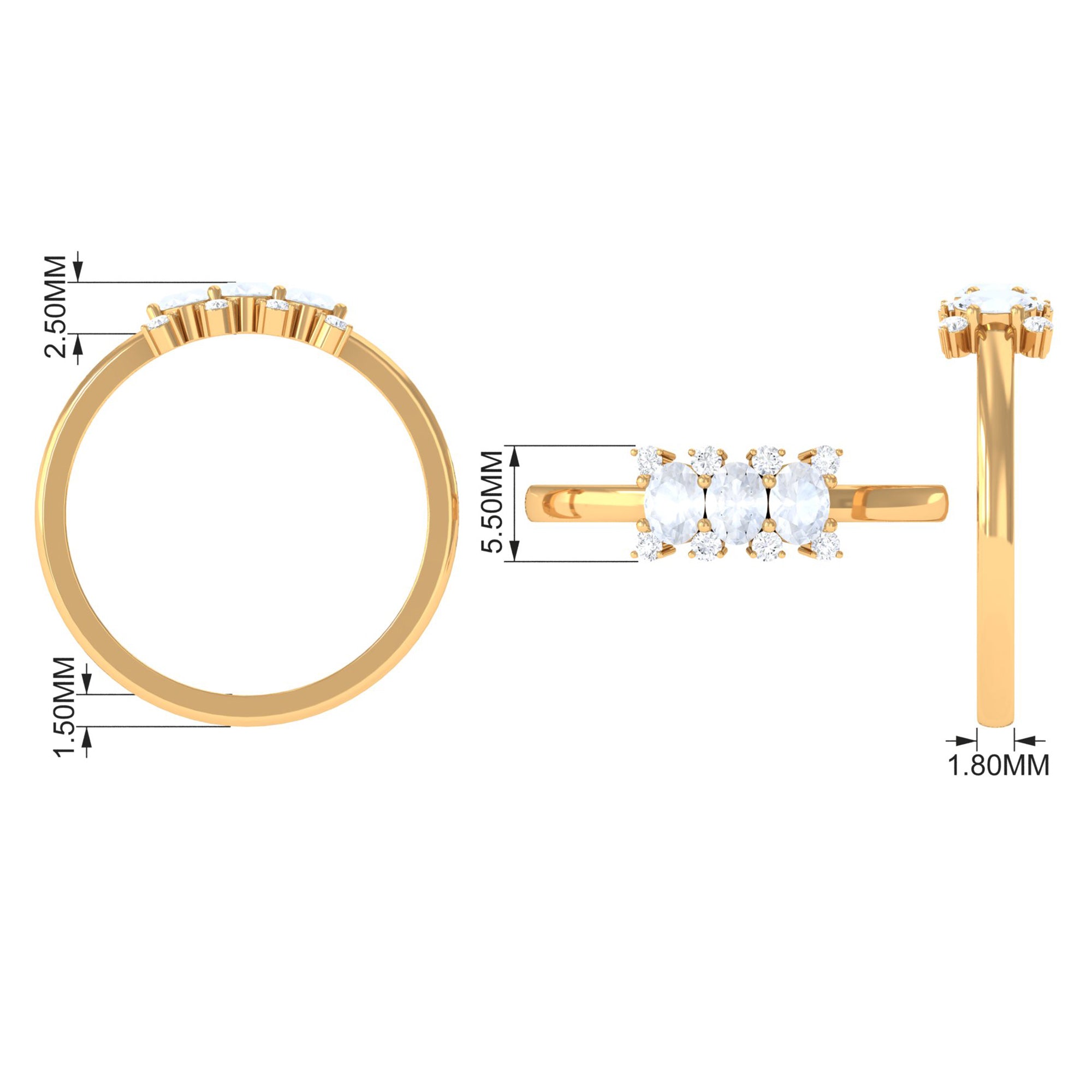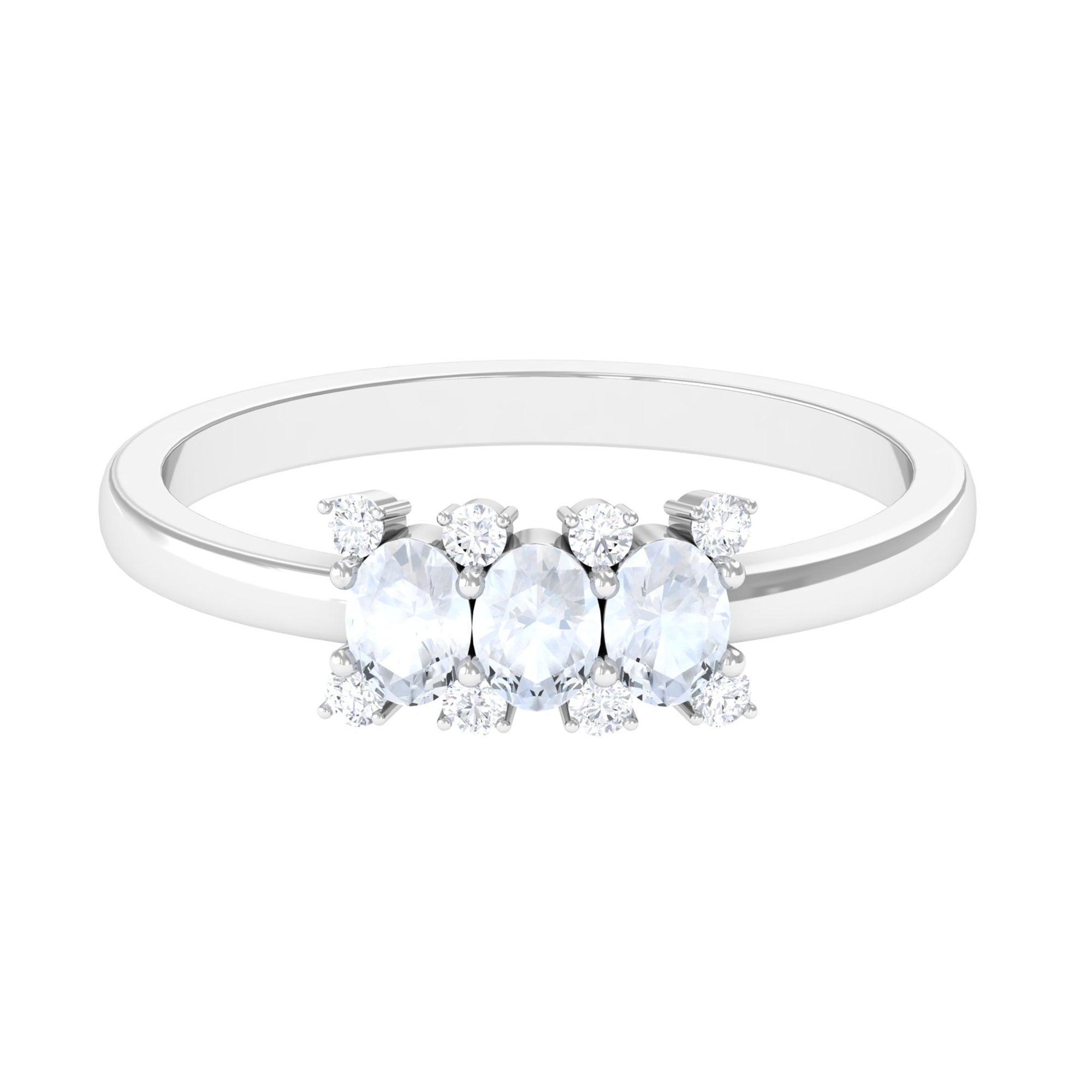 Mark your love for each other with this cute Promise Ring. It embellished with 3 Oval Cut Moonstone in Prong Setting with Diamond Accent. Present this Moonstone Ring to your lady love and make her feel your unconditional love.