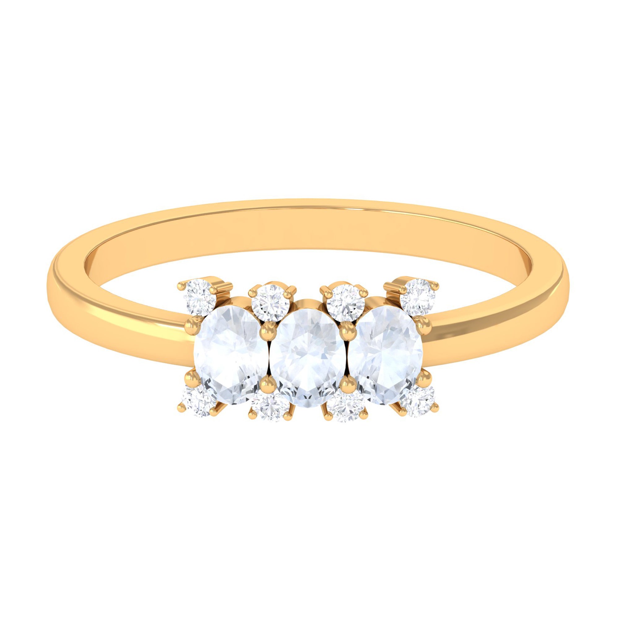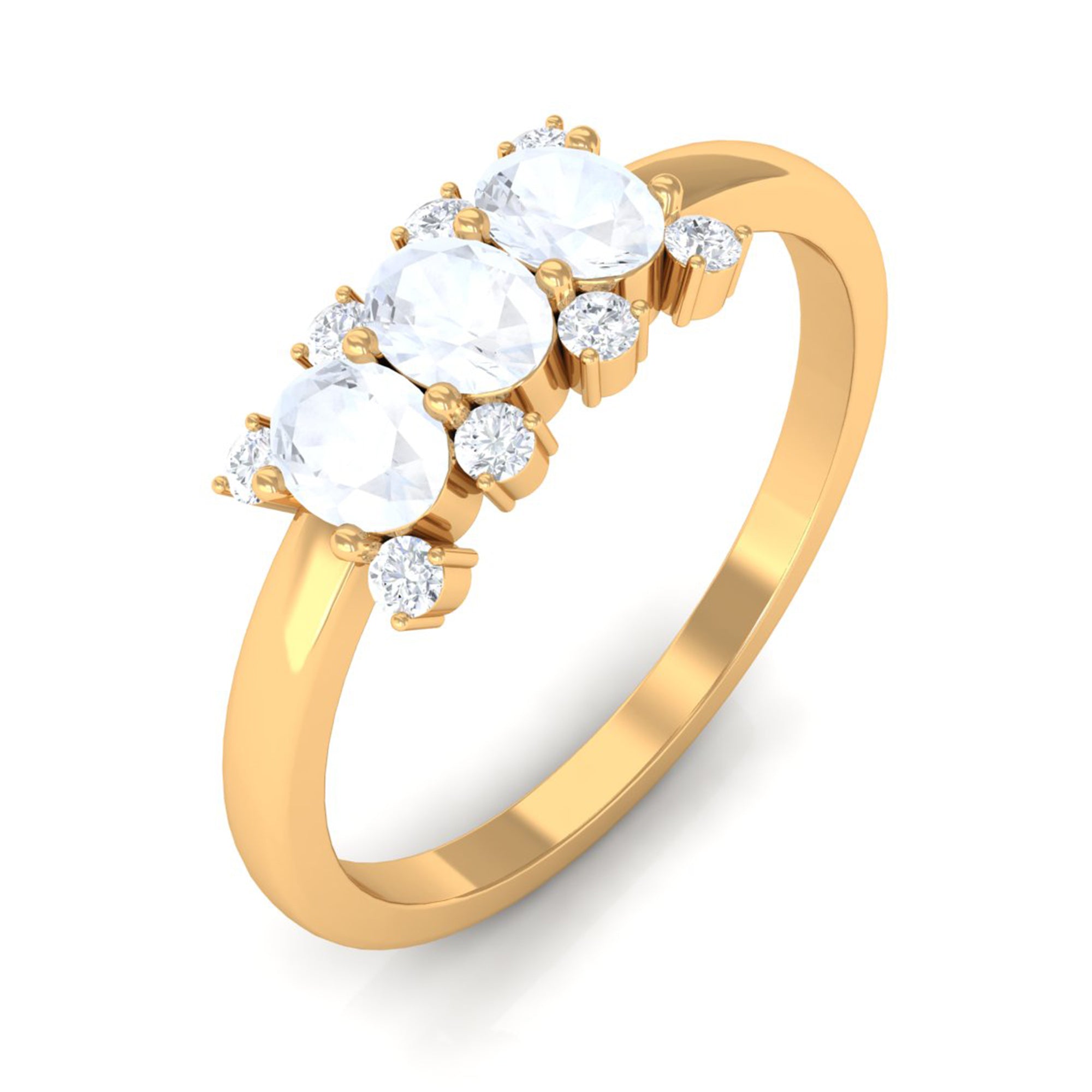 1 CT Oval Cut Moonstone Three Stone Ring with Diamond