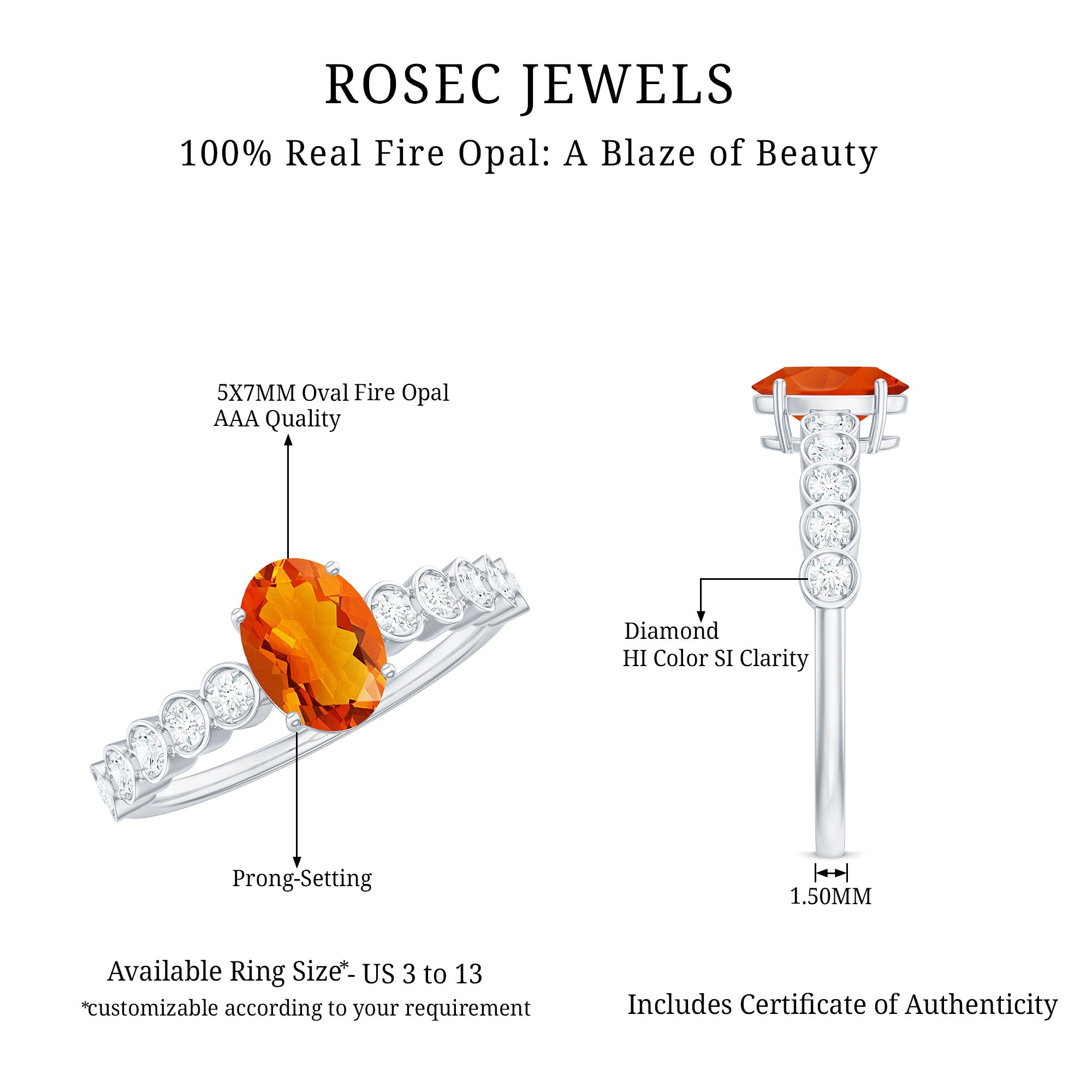 1 CT Oval Fire Opal Solitaire Engagement Ring with Diamond