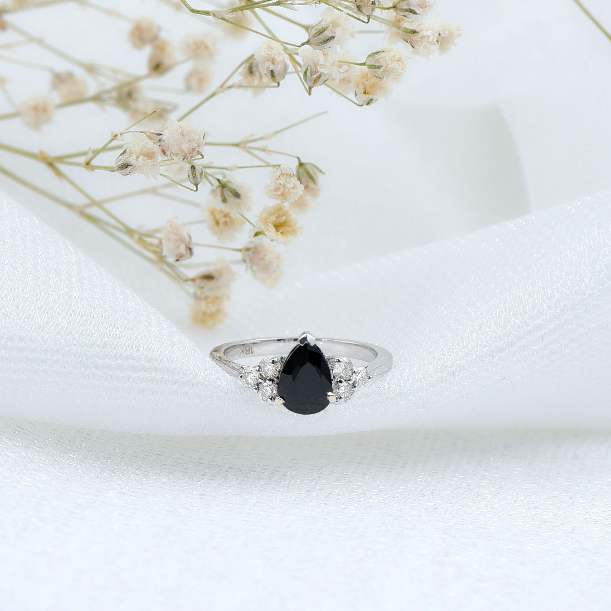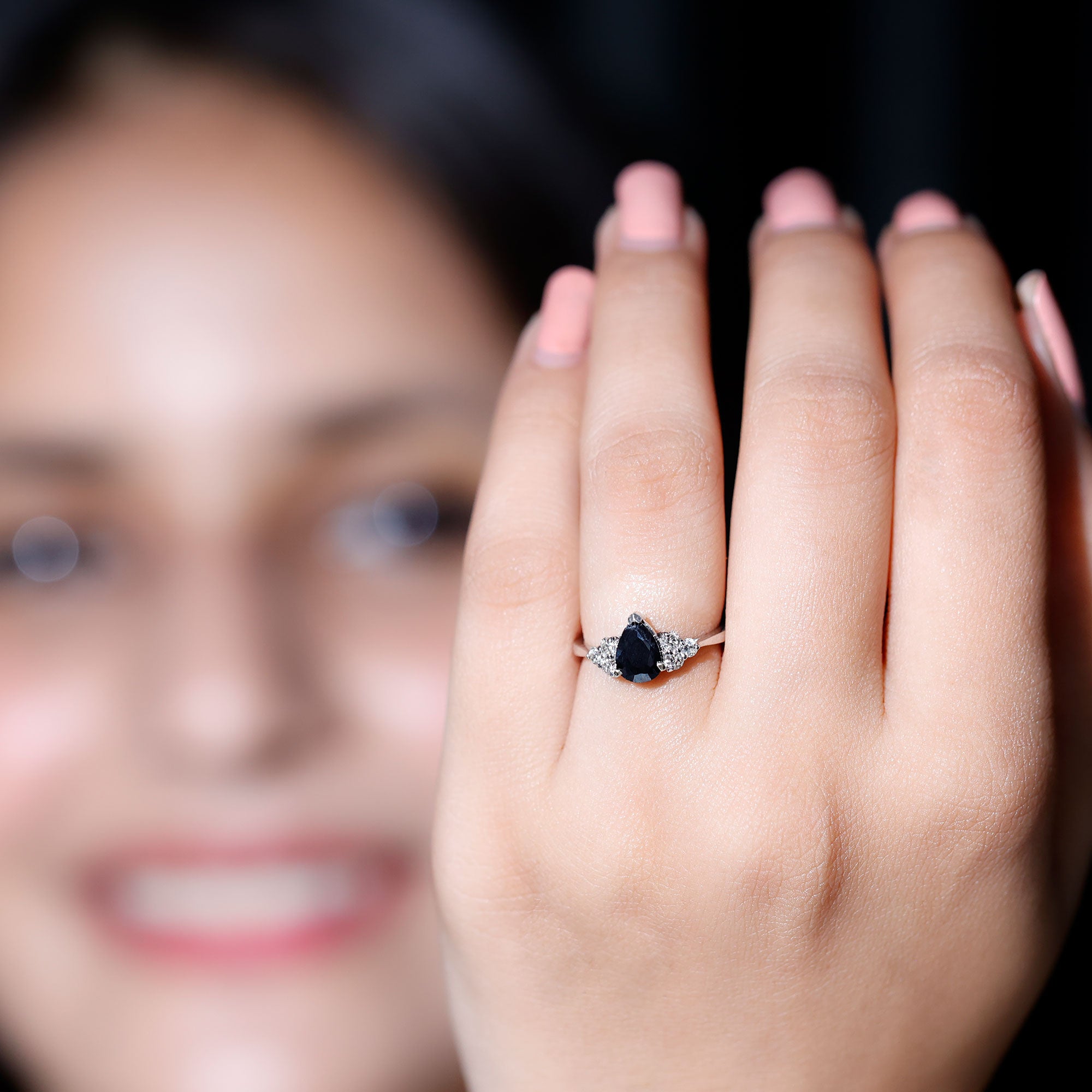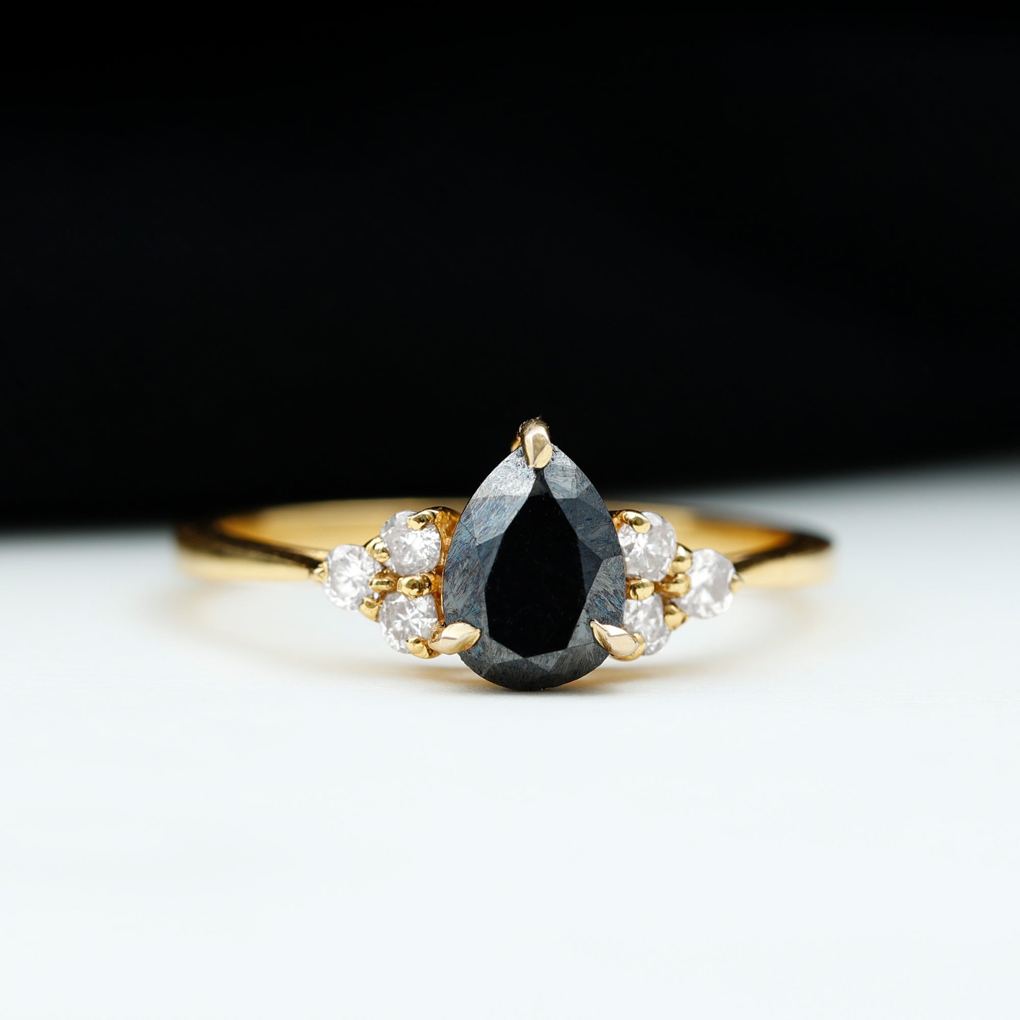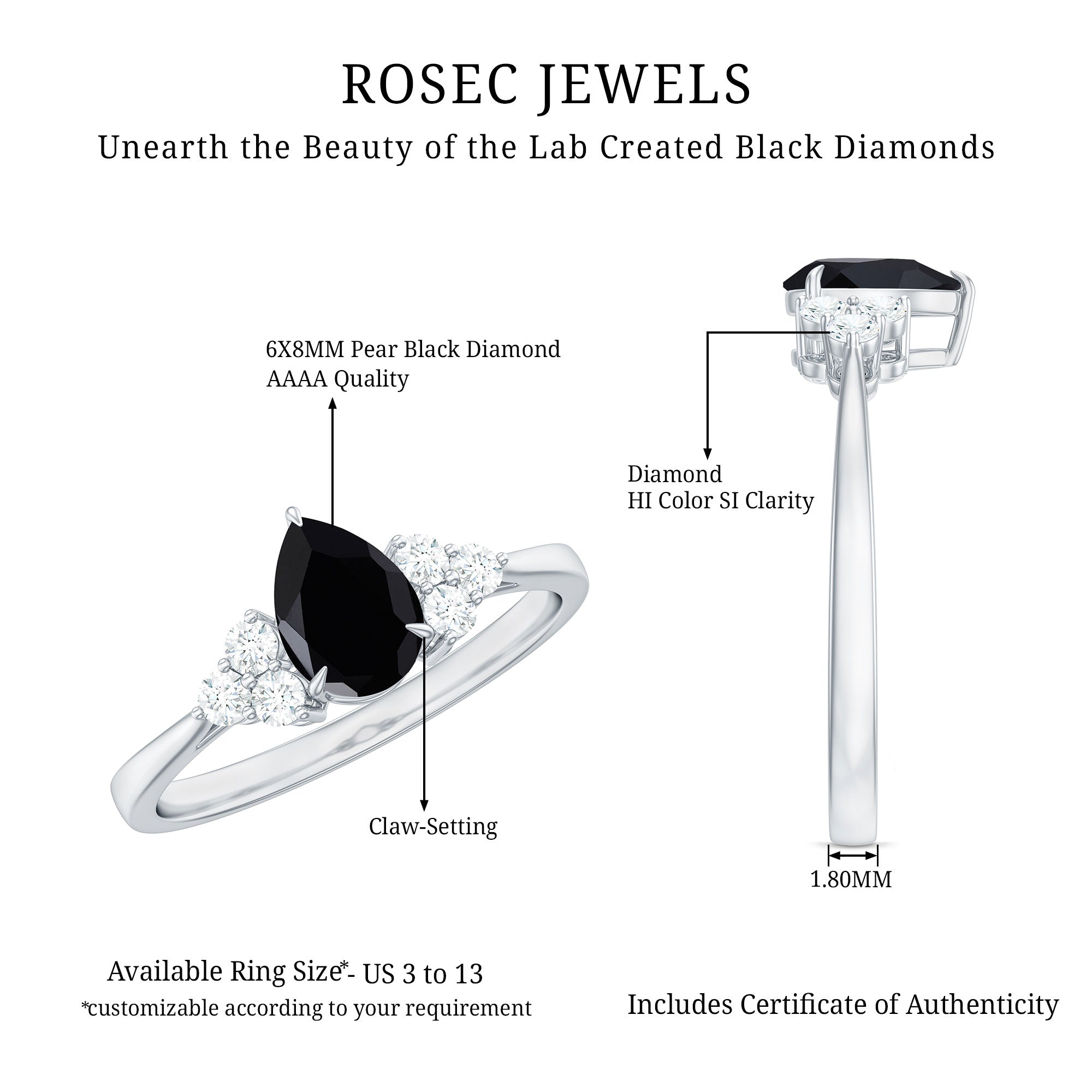 1 CT Pear Shaped Created Black Diamond Solitaire Ring with Diamond