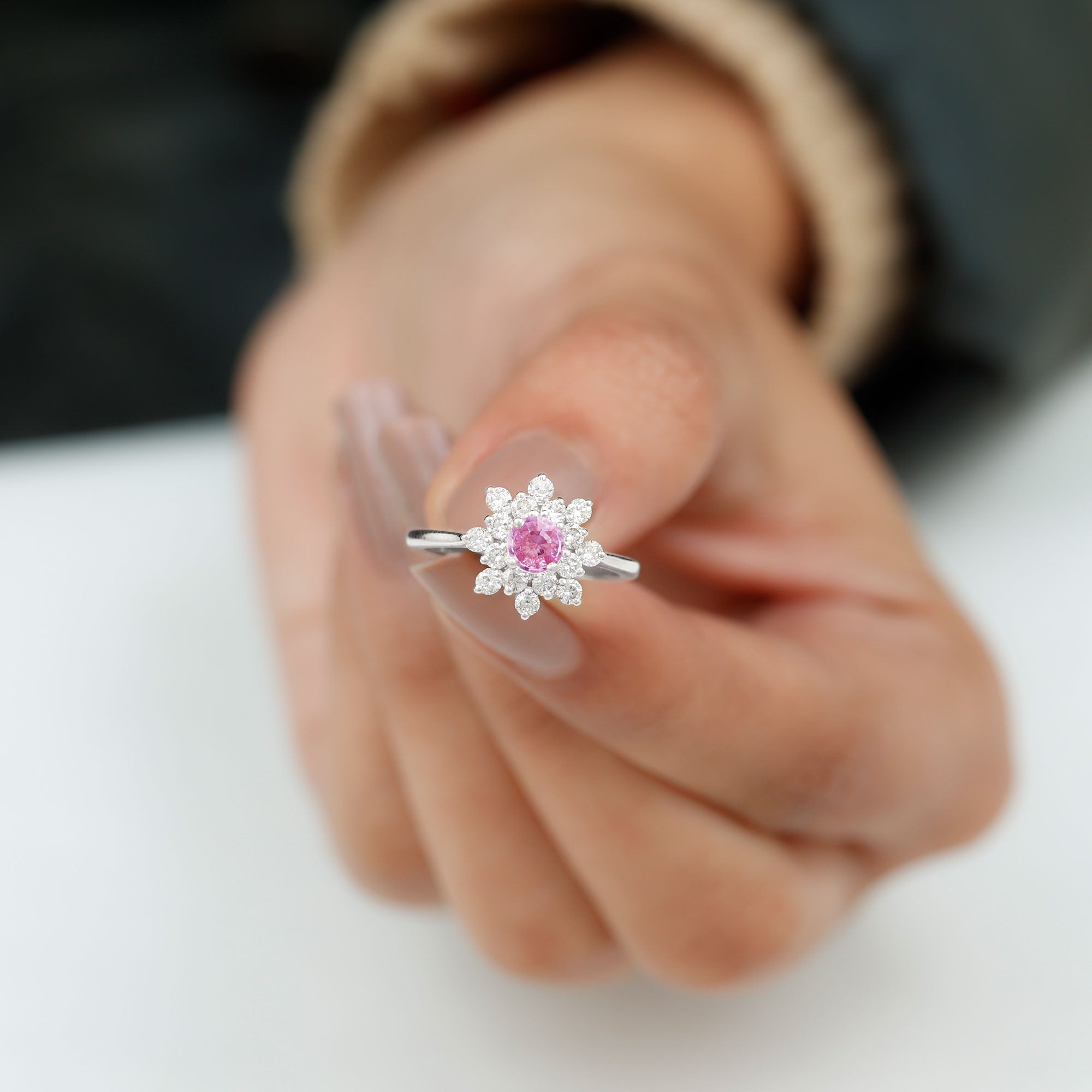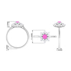 1 CT Pink Sapphire and Diamond Cluster Engagement Ring in Prong Setting