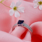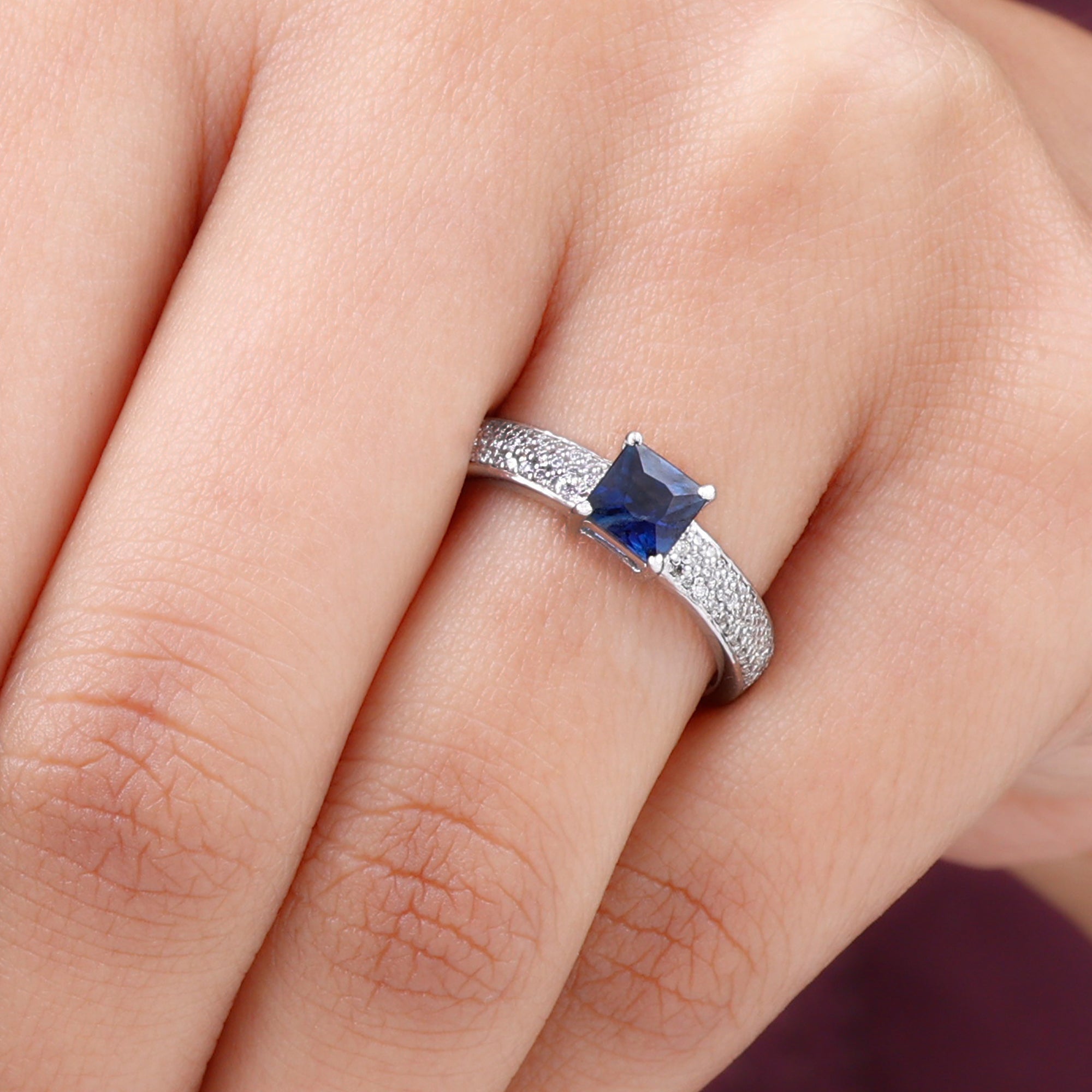 5mm Princess Cut Lab Created Blue Sapphire Promise Ring with Diamond