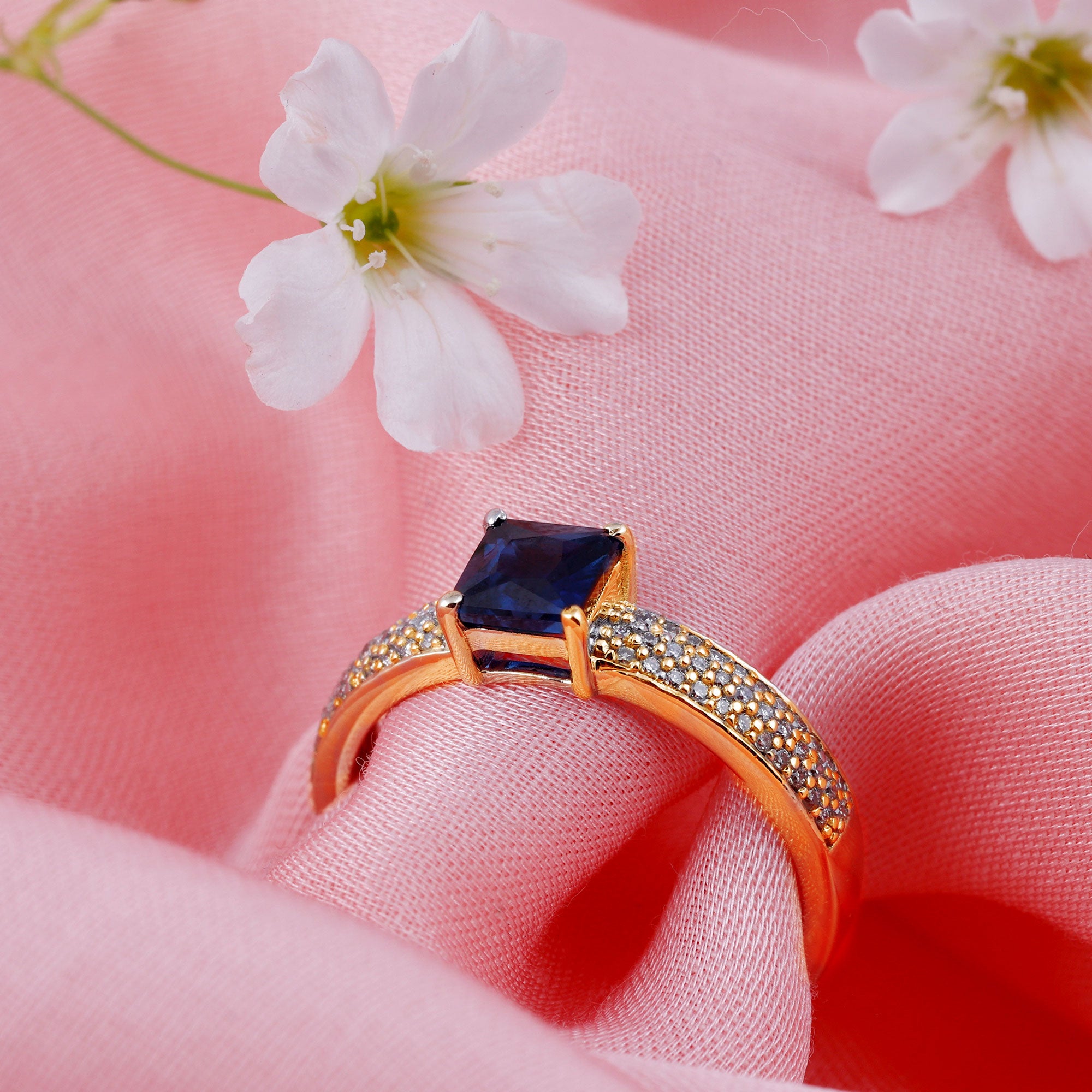 The Rosec Jewels Created Sapphire Engagement Ring is a remarkable creation, designed for an individual who merits only the finest. At its core lies an 5 MM Princess Cut Lab Created Blue Sapphire, held securely by a prong setting and accentuated by smaller round shape Diamonds that tenderly surround the main stone. With its whimsical yet profound symbolism, this Princess Cut Engagement Ring elegantly embodies your unique relationship and narrates your love story. The primary stone is a AAAA Quality Lab created blue sapphire with HI-SI quality Diamonds, exhibiting exceptional clarity and brilliance, serving as a perfect emblem of eternal love. Much like your connection, this Lab Created Blue Sapphire Ring is both resilient and exquisite, making it an ideal selection for a proposal or as a representation of your lasting bond, celebrating your shared journey and allowing you to radiate with clarity. Meticulously crafted, this Classic Engagement Ring glimmers with complementary accents that enhance the allure of the centerpiece, adding a hint of sophistication. This ring is a timeless treasure that recounts your love story in an unforgettable manner. Allow this exquisite piece to be the luminous symbol of your collective journey, destined to be treasured for a lifetime.