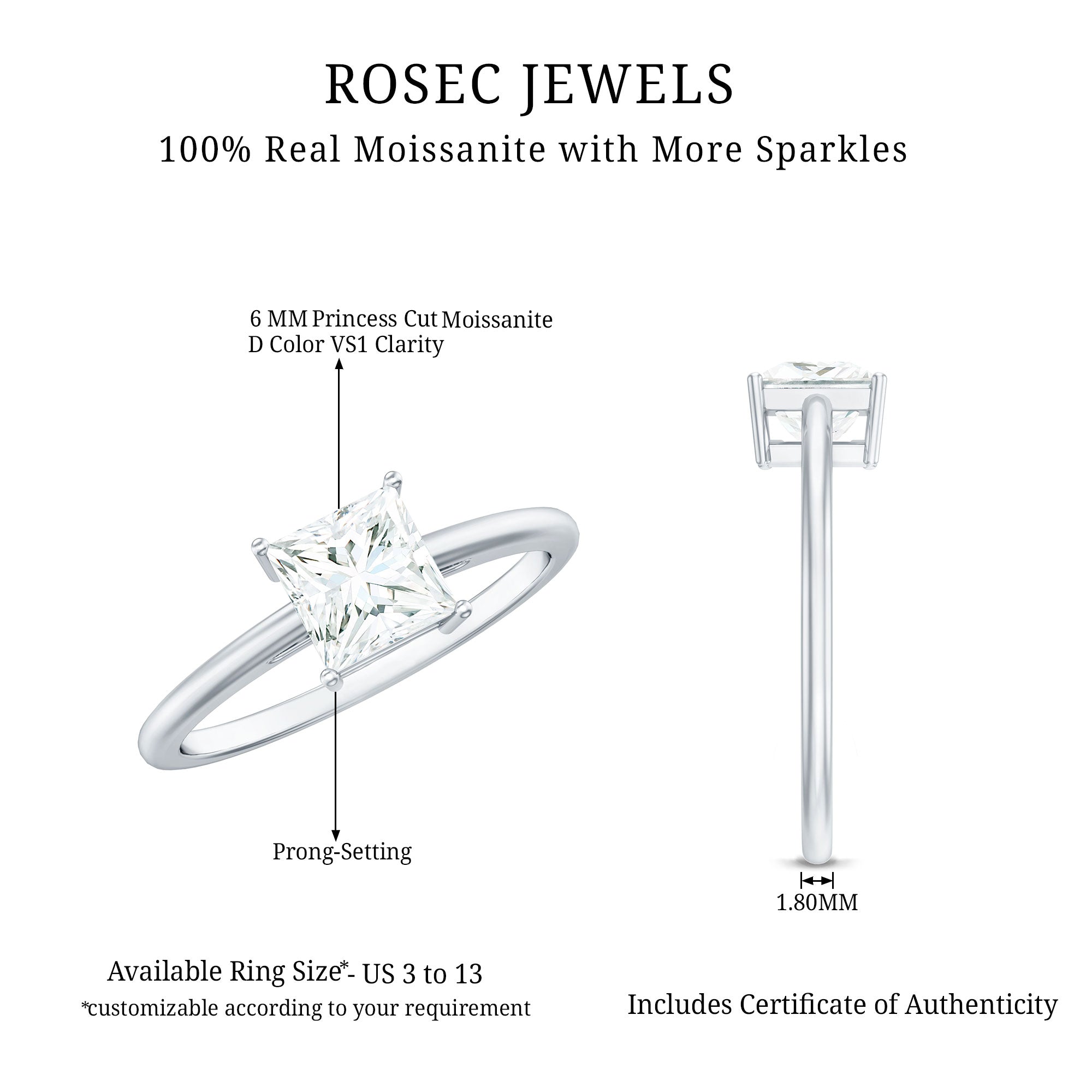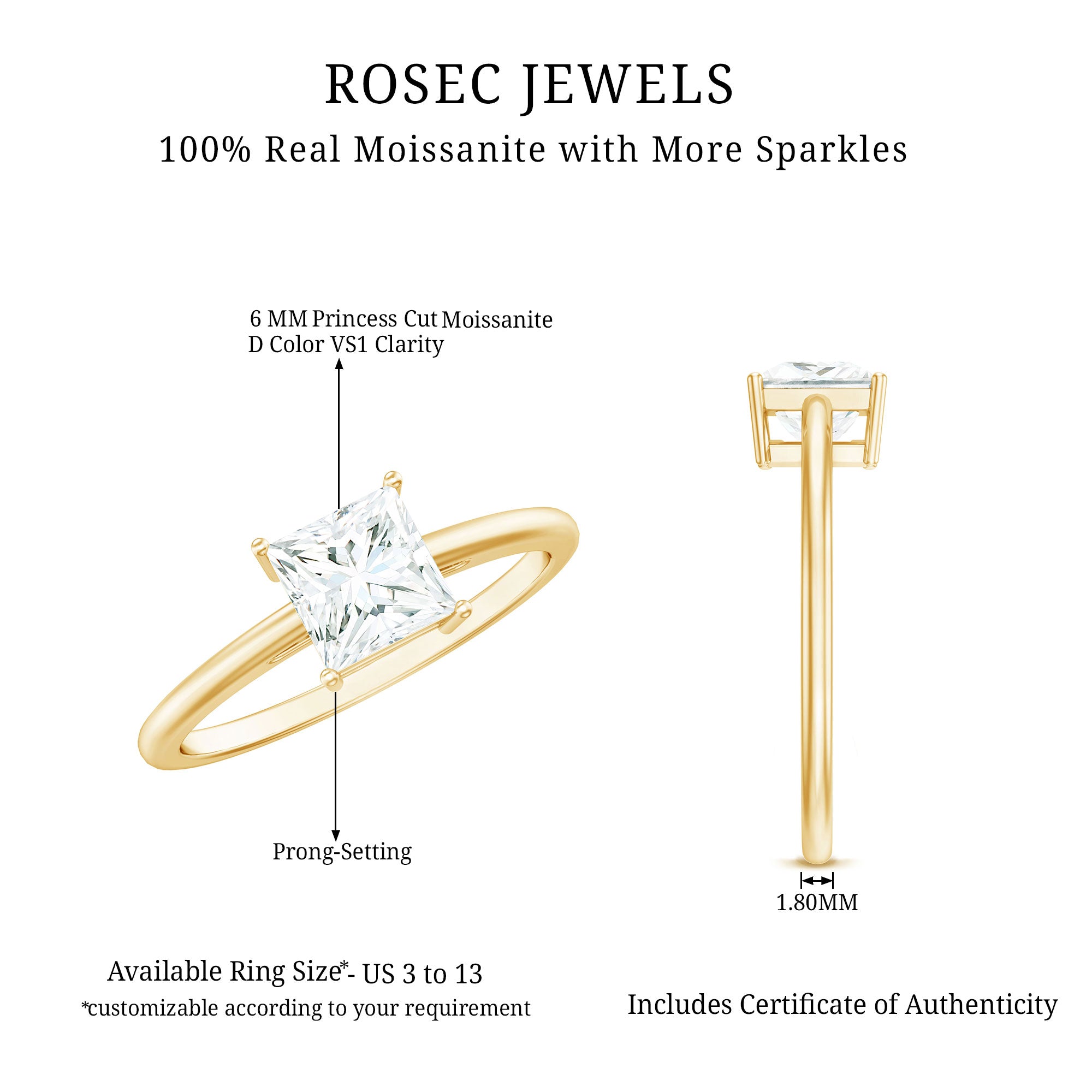 1 CT Princess Cut Moissanite Solitaire Gold Ring
