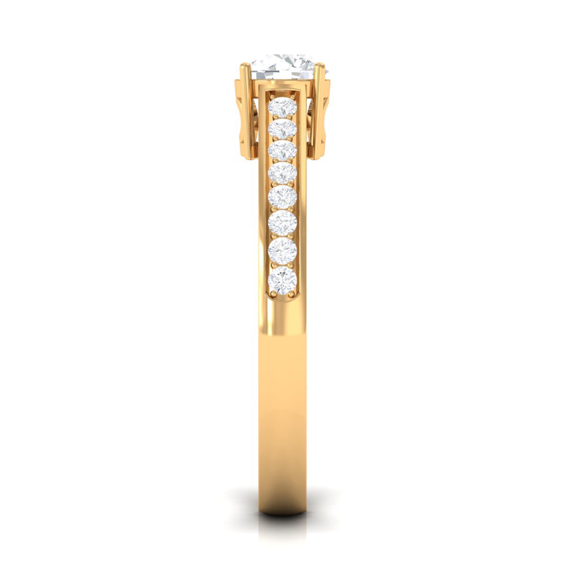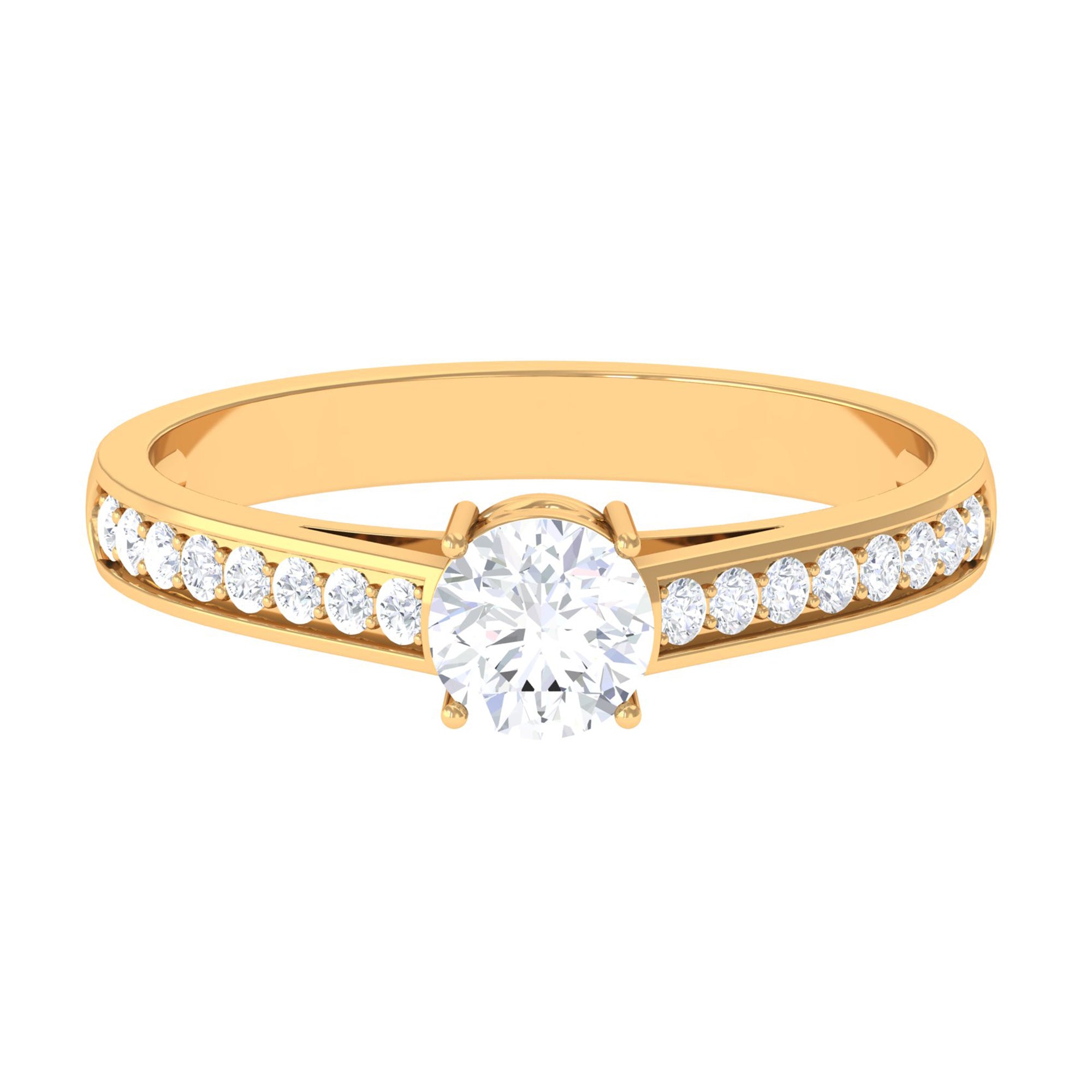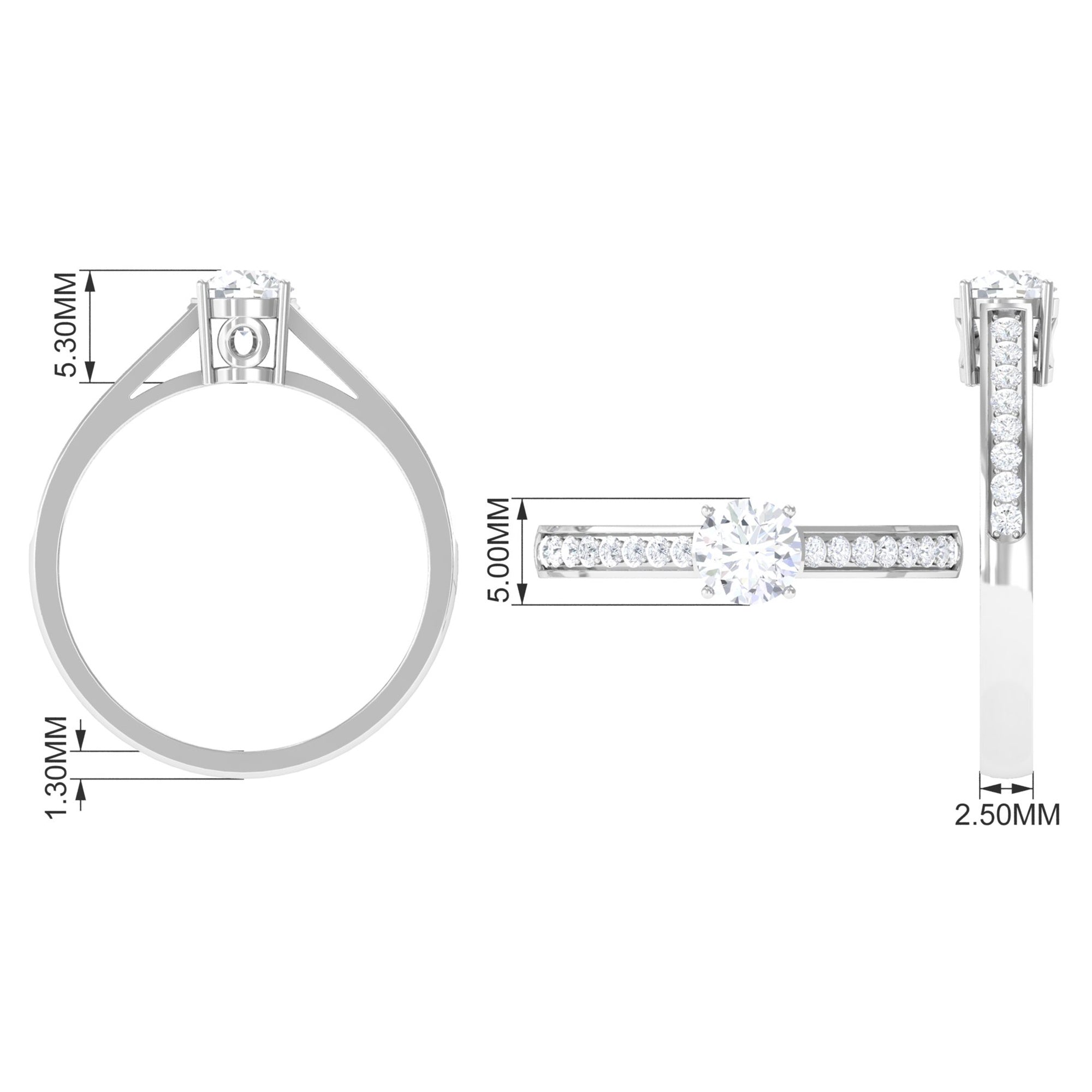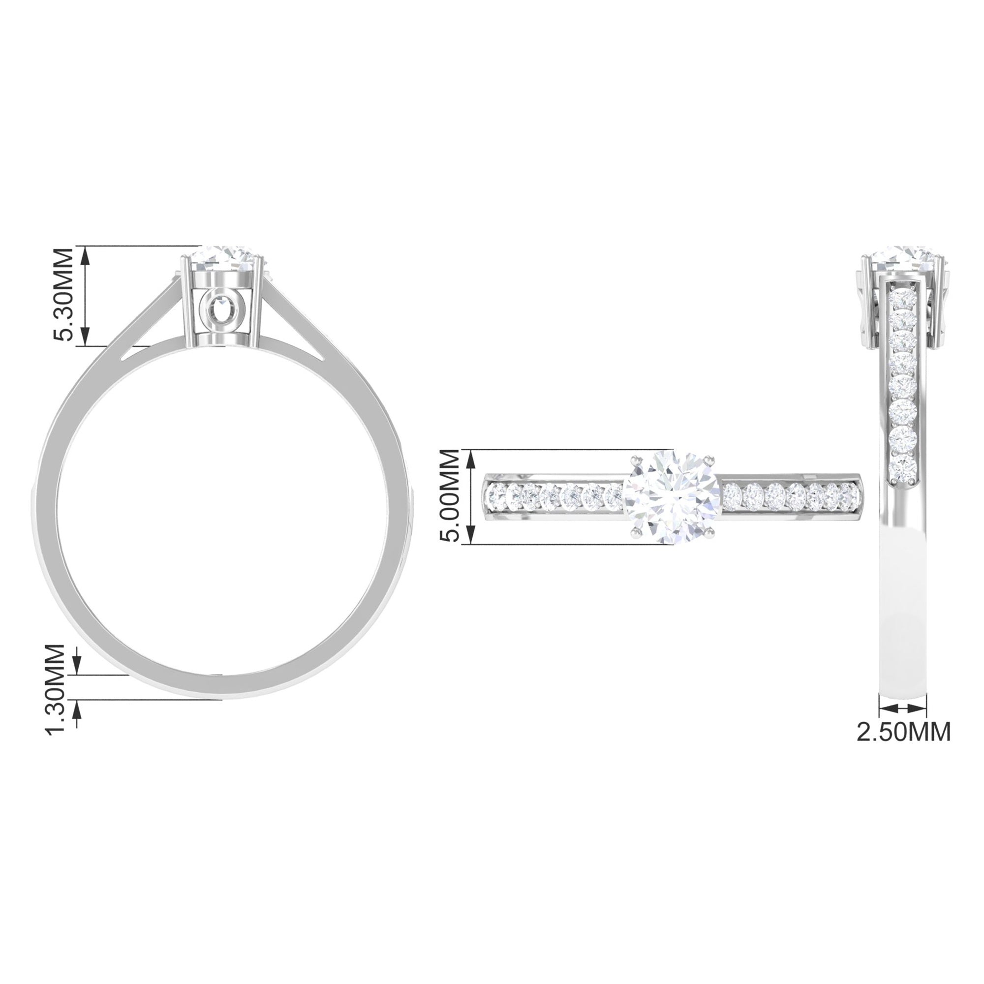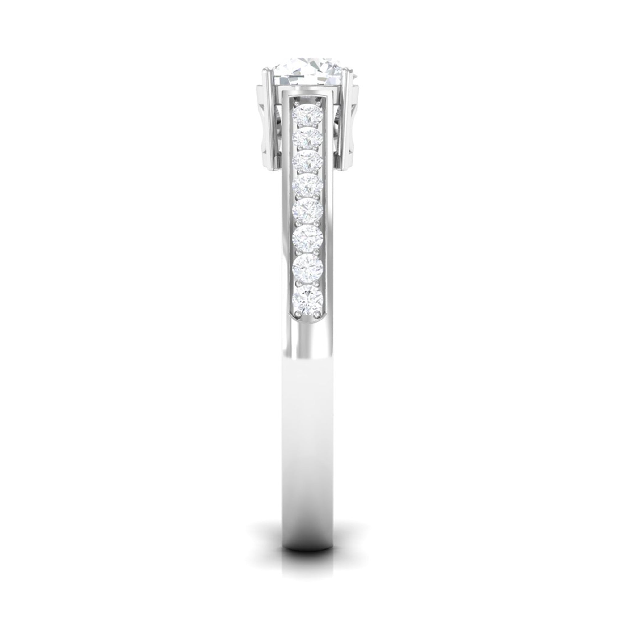 1 CT Prong Set Round Zircon Engagement Ring with Side Stones
