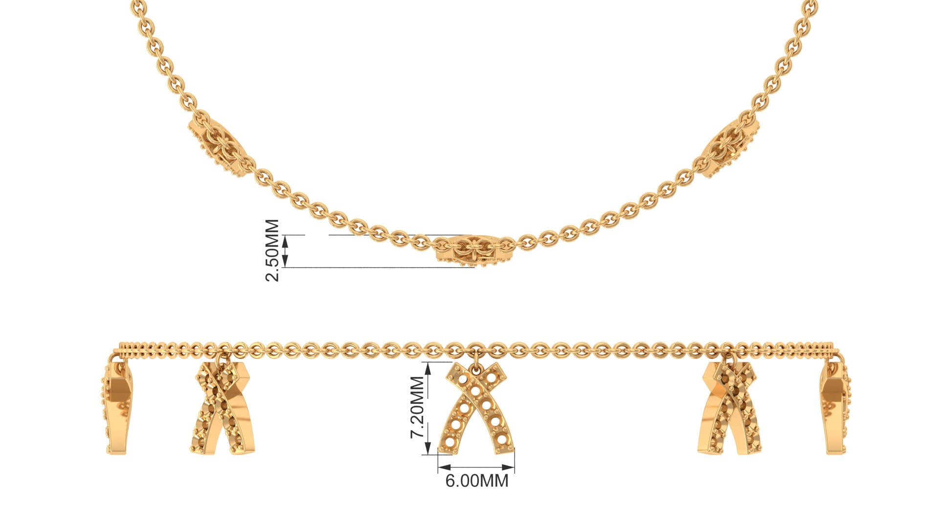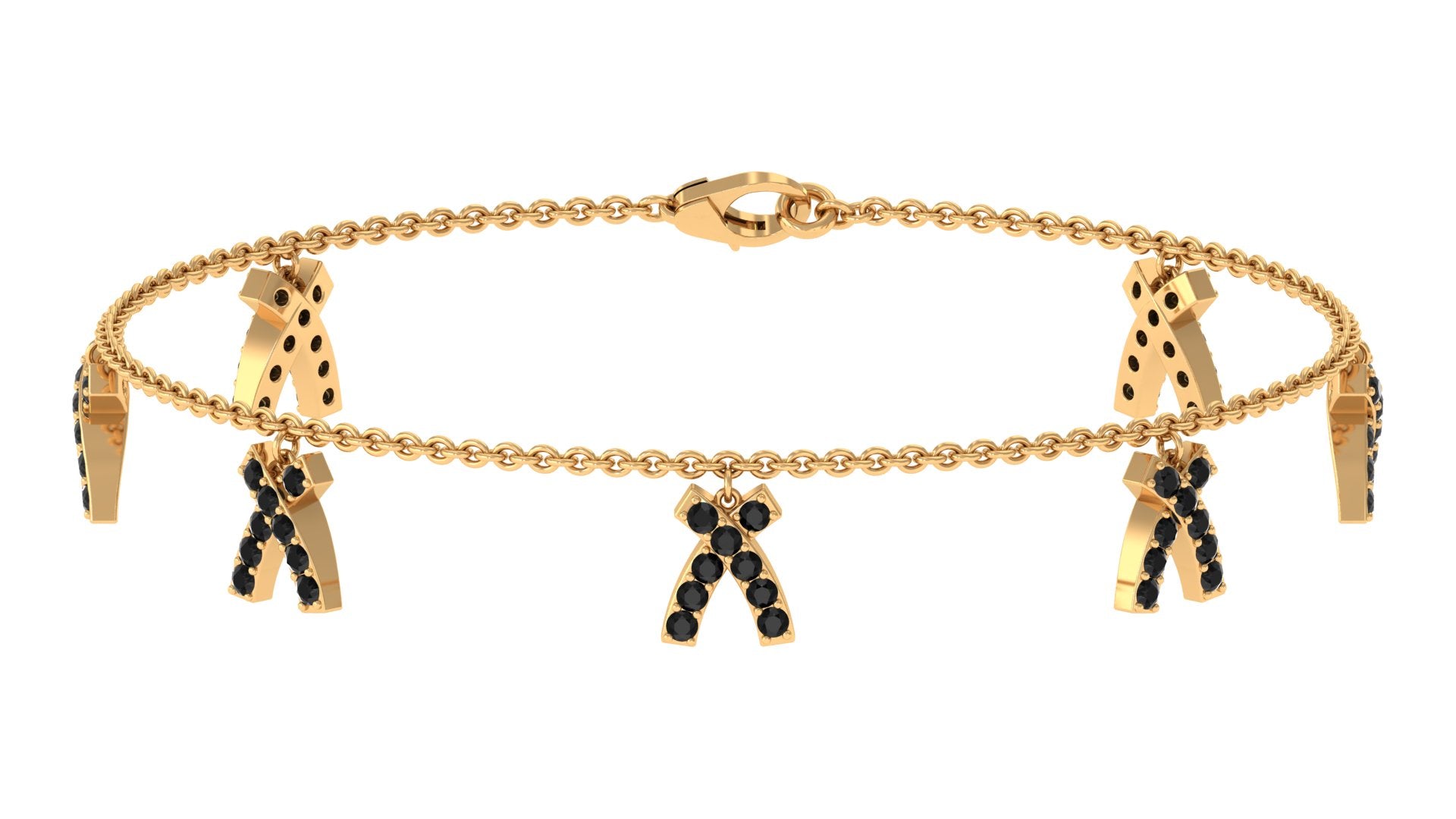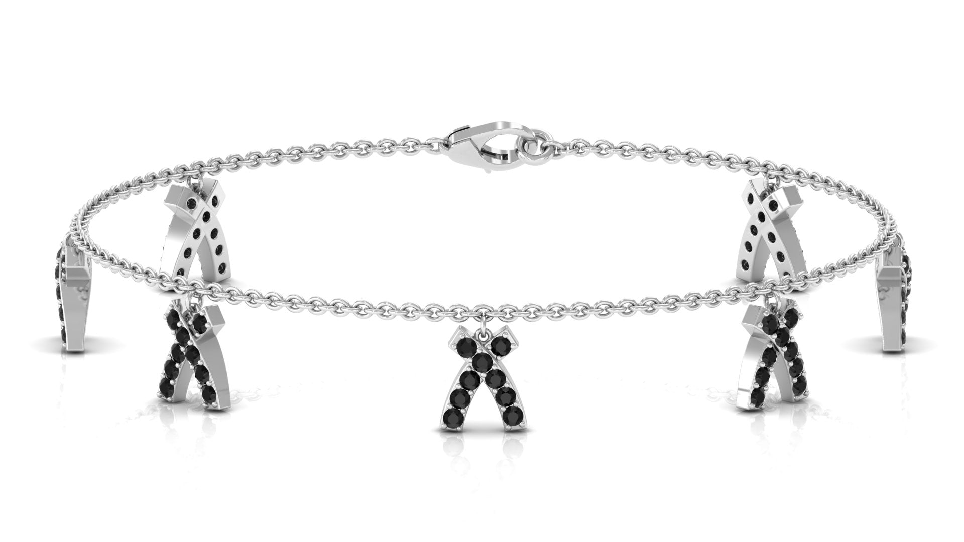 This Moissanite Chain Bracelet features a captivating combination of elegance and charm, crafted to embody the beauty of perpetual light. Meticulously designed, this bracelet showcases round-shaped Black Diamond set in a pave setting, following an bow charm pattern. The ribbon motif represents the beauty of connection and the charm of everlasting affection. With exquisite craftsmanship, this Chain Charm Bracelet gracefully embraces the wrist, radiating opalescent brilliance. As a timeless treasure, it embodies infinity, beauty, and the inner light. The Bow Bracelet radiates sophistication while preserving a dreamy, ethereal allure. The AAA Quality Black Diamond boasts a luminous diamond, making it an ideal accessory for those who appreciate timeless beauty and spiritual elegance, whether worn as a declaration of everlasting love or as a representation of infinite possibilities that elevate every moment into something remarkable, glowing like a promise that never diminishes. Delicate yet enchanting in its design, it is a remarkable piece of jewelry for someone dear to your heart.