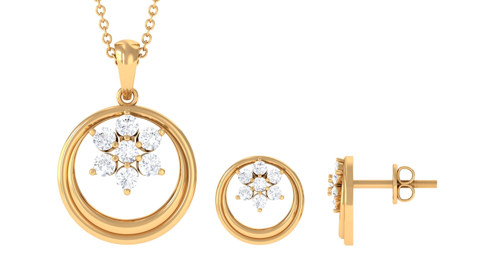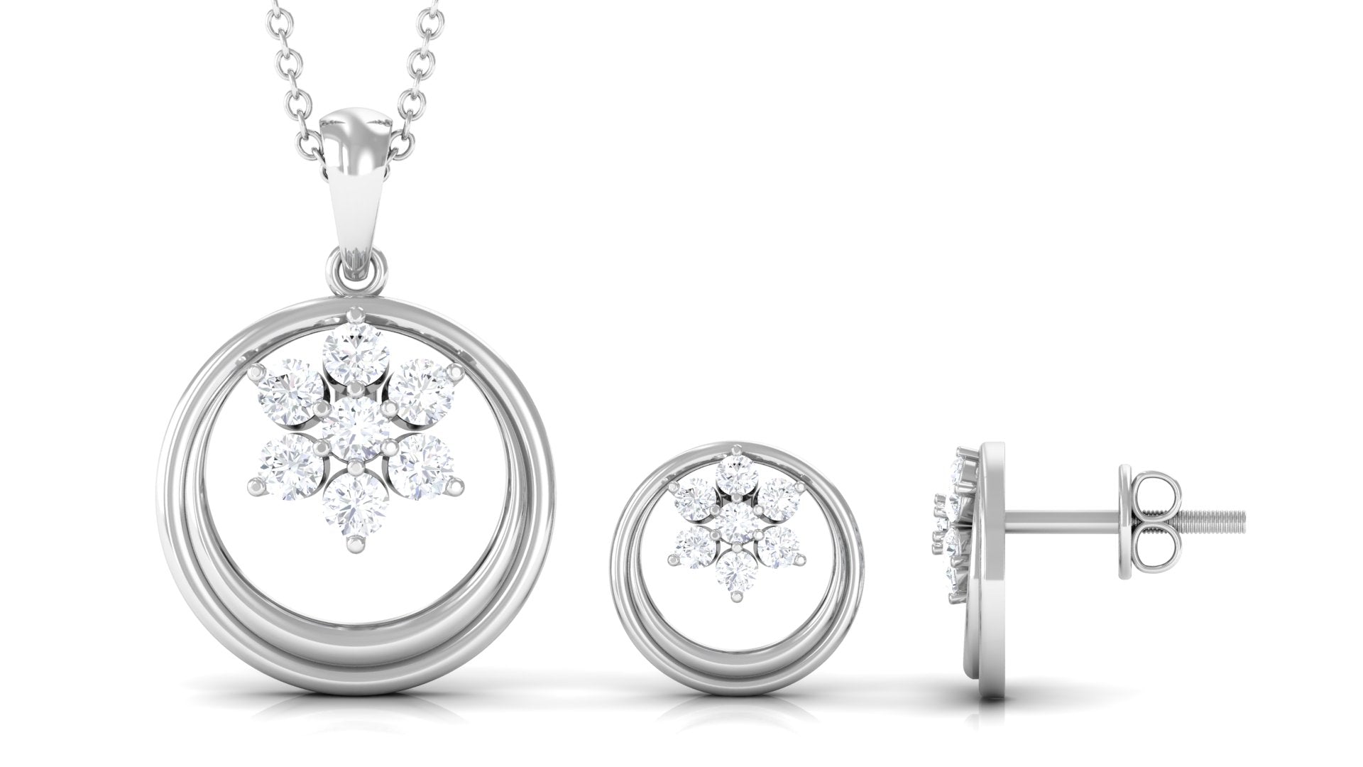 1 CT Real Diamond Floral Pendant Necklace and Stud Earring Set