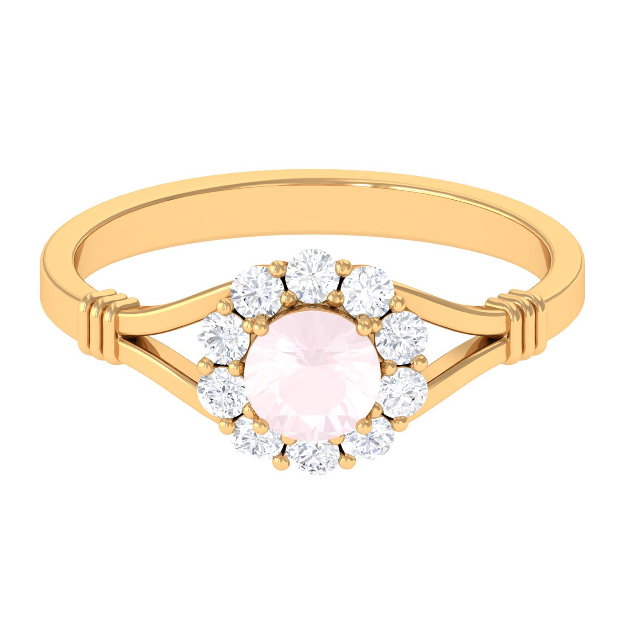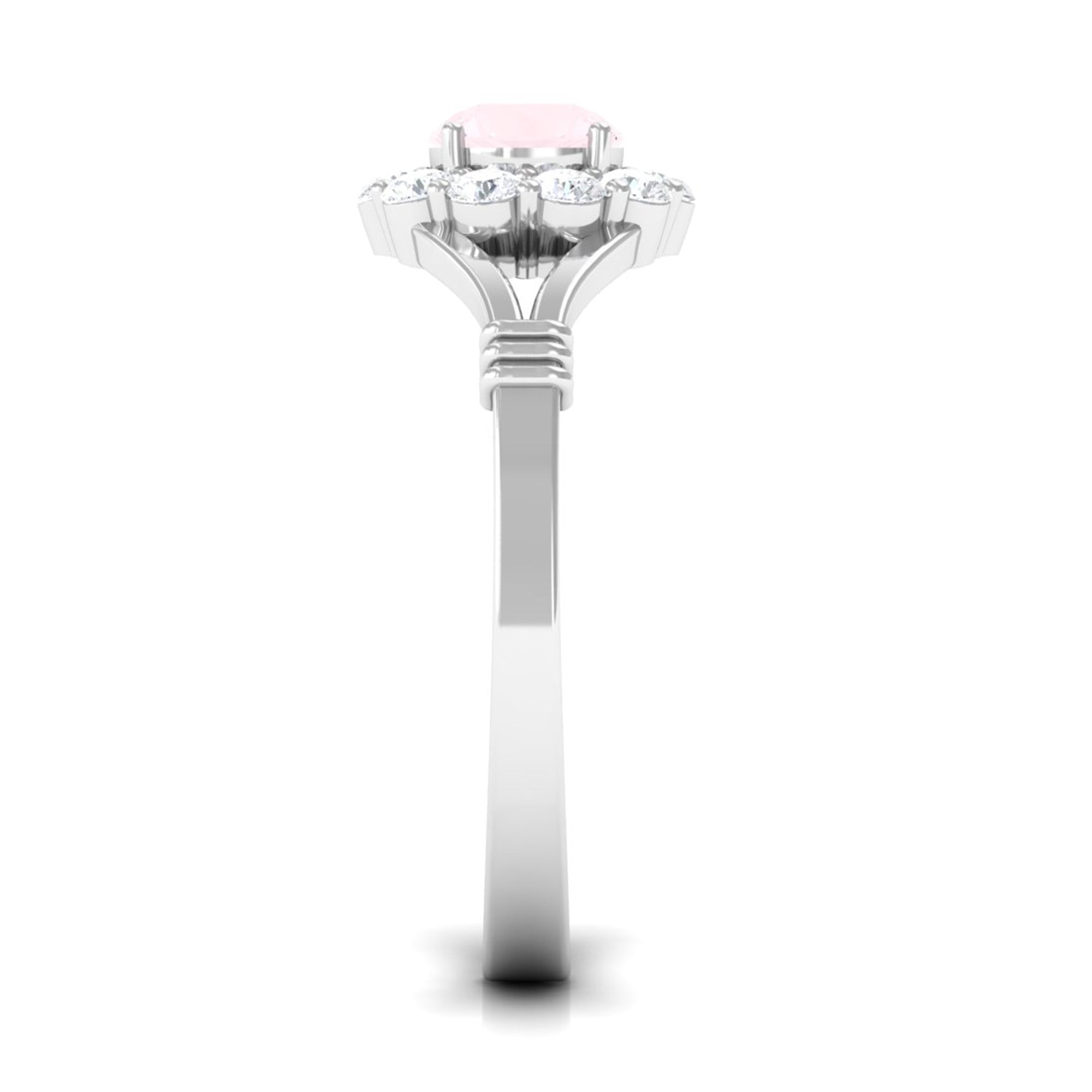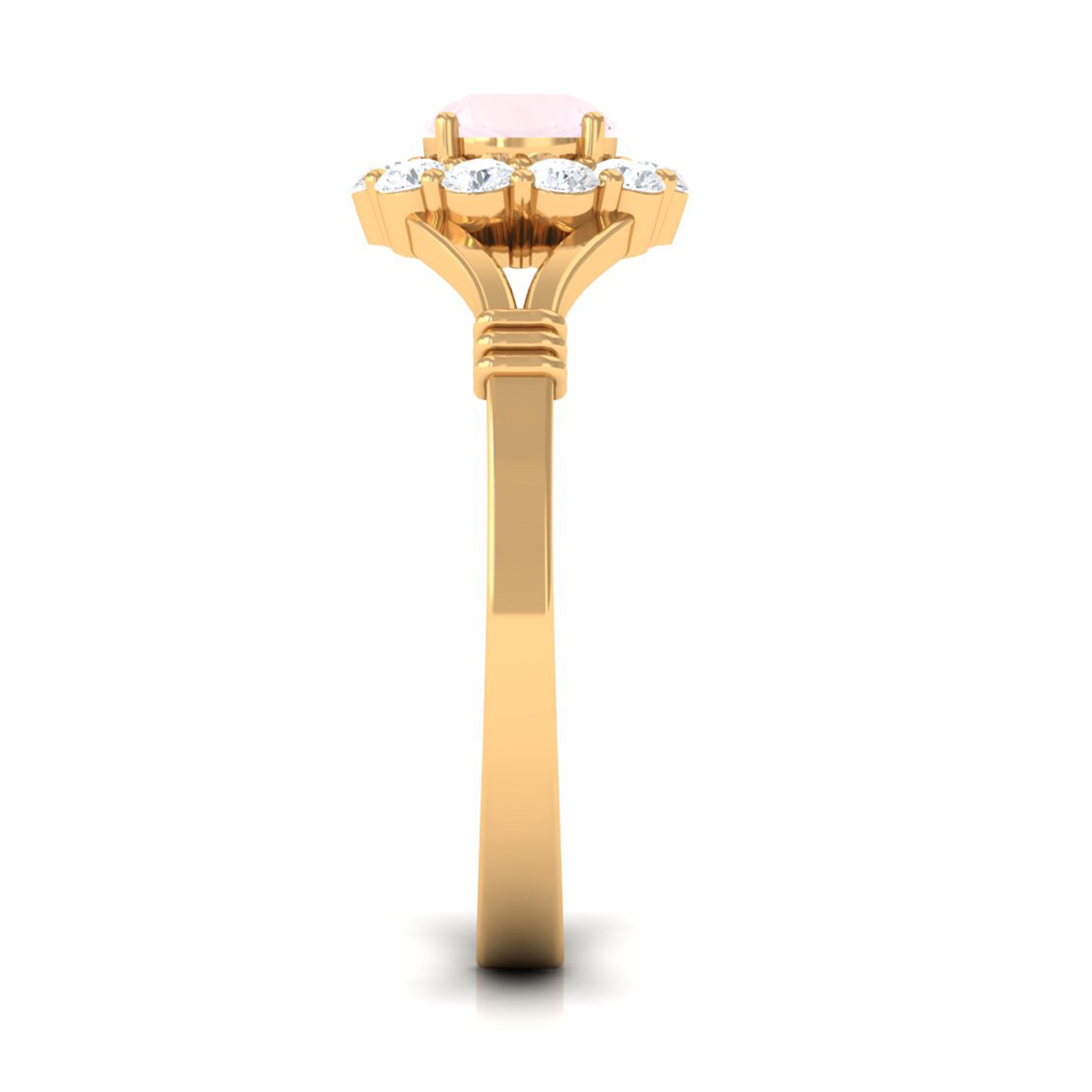 1 CT Rose Quartz Flower Engagement Ring with Diamond Halo in Split Shank