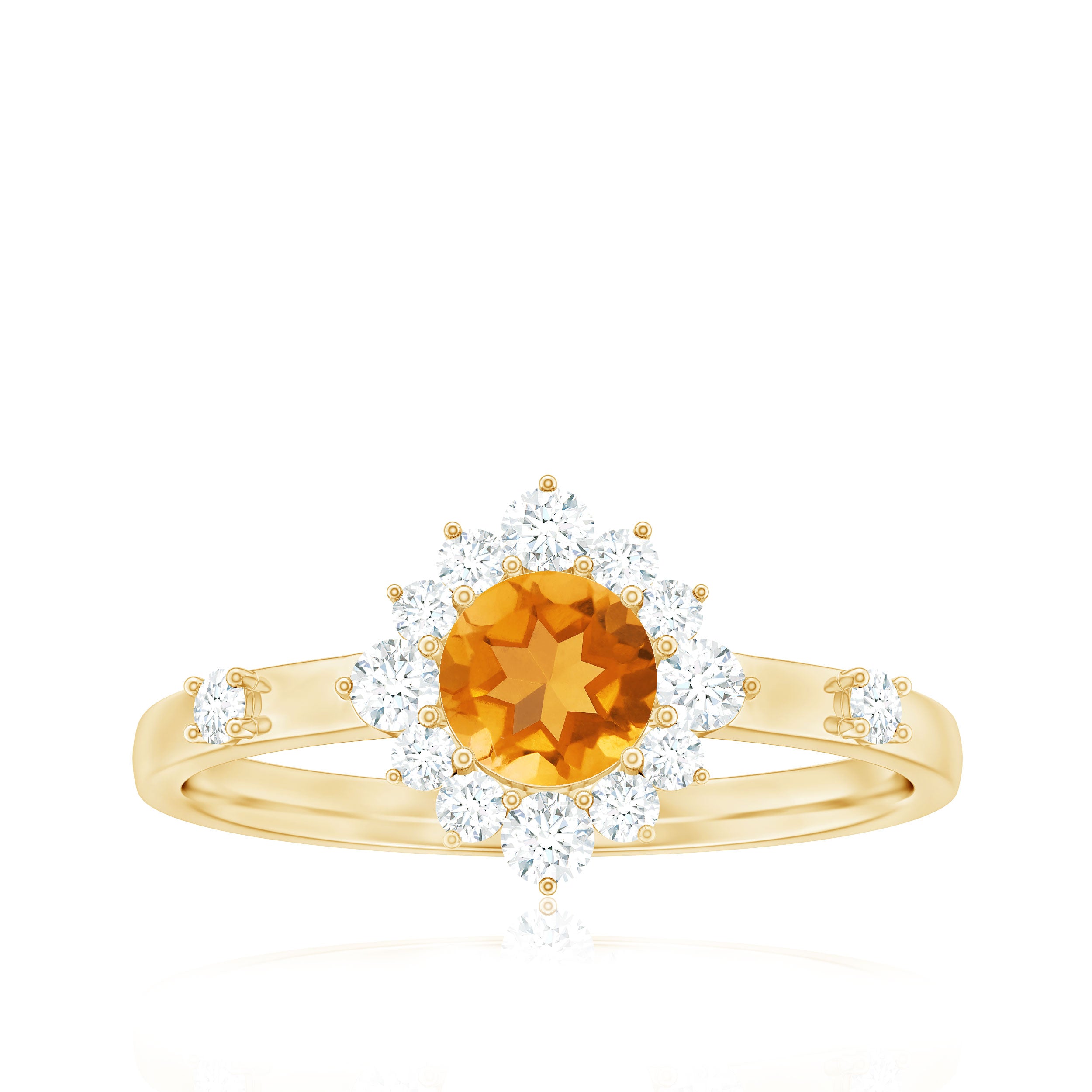 1 CT Round Citrine and Diamond Halo Engagement Ring