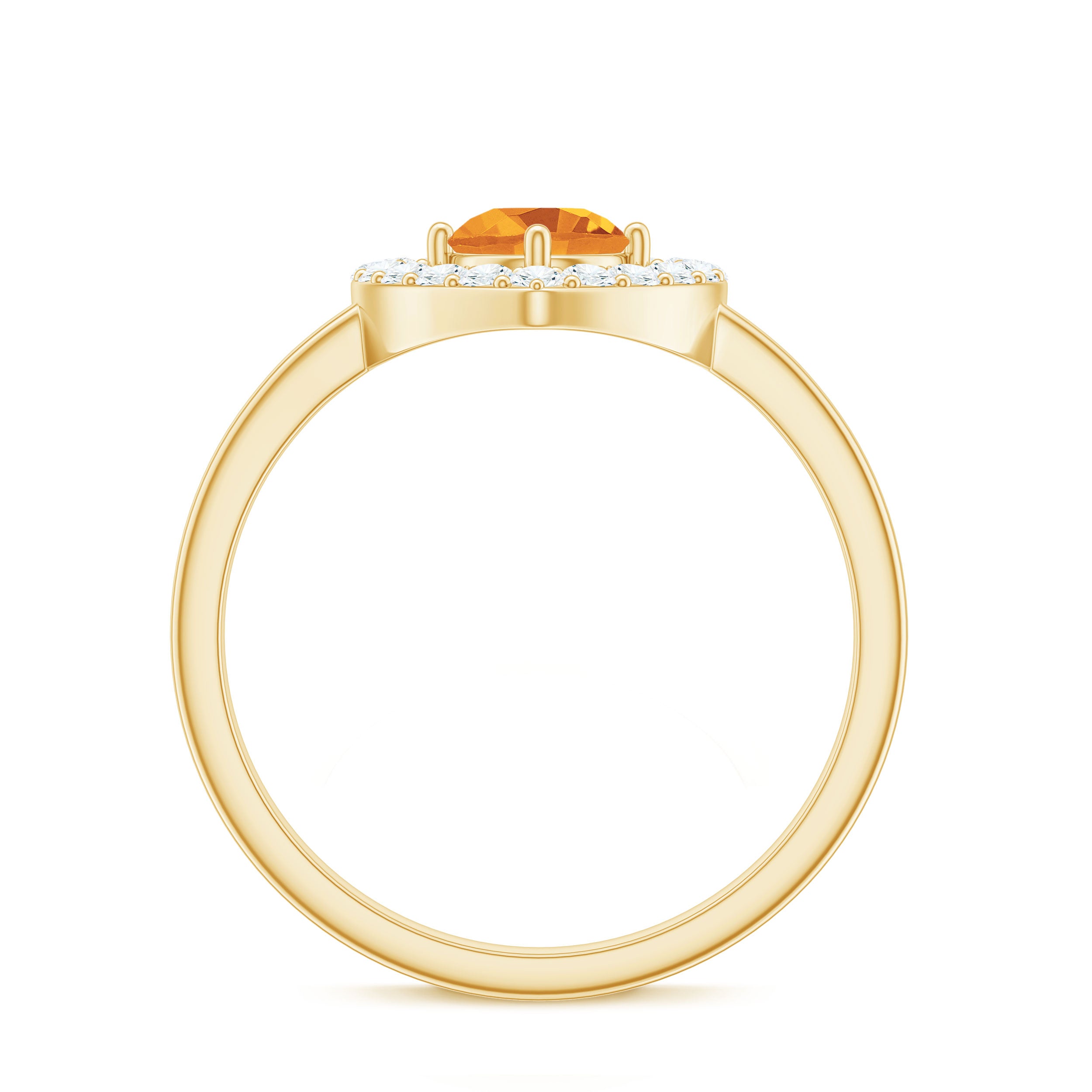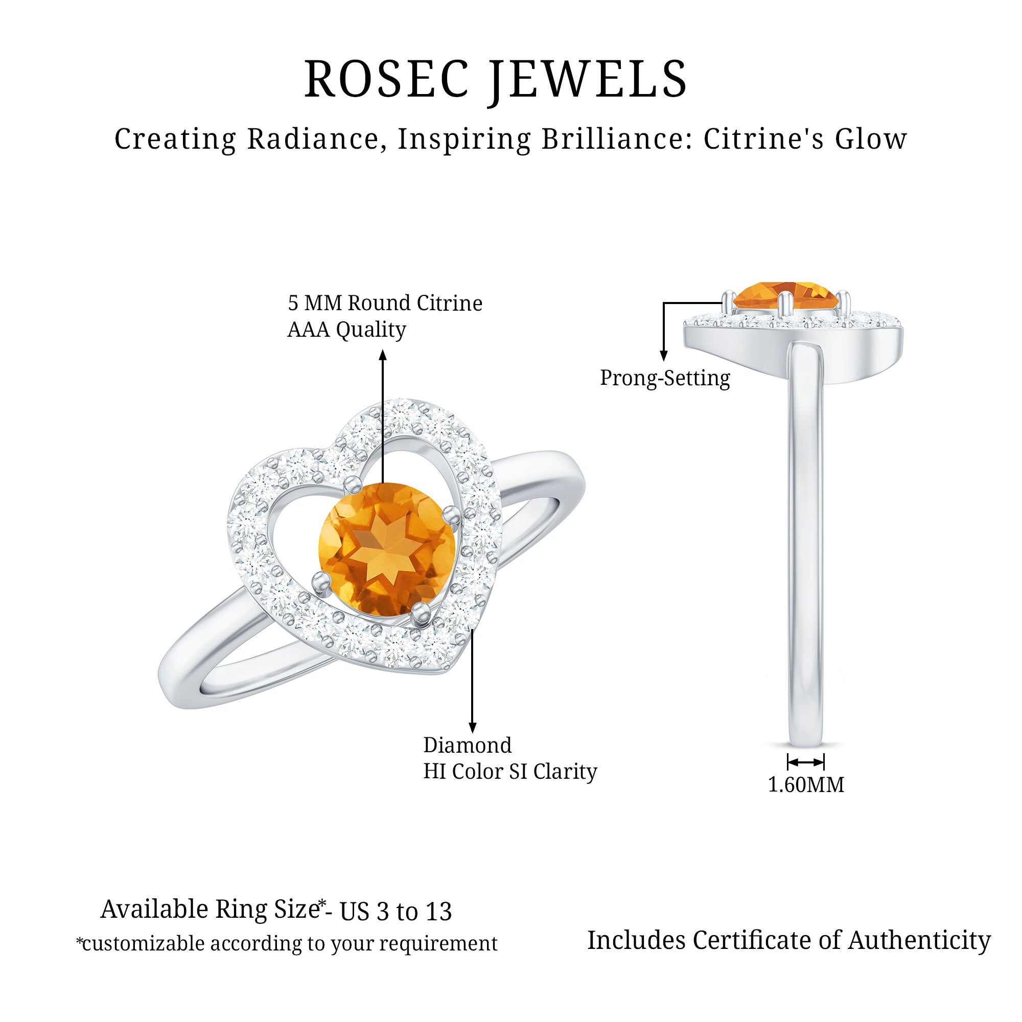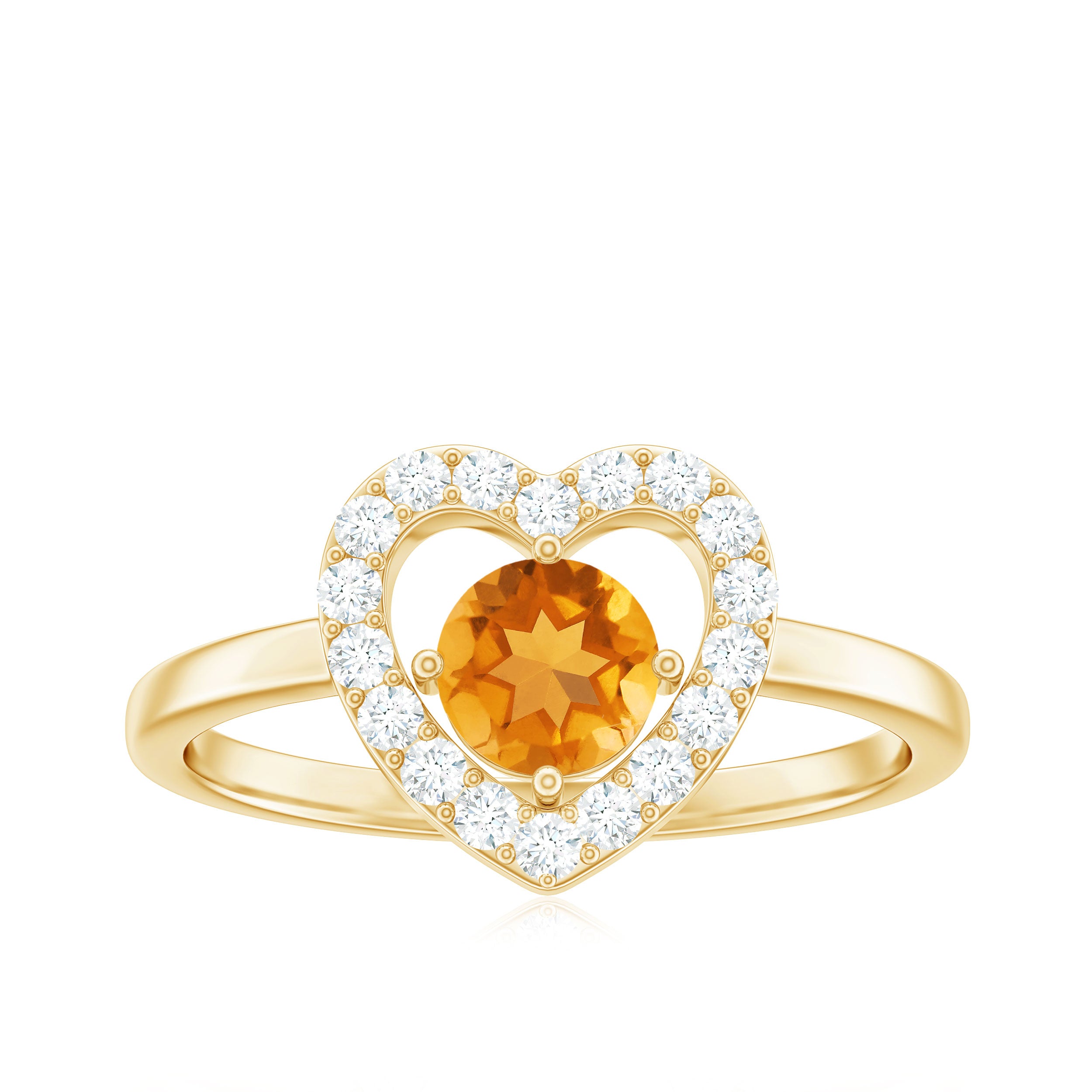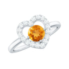 1 CT Round Citrine Heart Engagement Ring with Diamond Halo