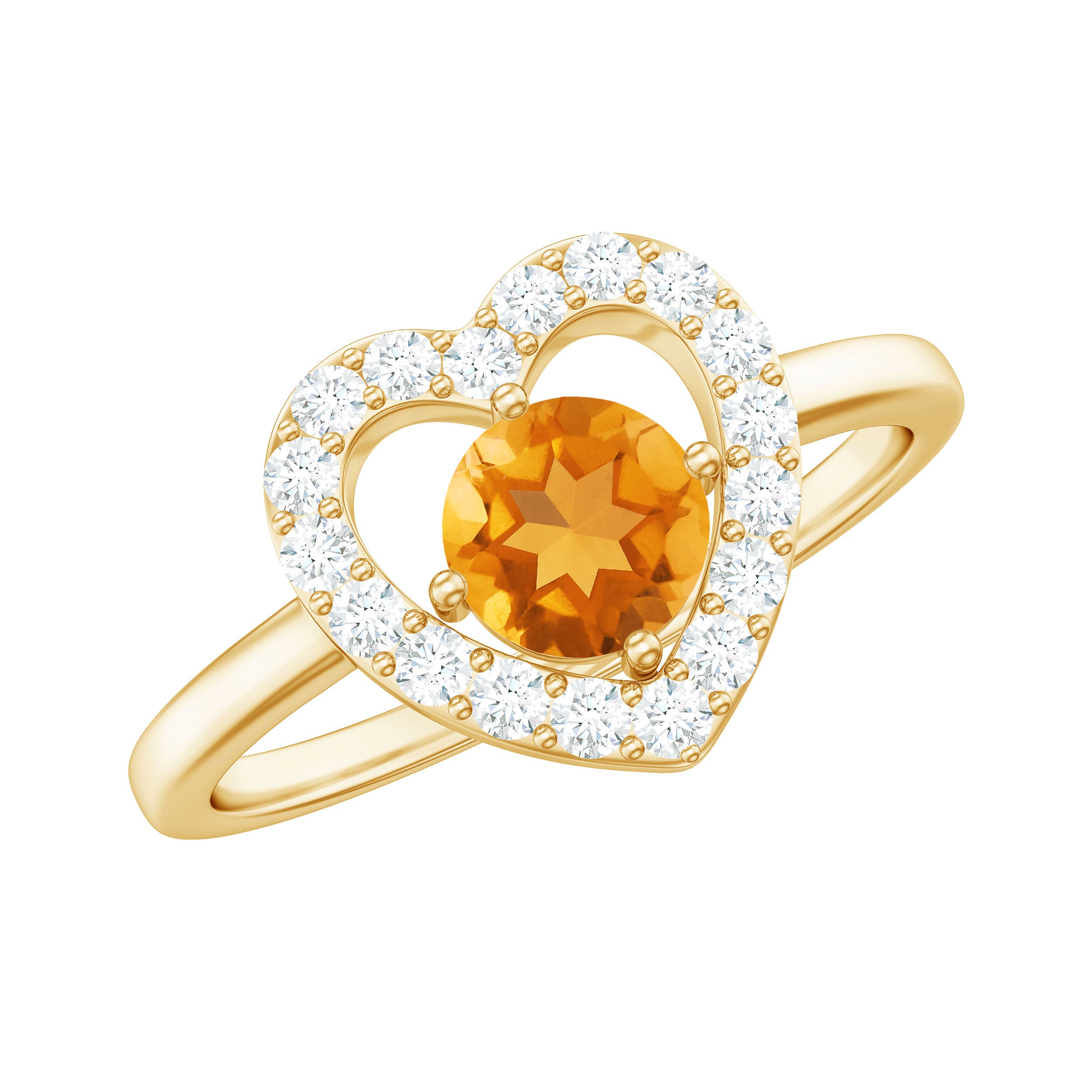 This delicate and timeless Citrine Jewelry is the perfect symbol of your love. The unique style makes it perfect for everyday wear and easy to stack with other jewelry. Heavenly crafted in Gold with Round Shape Citrine and Round Shape Diamond creating a heart shape halo in Prong Setting, makes a perfect Heart Engagement Ring.