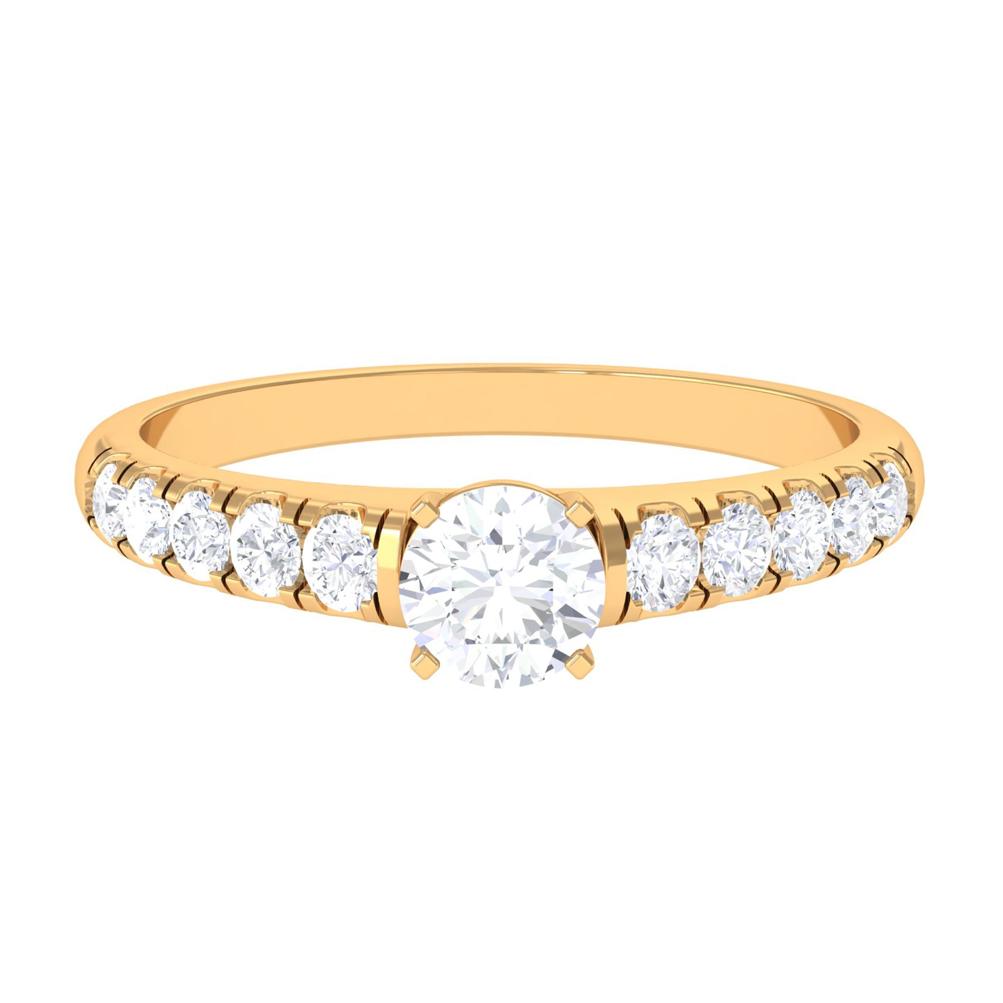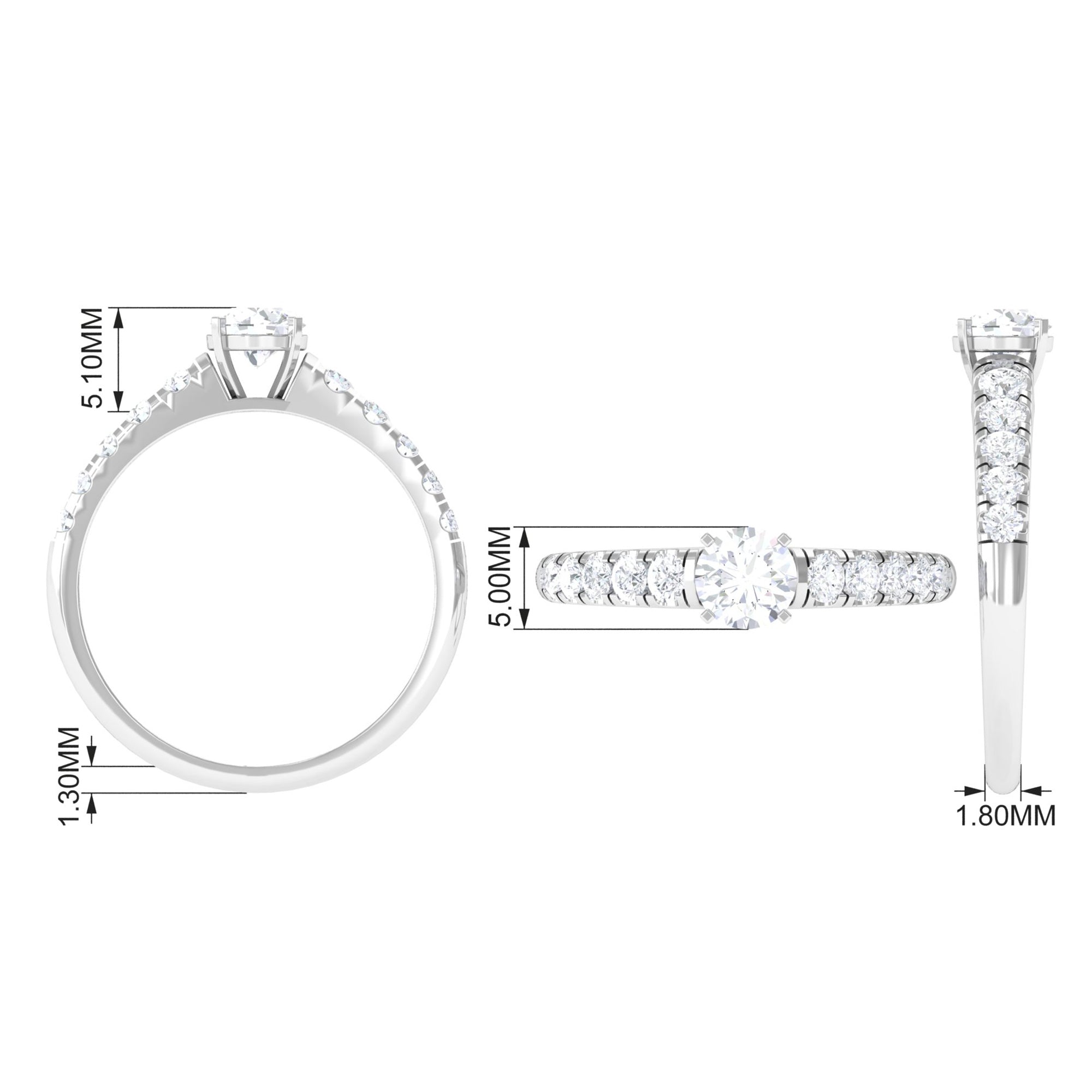 1 CT Round Cubic Zirconia Side Stone Engagement Ring