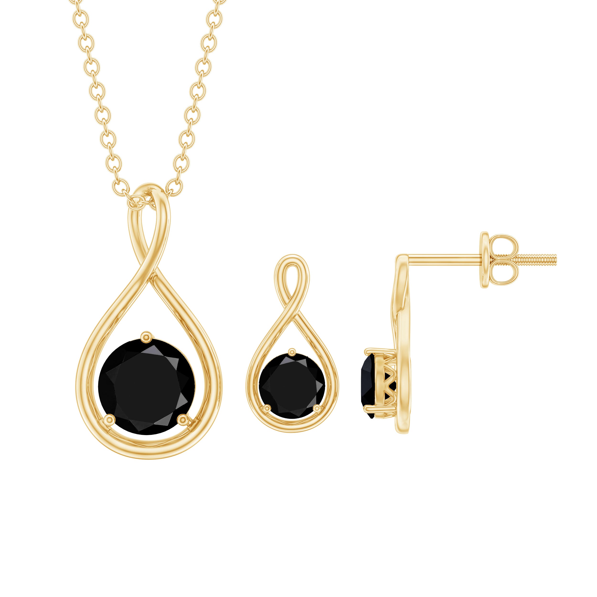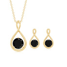 1 CT Round Cut Black Onyx Solitaire Infinity Jewelry Set in 3 Prong Setting
