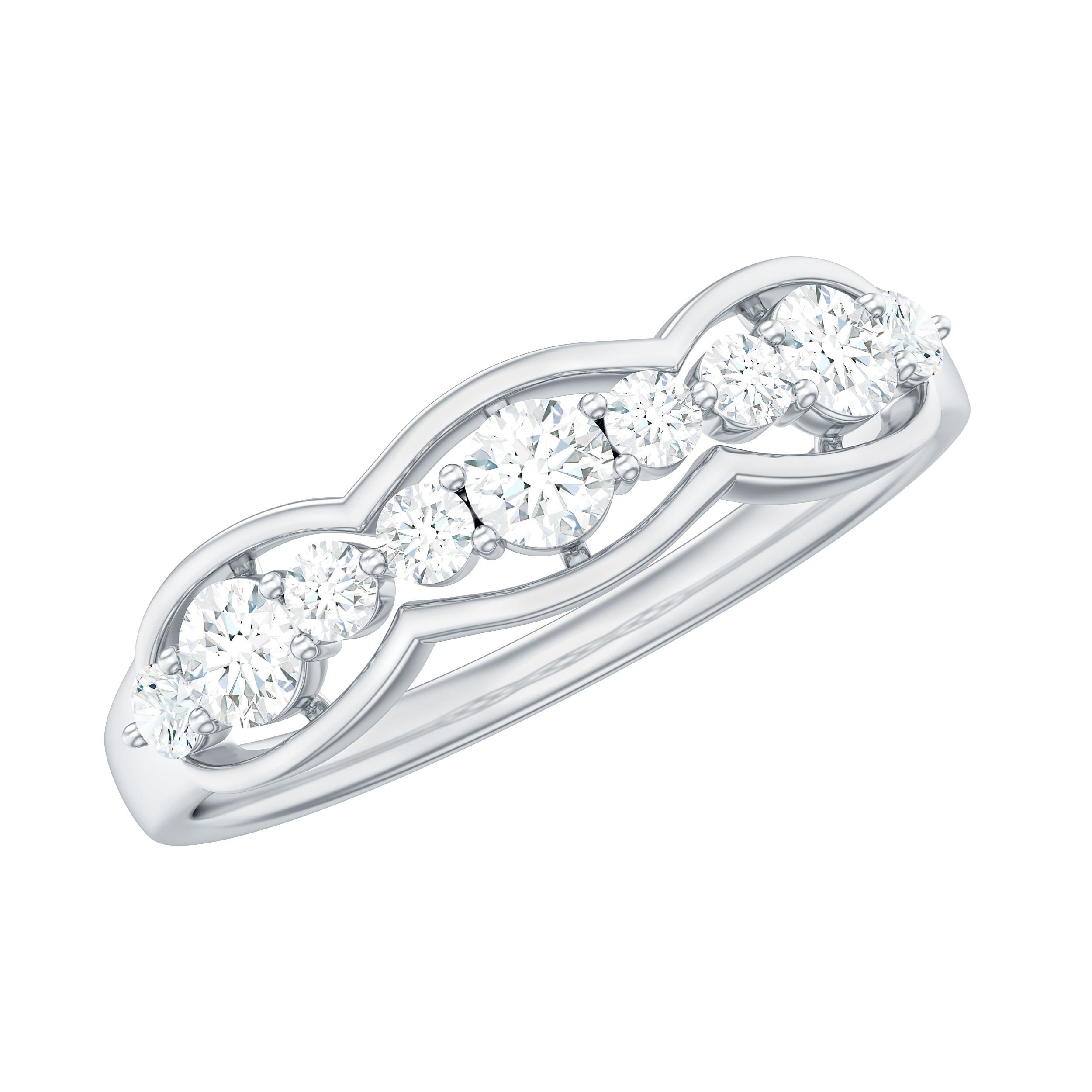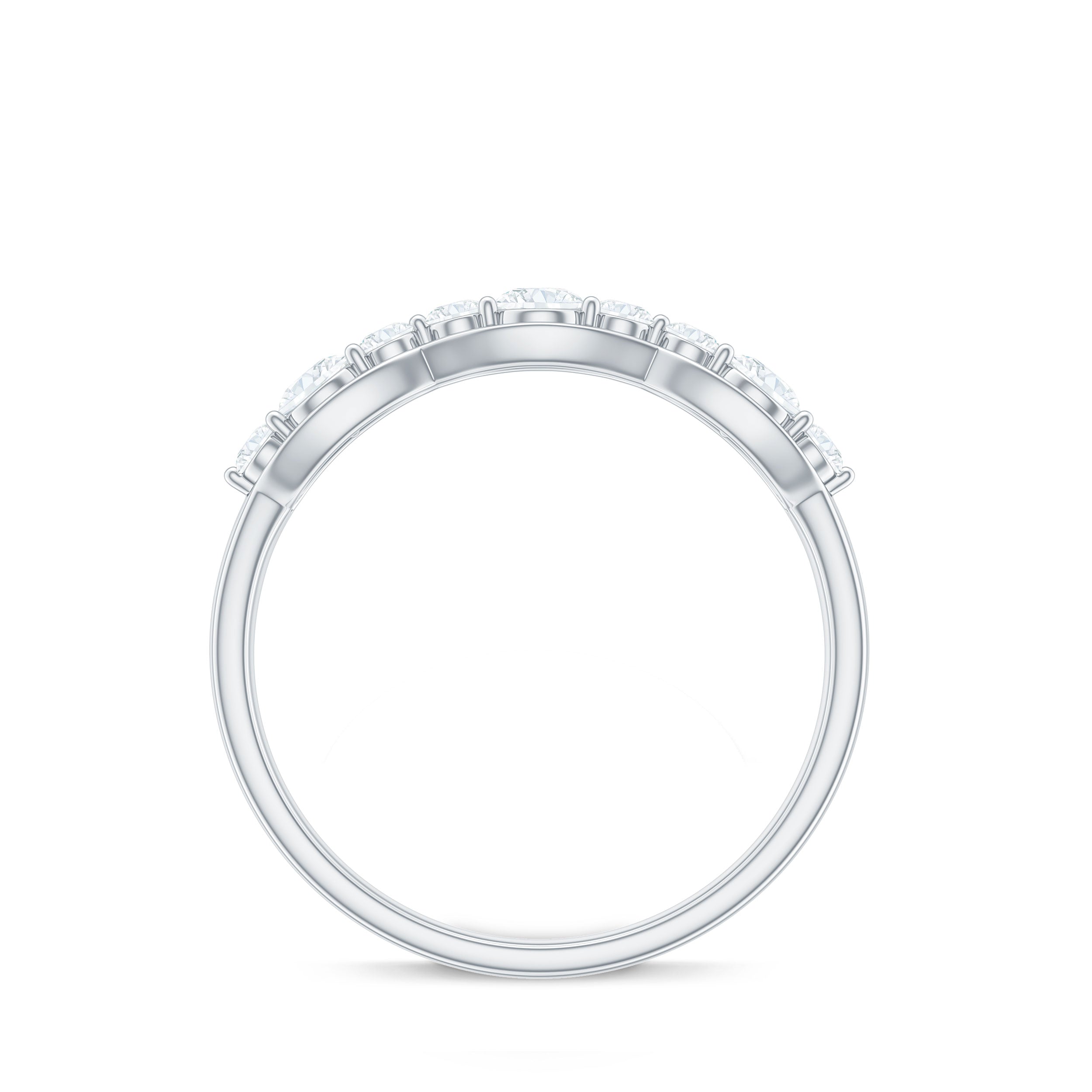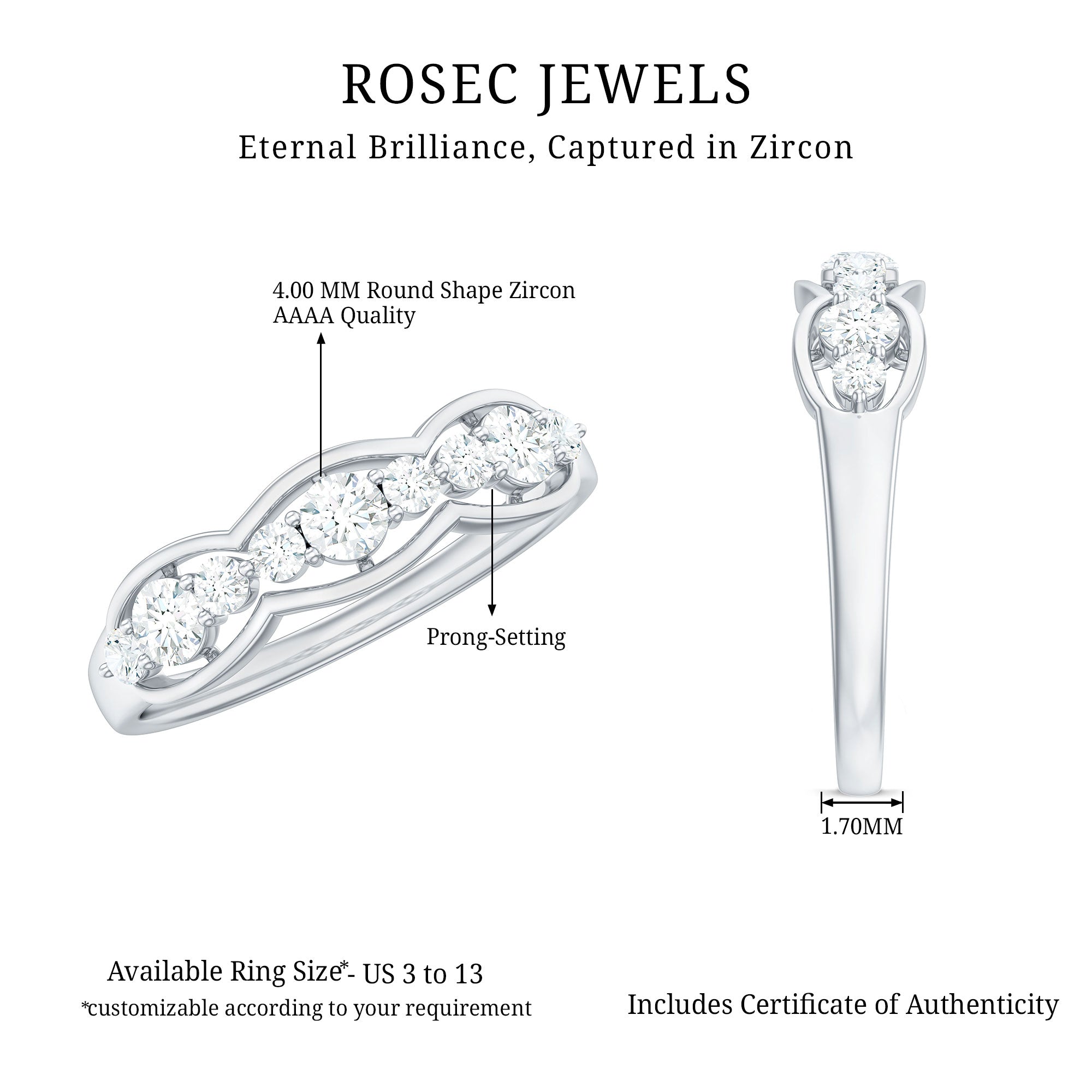 The Half Eternity Ring is a beautiful and classic piece of jewelry featuring sparkling round cut Zircon stones set in Prong Setting. This elegant design is perfect for marking special occasions such as anniversaries, or simply as an everyday accessory to add a touch of glamour to any outfit.