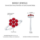 A Classic Lab Created Ruby Wedding Ring embellished with cluster form in a prong setting. This stunning Floral design enhances the beauty of the ring. Statement Women Flower Partywear Ring is composed of Gold. An ideal anniversary present for your partner.