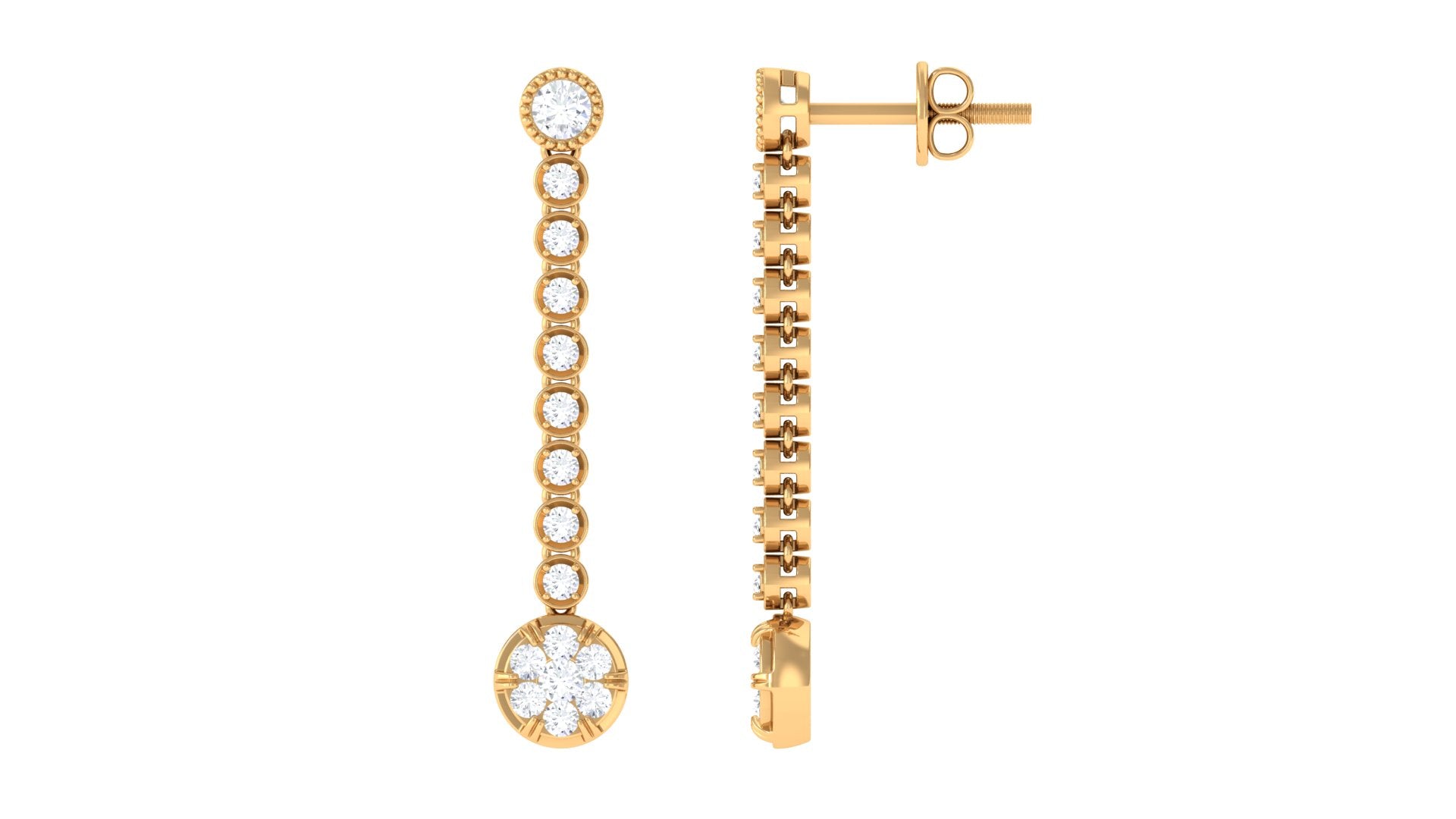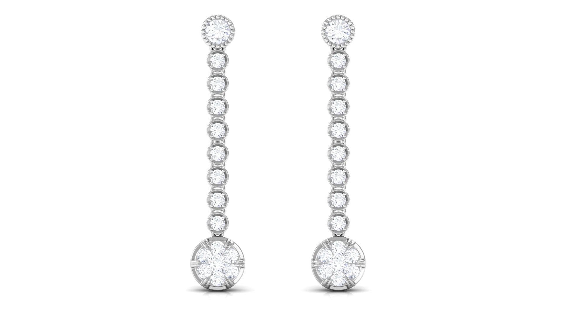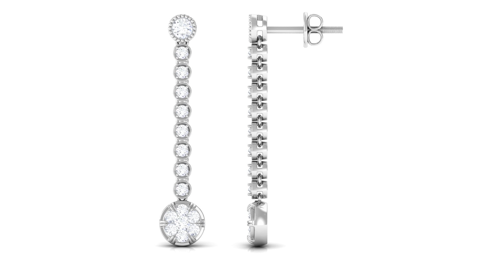 Step up your style game with these stunning Dangle Earrings. The Chain Drop Earrings feature Round Cut Moissanite stones for an eye-catching effect. These Dangle Chain Earrings are secured comfortably with screw-backs. Surprise your significant other with these Moissanite Earrings as a wedding present, and let her shine on your big day in these dazzling earrings.