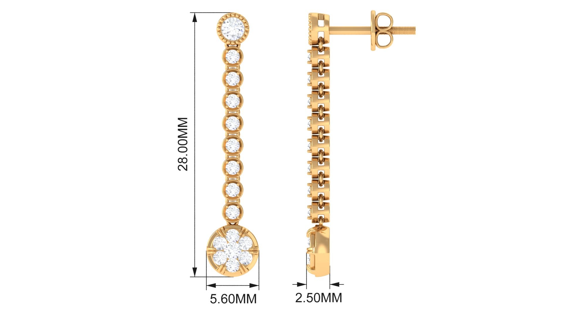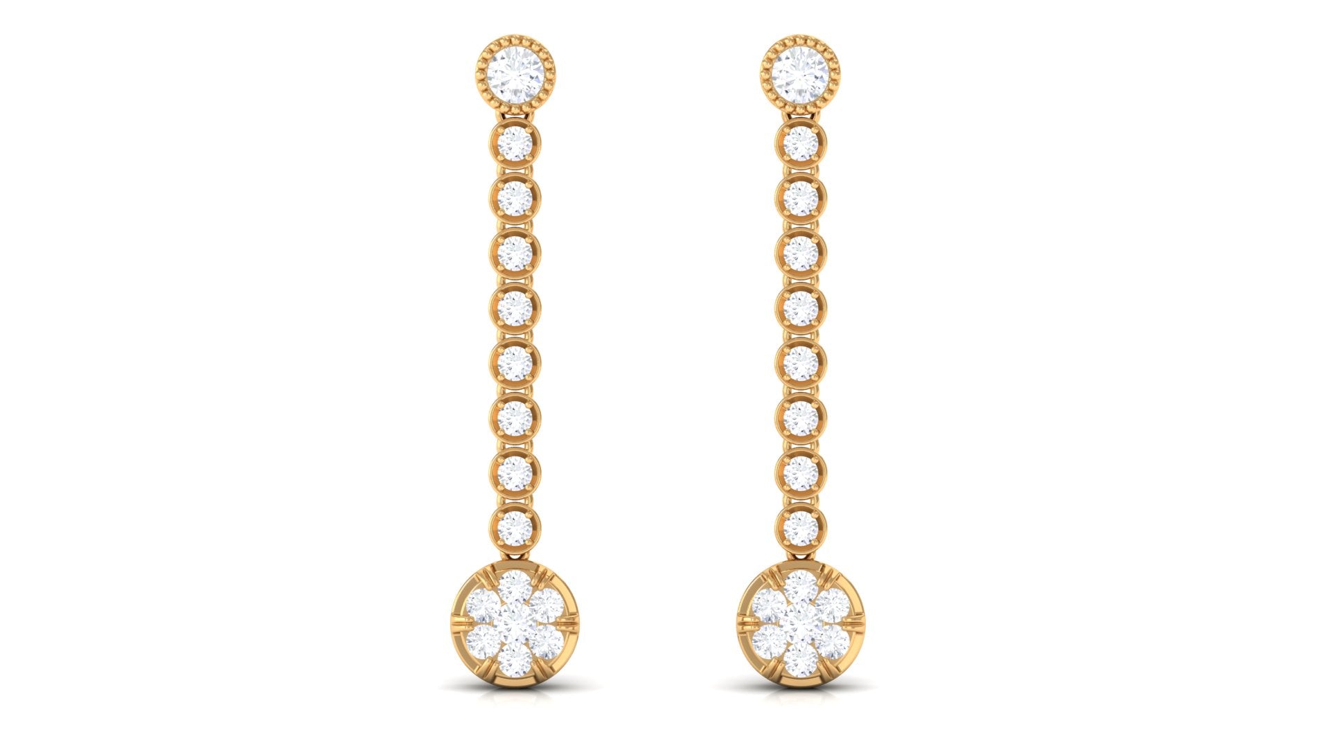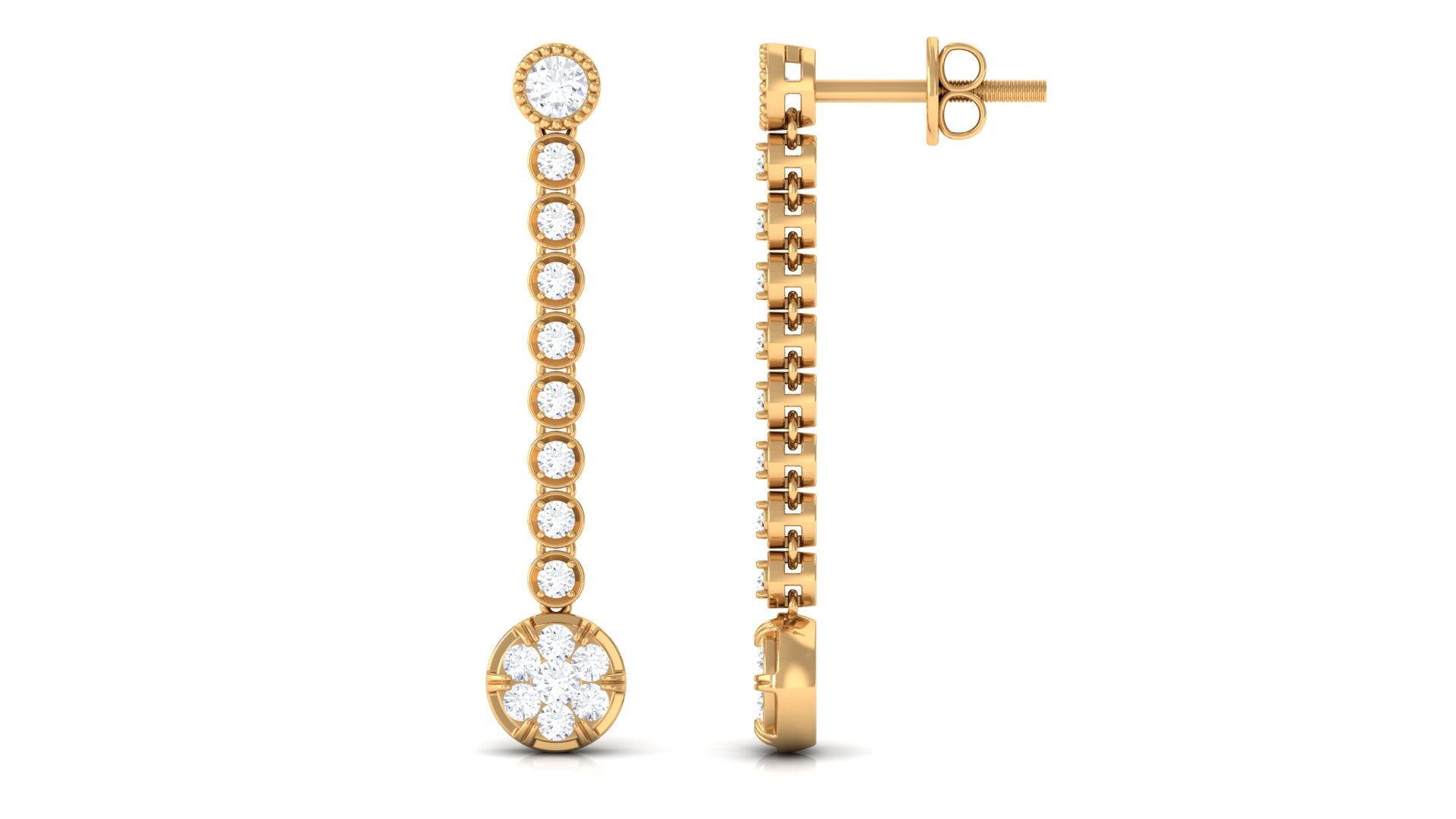 Step up your style game with these stunning Dangle Earrings. The Chain Drop Earrings feature Round Cut Moissanite stones for an eye-catching effect. These Dangle Chain Earrings are secured comfortably with screw-backs. Surprise your significant other with these Moissanite Earrings as a wedding present, and let her shine on your big day in these dazzling earrings.
