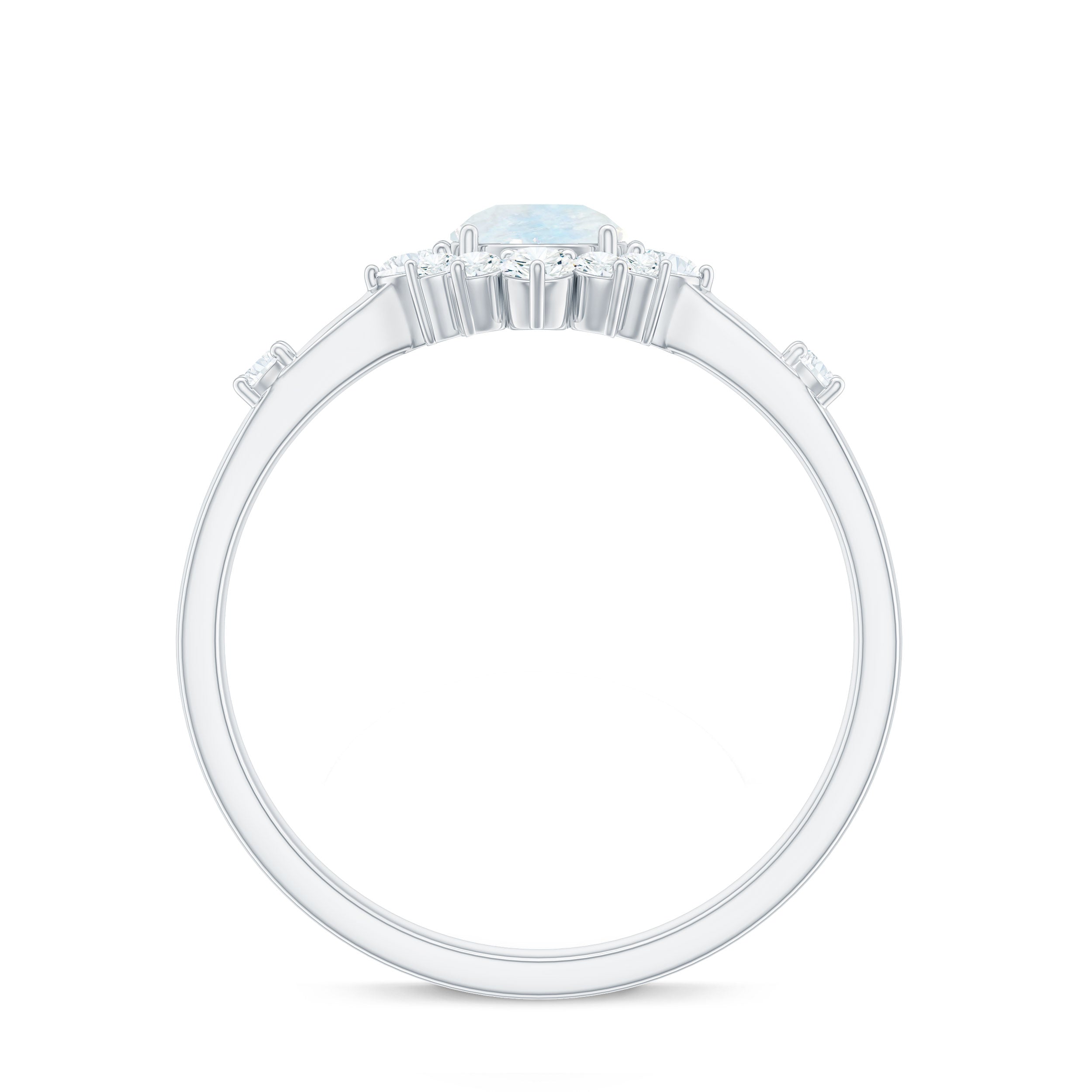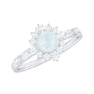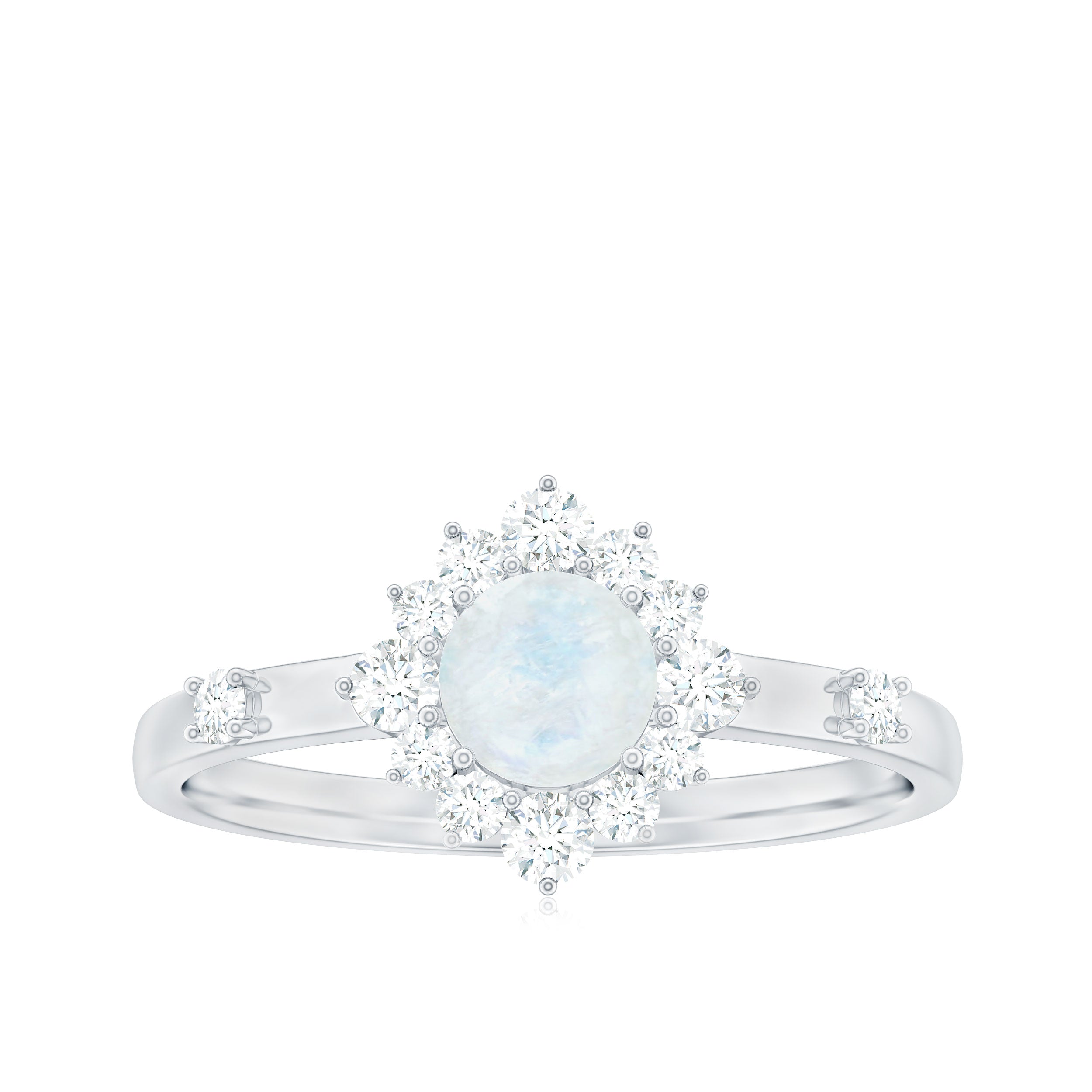 1 CT Round Moonstone and Diamond Halo Engagement Ring
