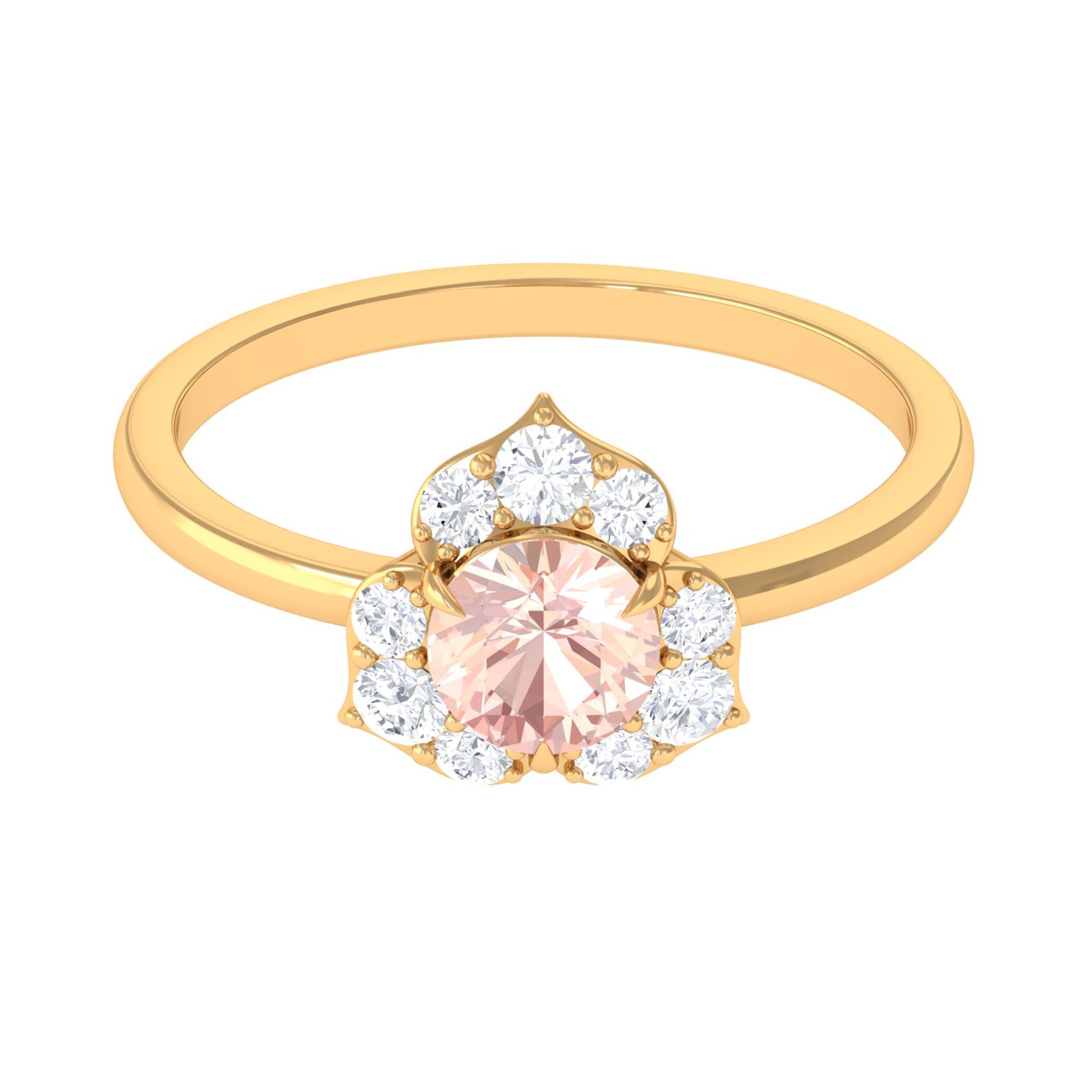 1 CT Round Morganite Flower Engagement Ring with Diamond