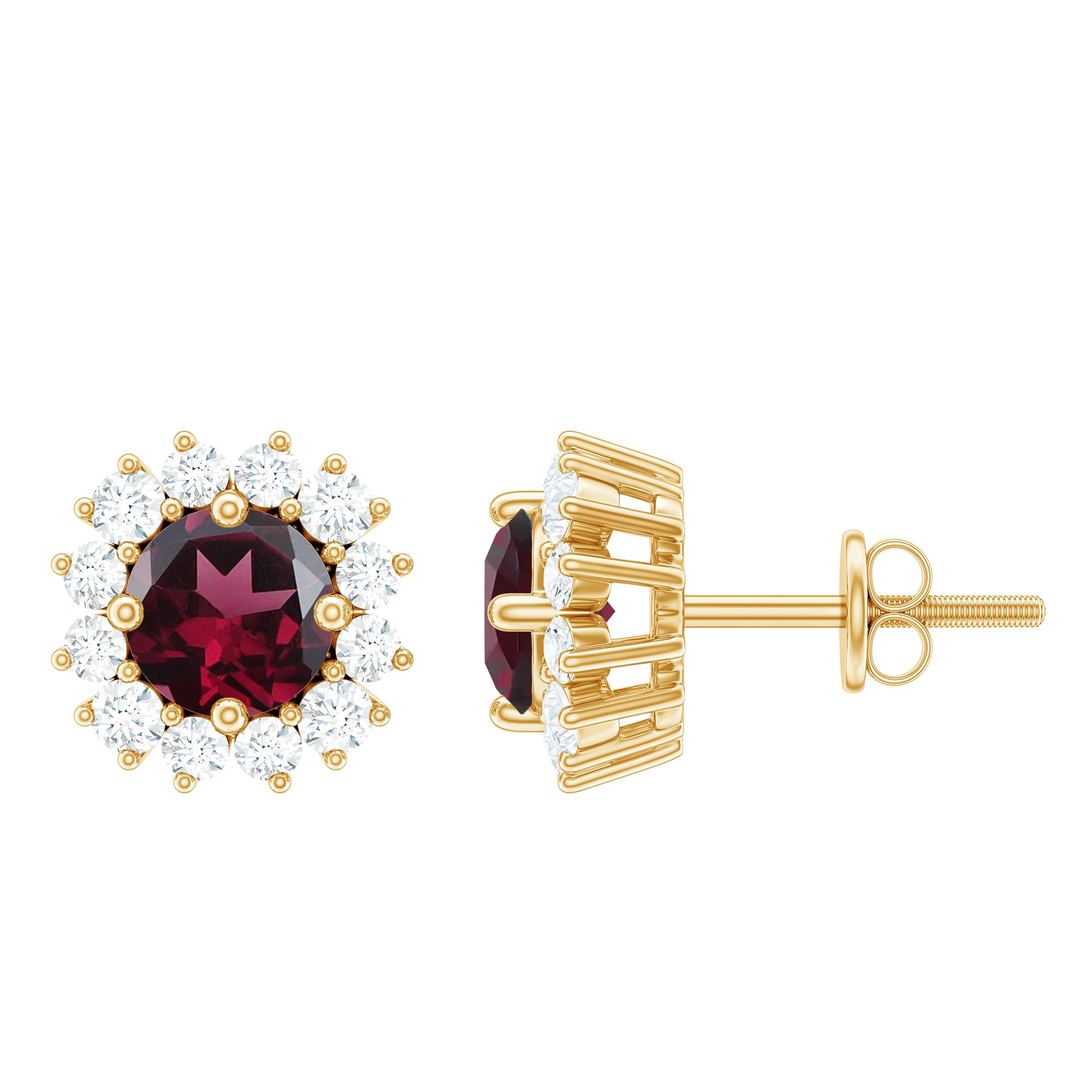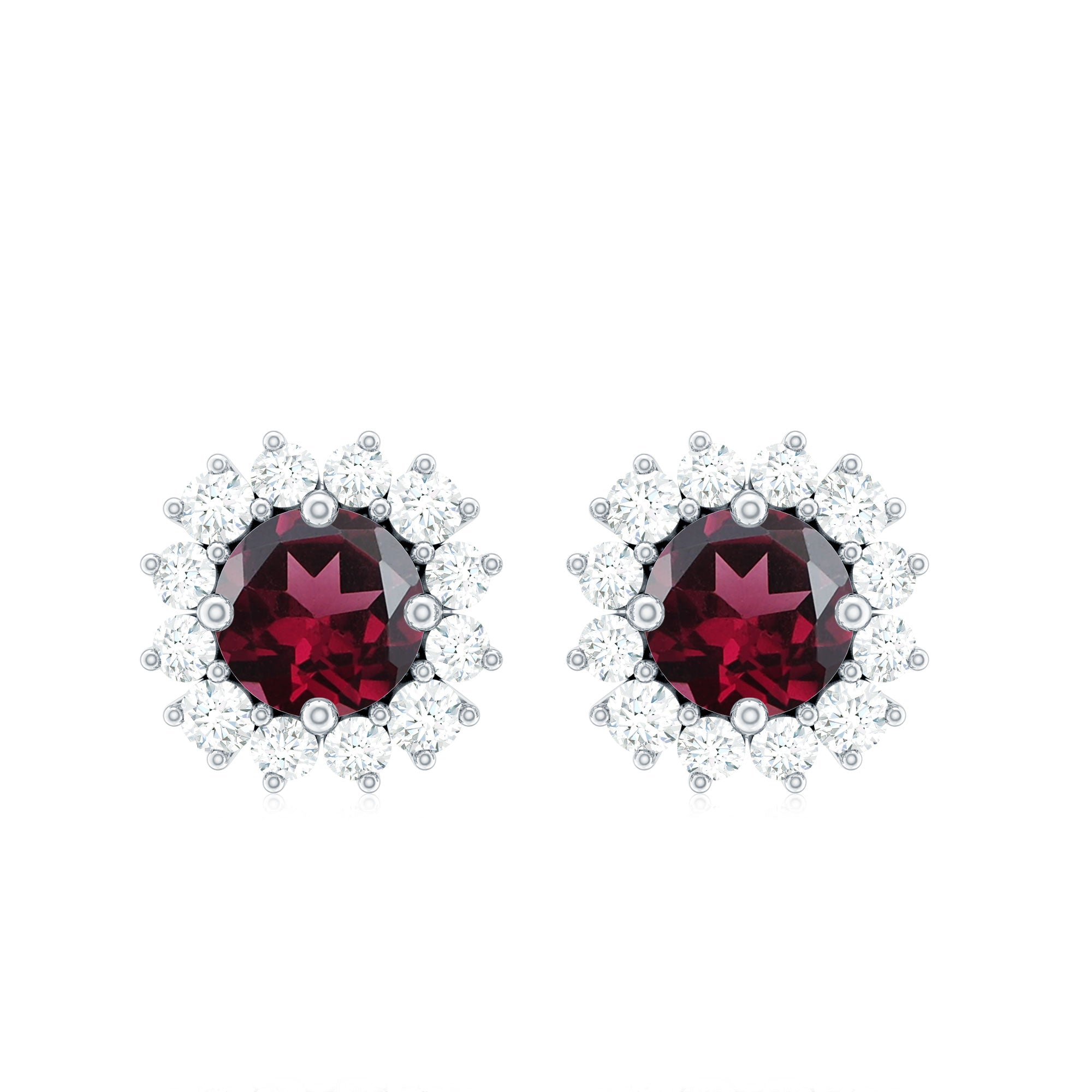 1 CT Round Rhodolite and Diamond Halo Stud Earrings