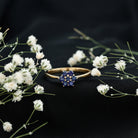 This simple yet classic flower ring features a cluster of round-shaped blue sapphire gemstones beautifully studded in a prong setting, enhancing the rings stunning floral design. Crafted from high-quality solid gold, this ring is a timeless piece that exudes elegance and beauty. Whether worn on its own or paired with other jewelry, this ring is the perfect accessory to complement any outfit and occasion. Its unique and eye-catching design makes it a standout piece that is sure to garner compliments and admiration.