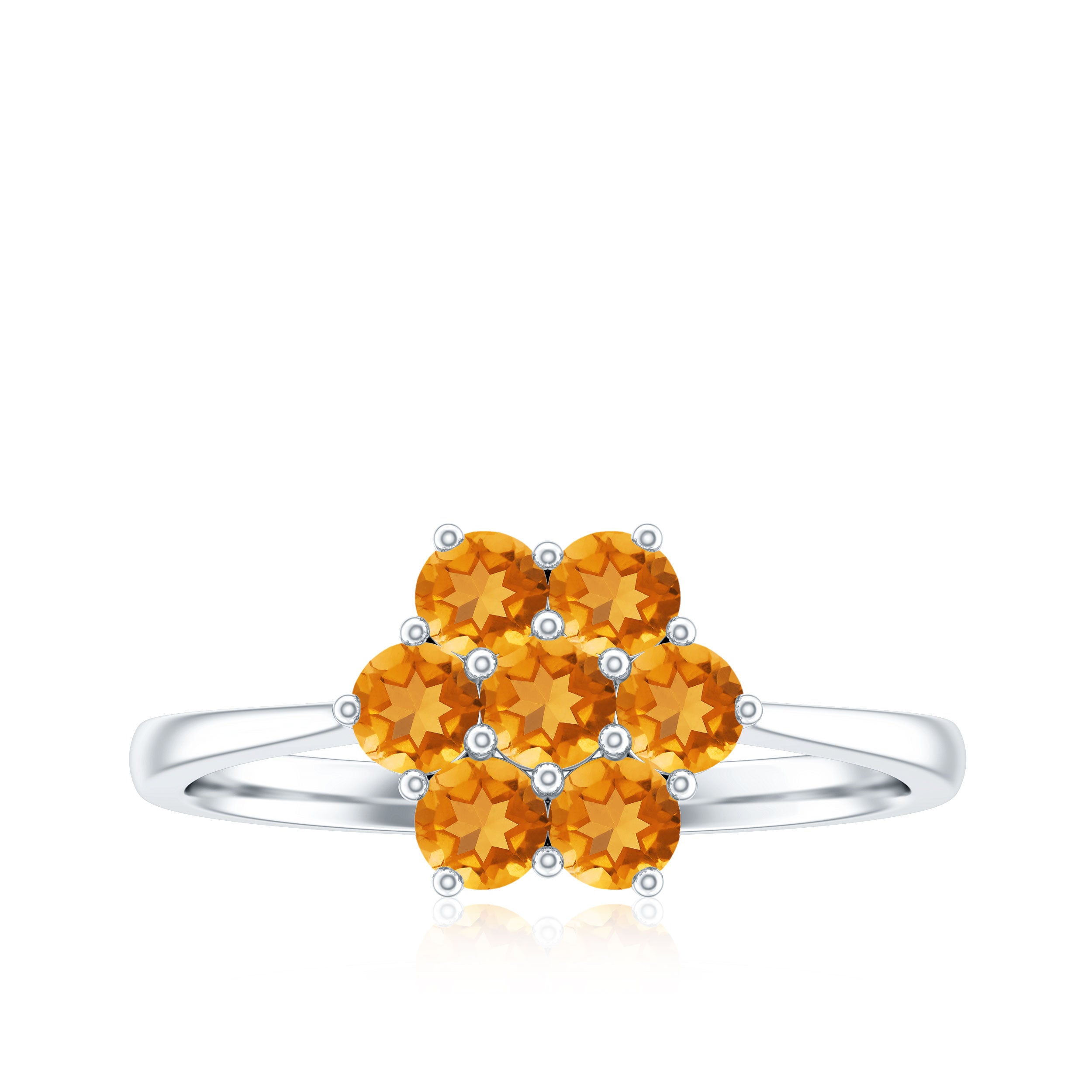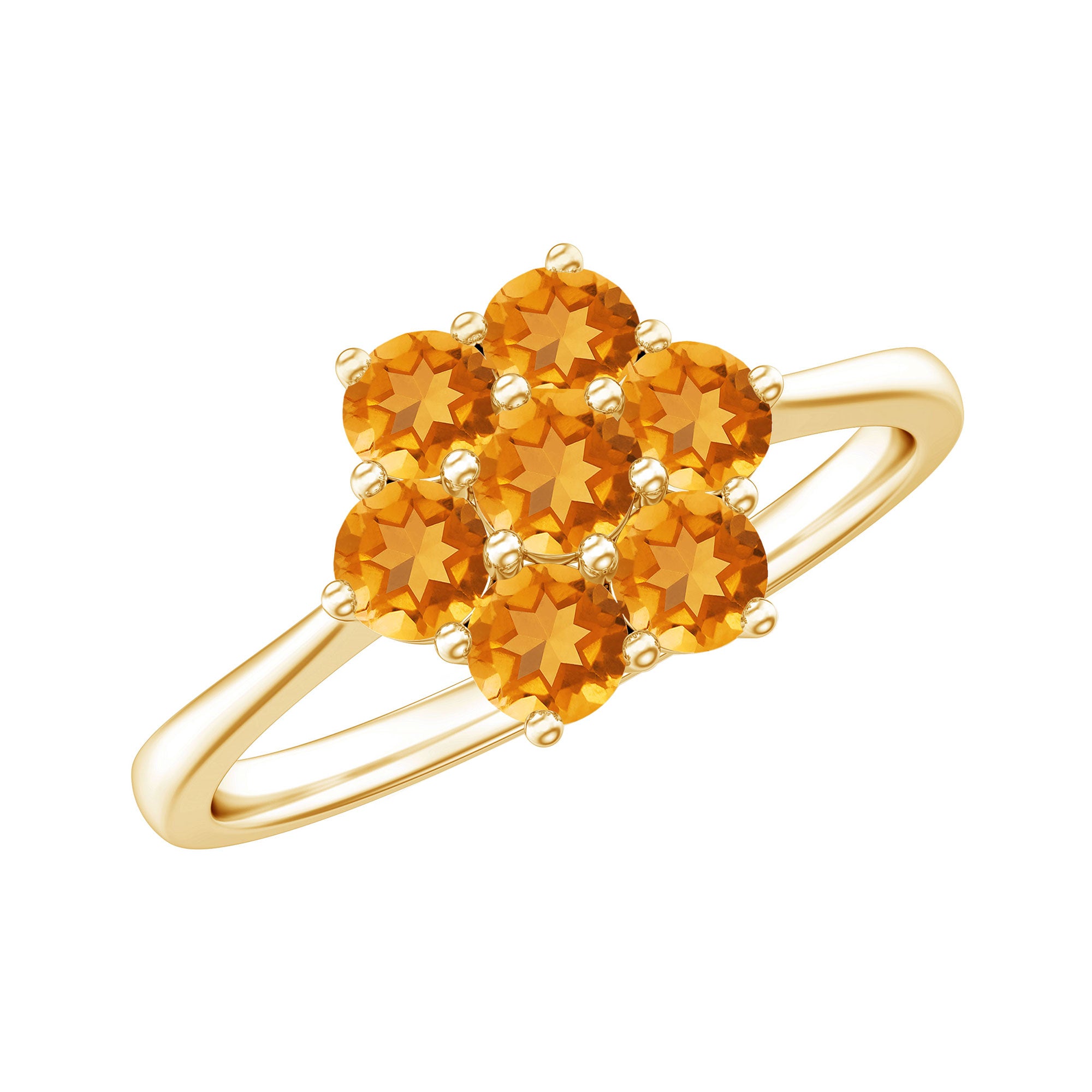 1 CT Round Shape Citrine Cluster Flower Ring in Gold