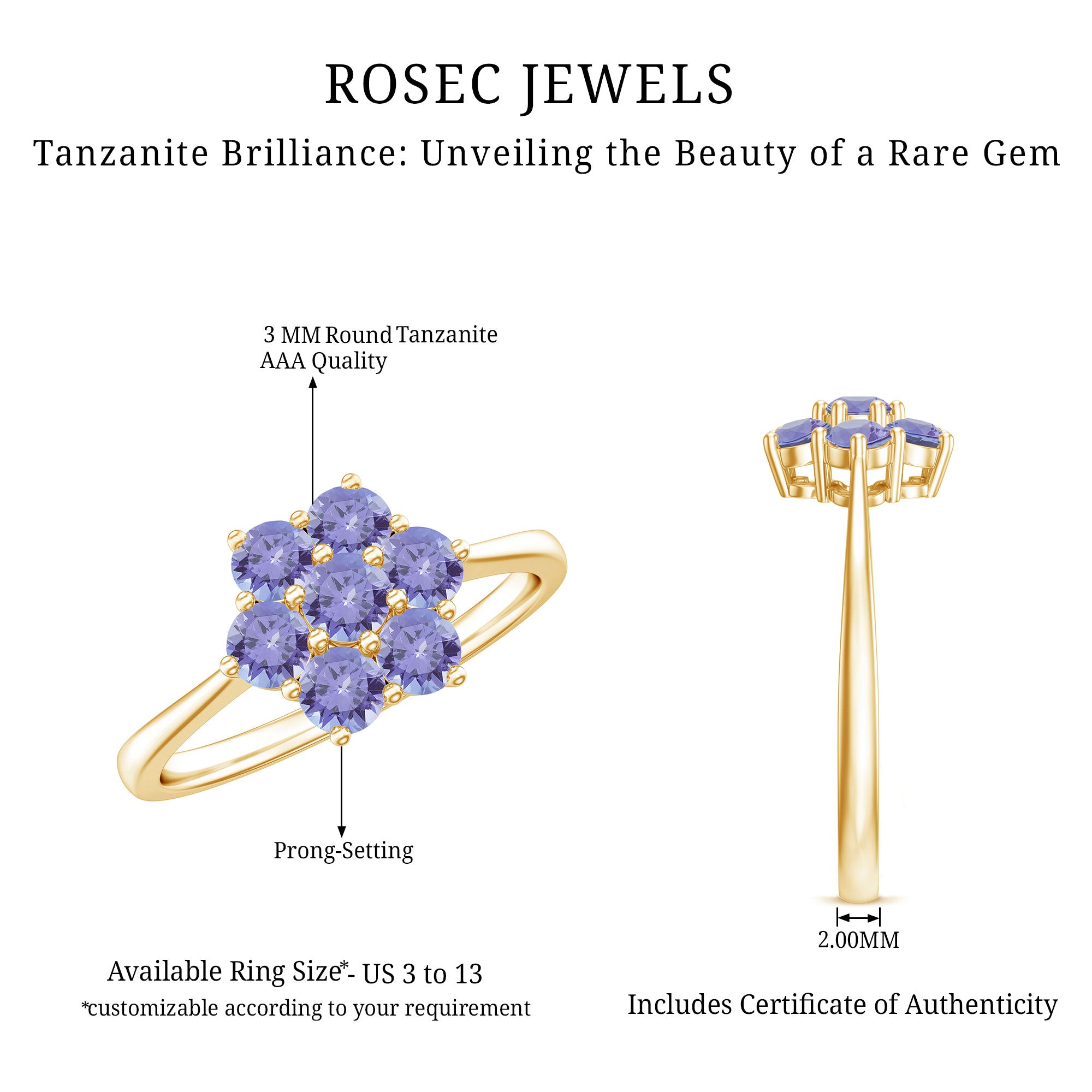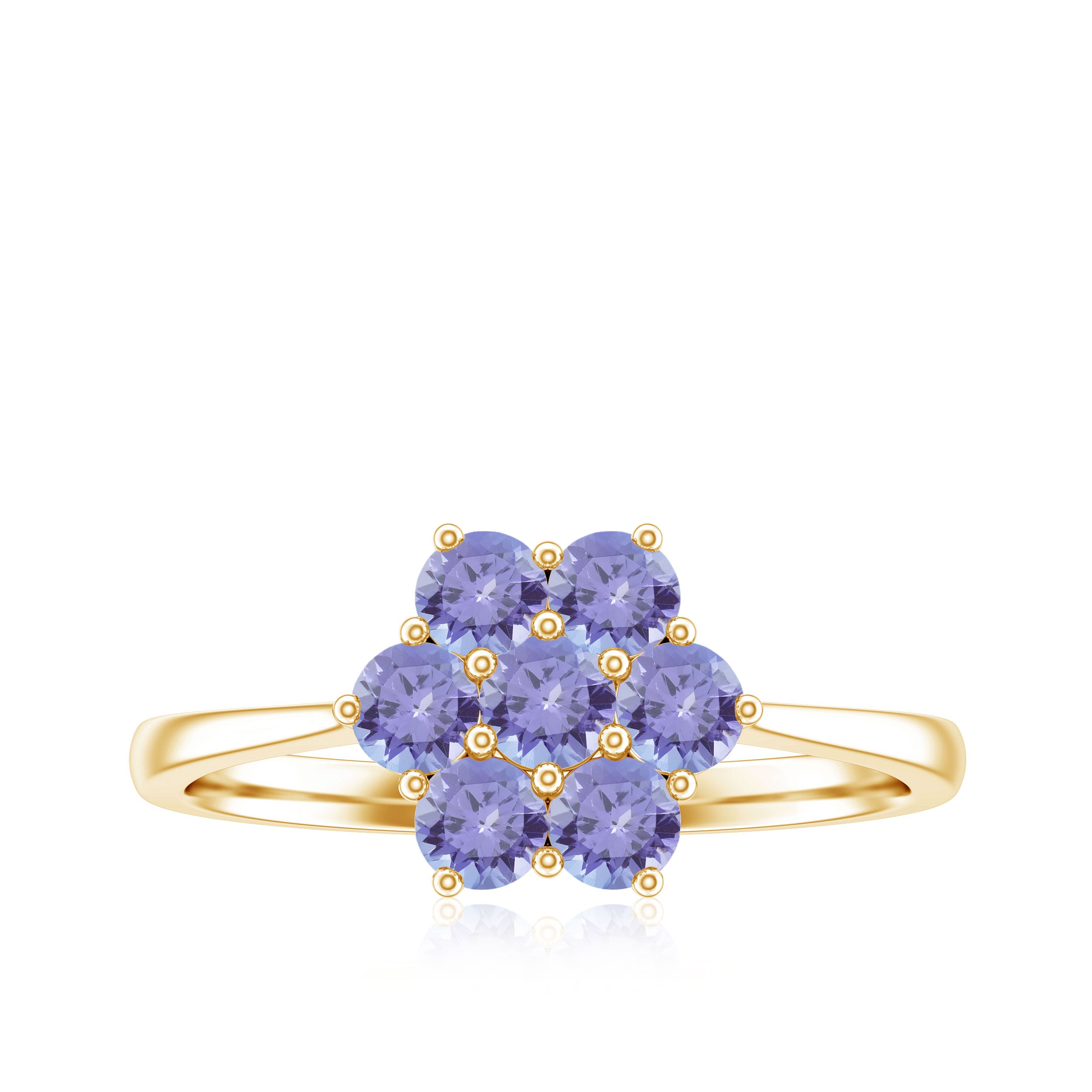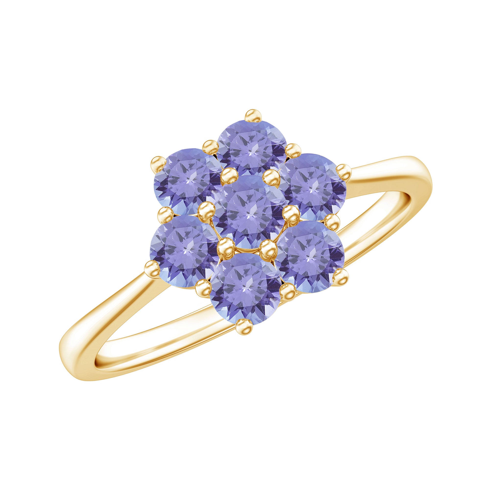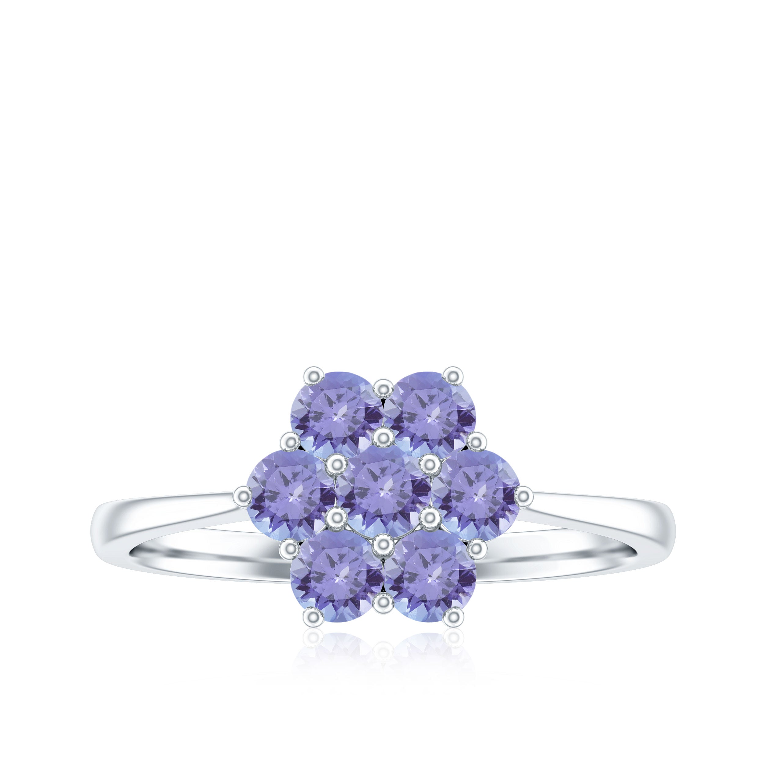 1 CT Round Shape Tanzanite Cluster Flower Ring