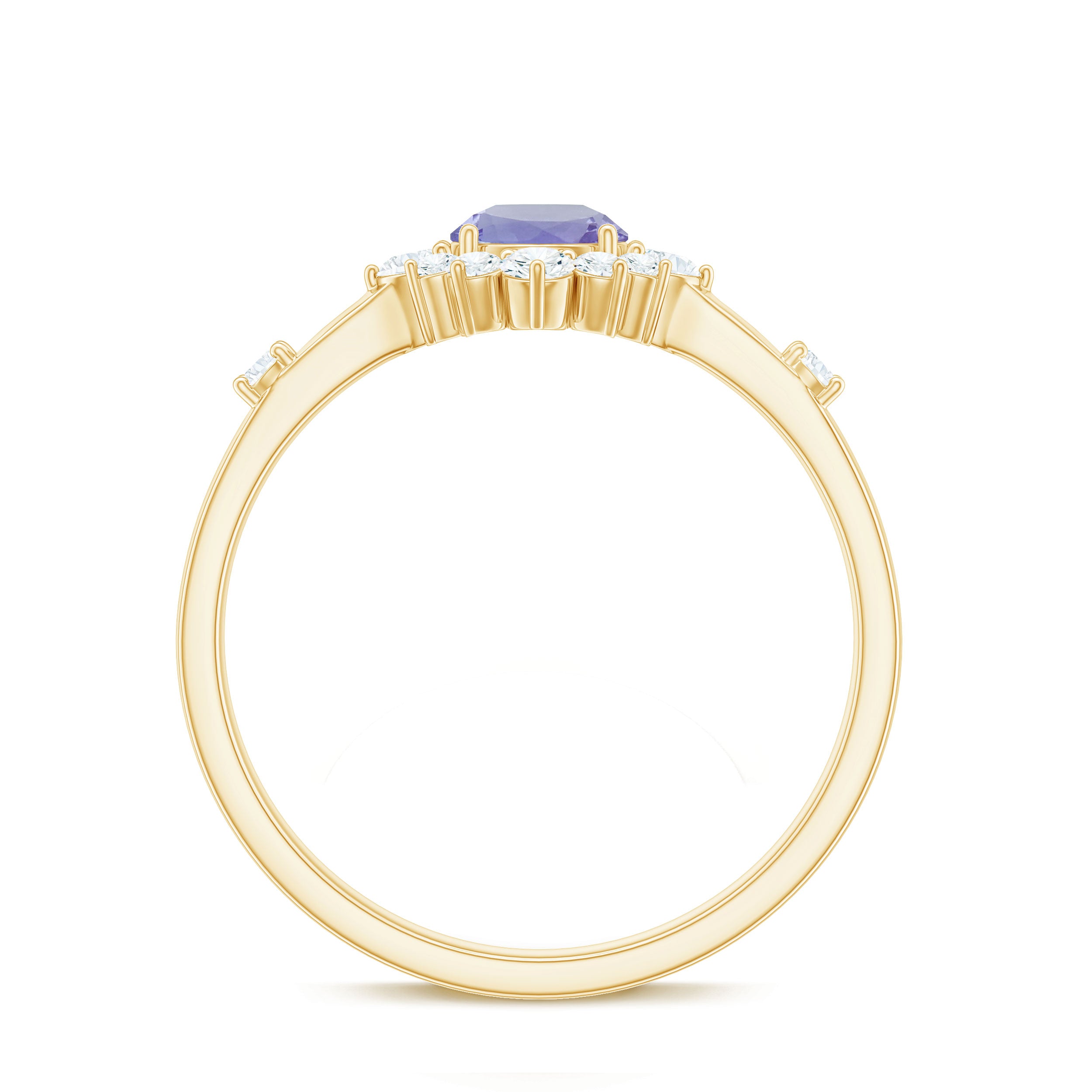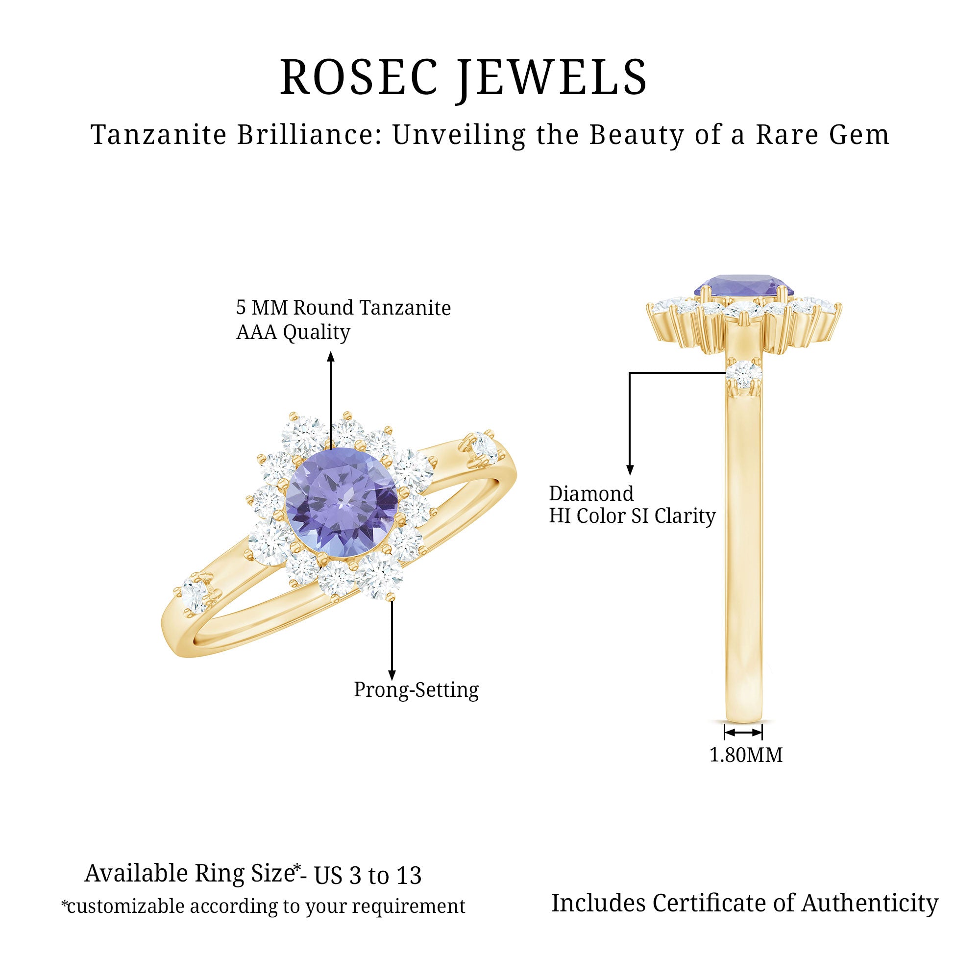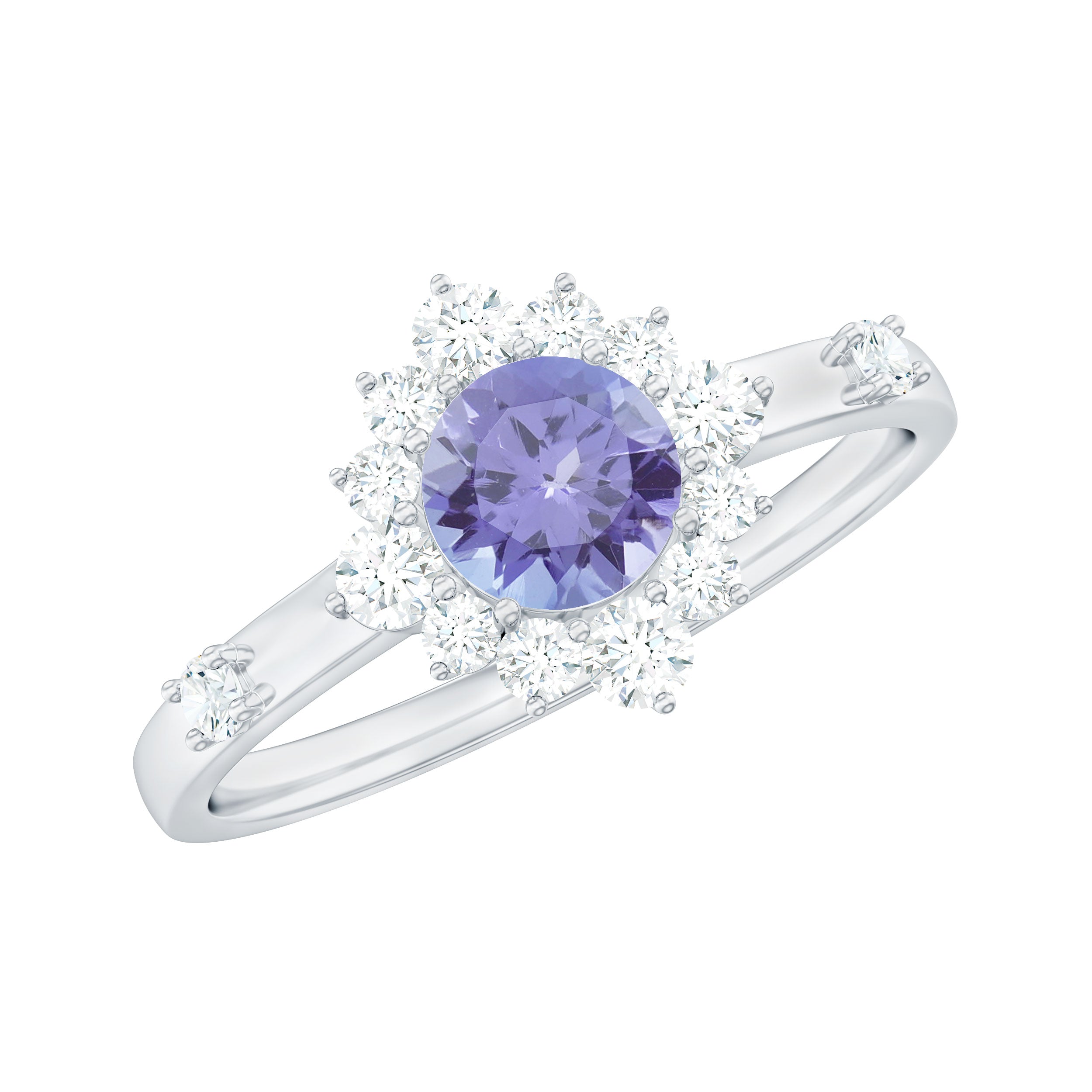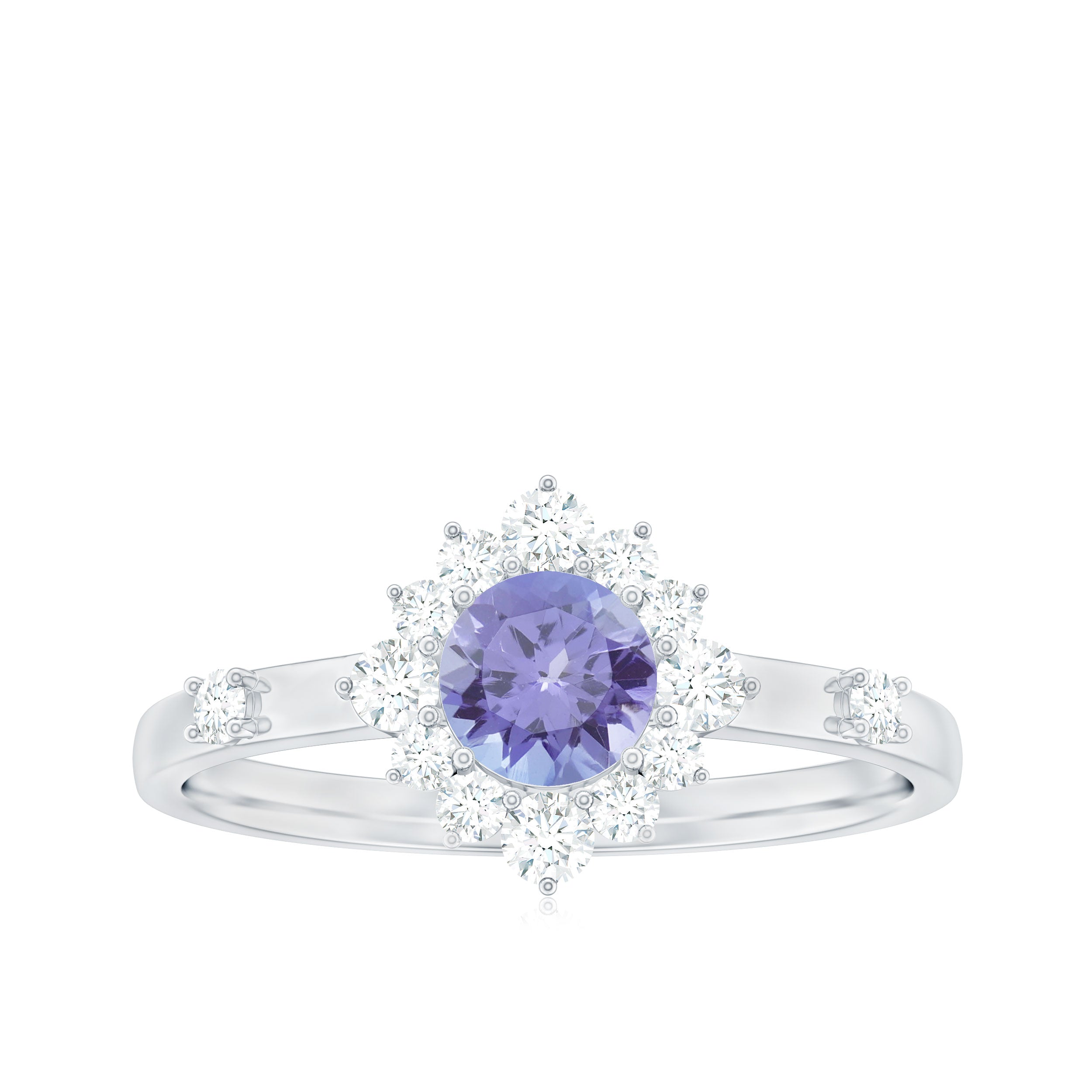 1 CT Round Tanzanite and Diamond Halo Engagement Ring