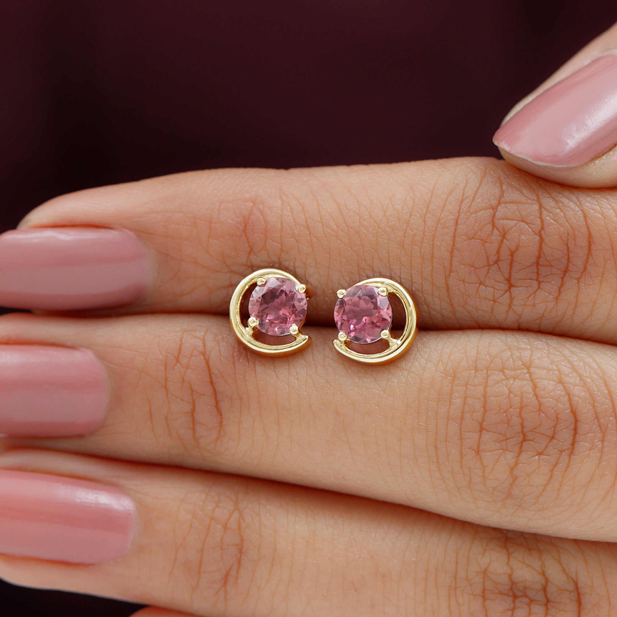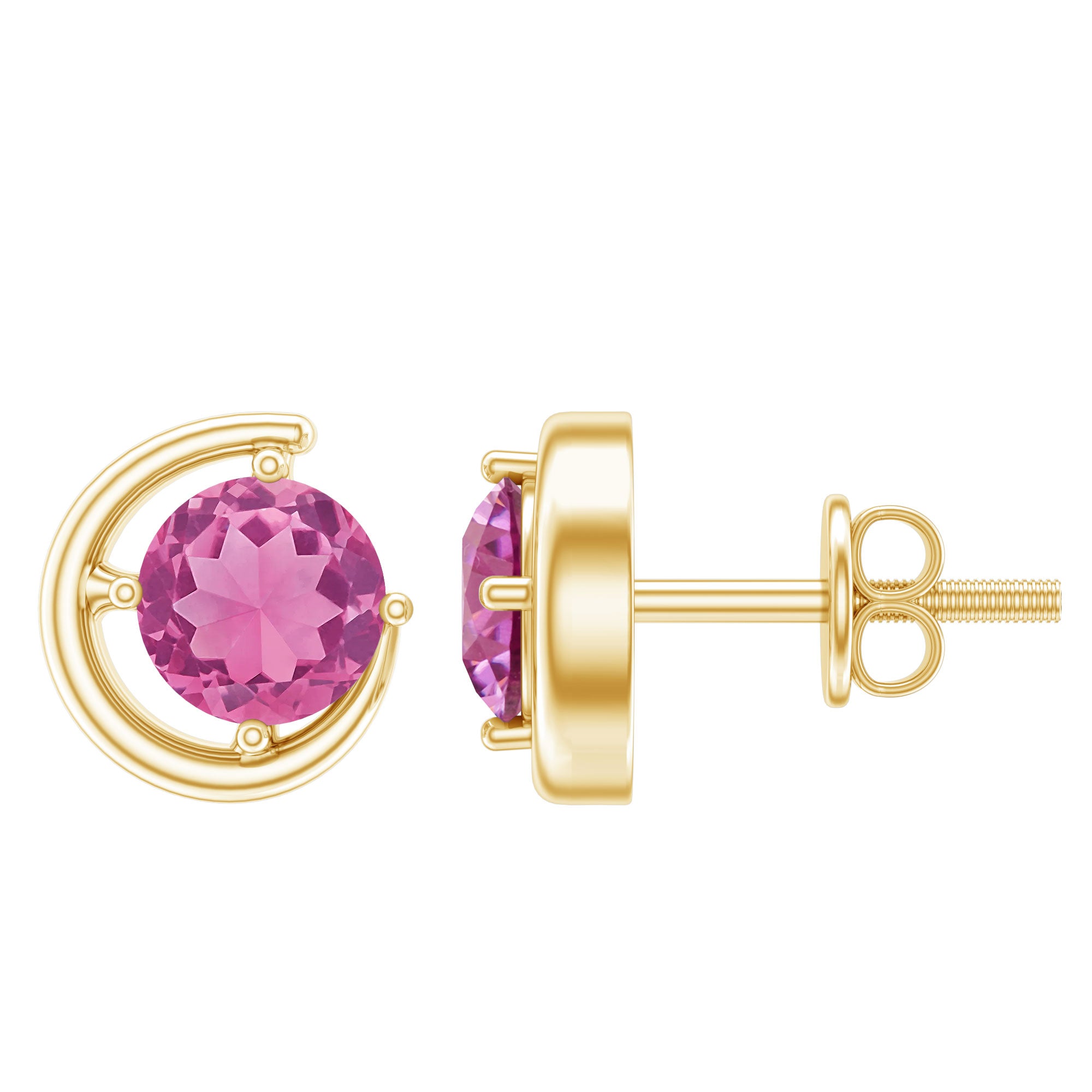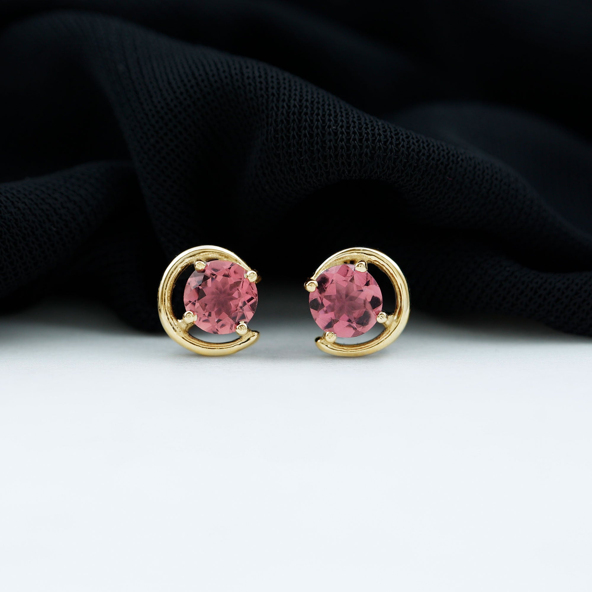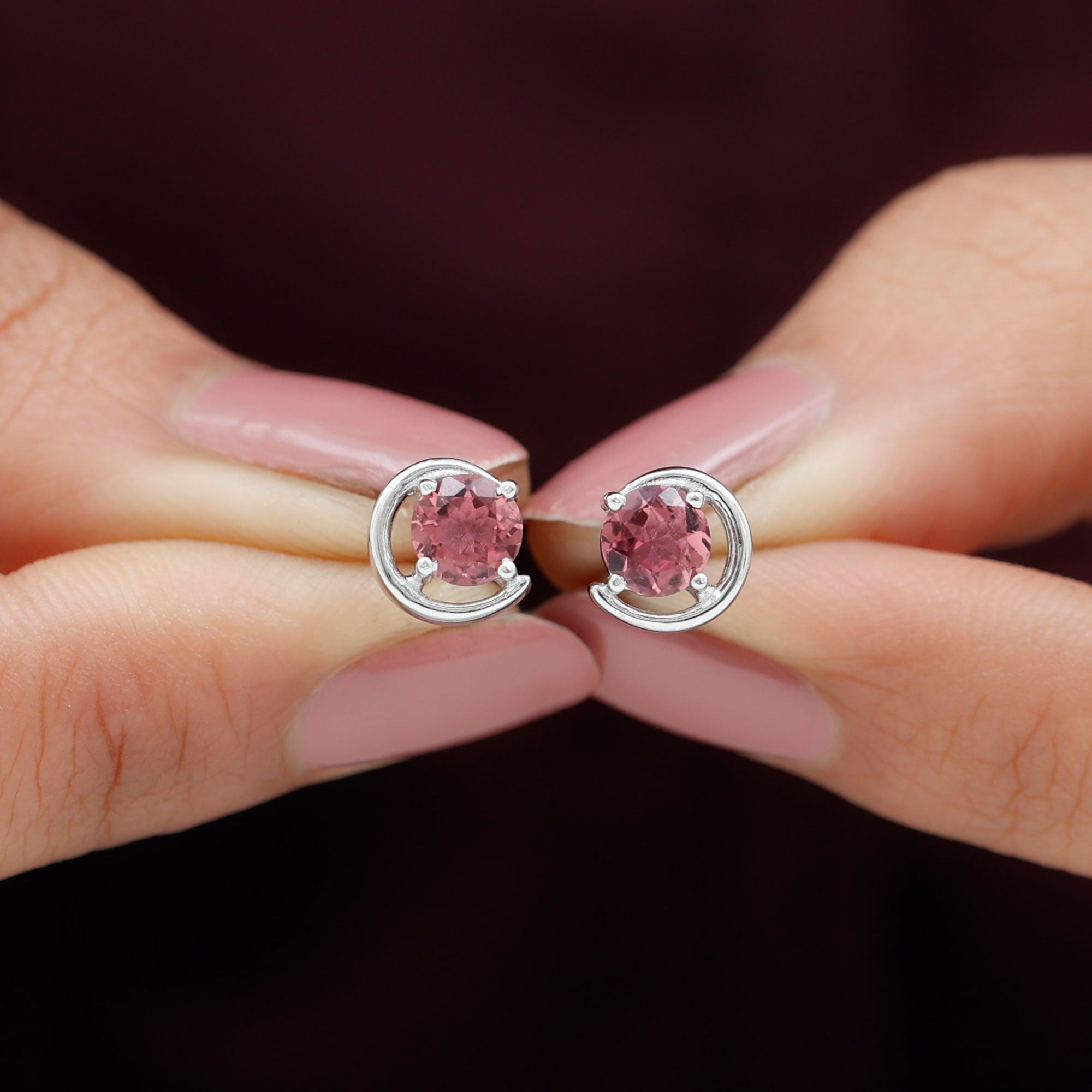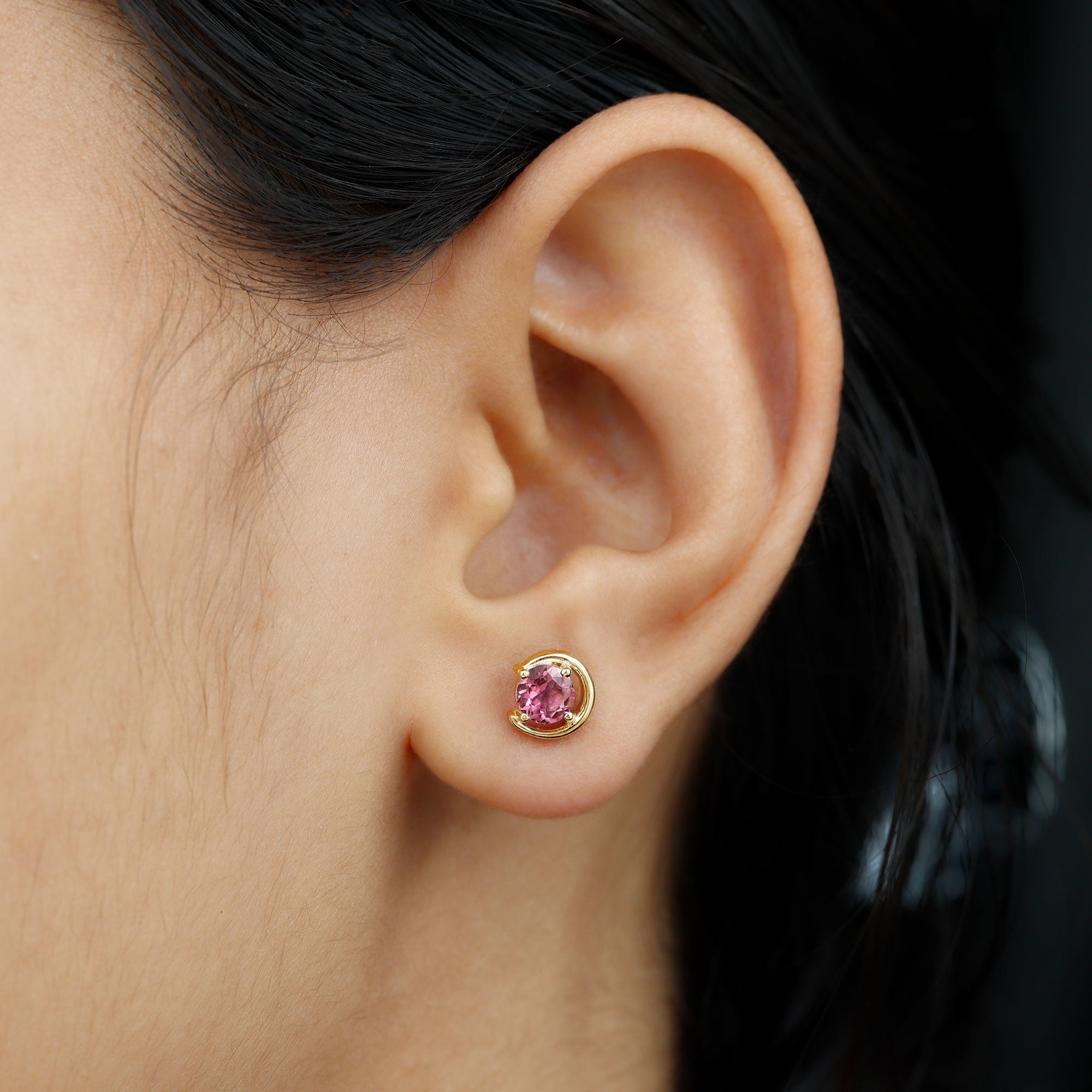 This Solitaire Earring is studded with a Round Shape Pink Tourmaline as Solitaire in Prong Setting. This Stud Earring is an ideal piece of Fine Jewelry for simple and subtle looks.