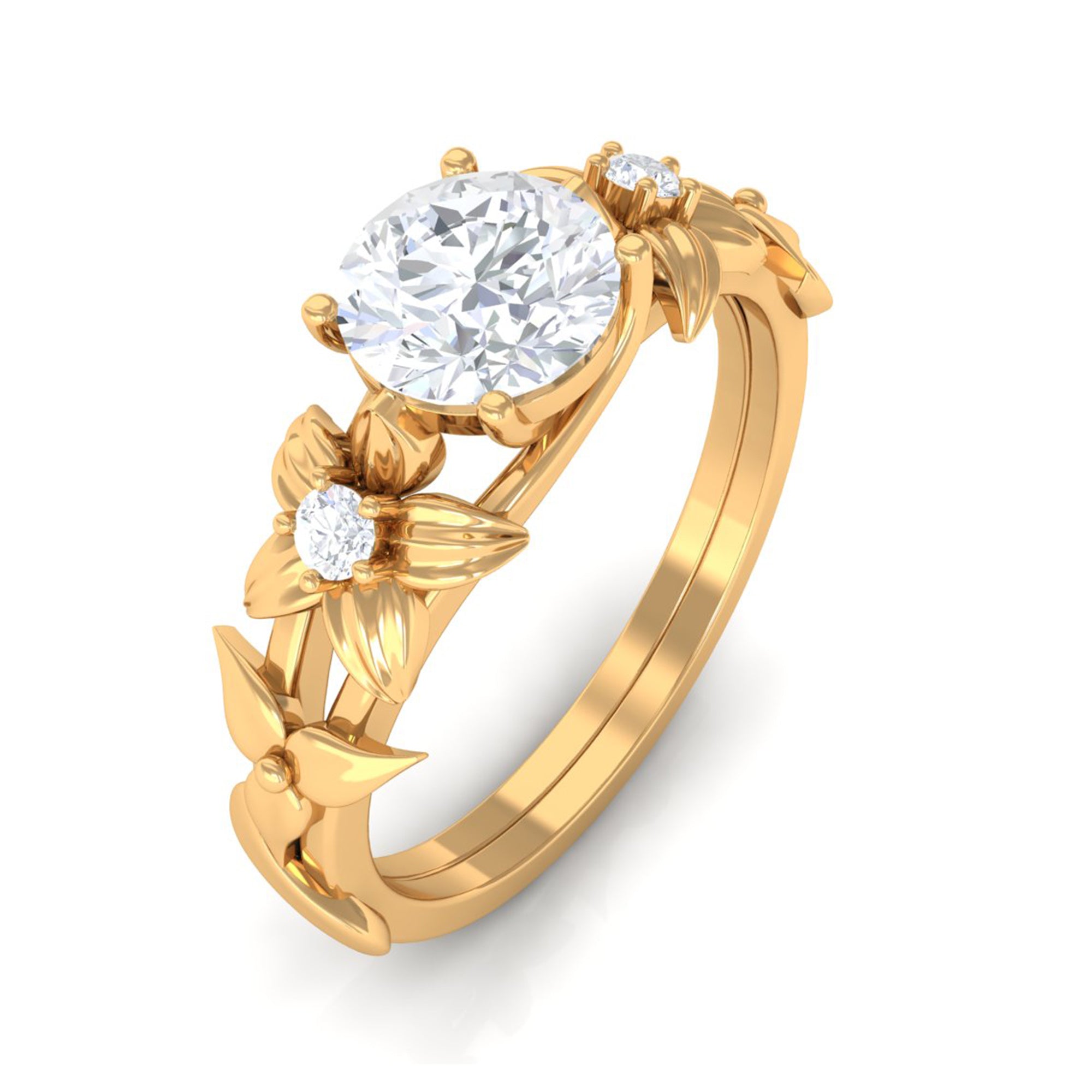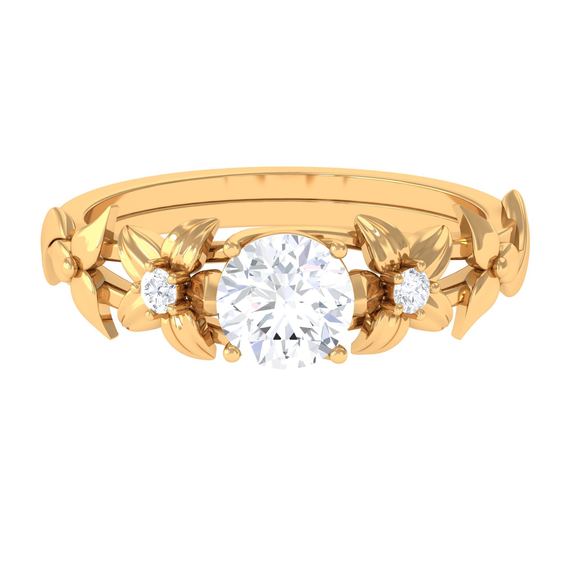 1 CT Simulated Diamond Gold Flower Engagement Ring