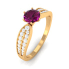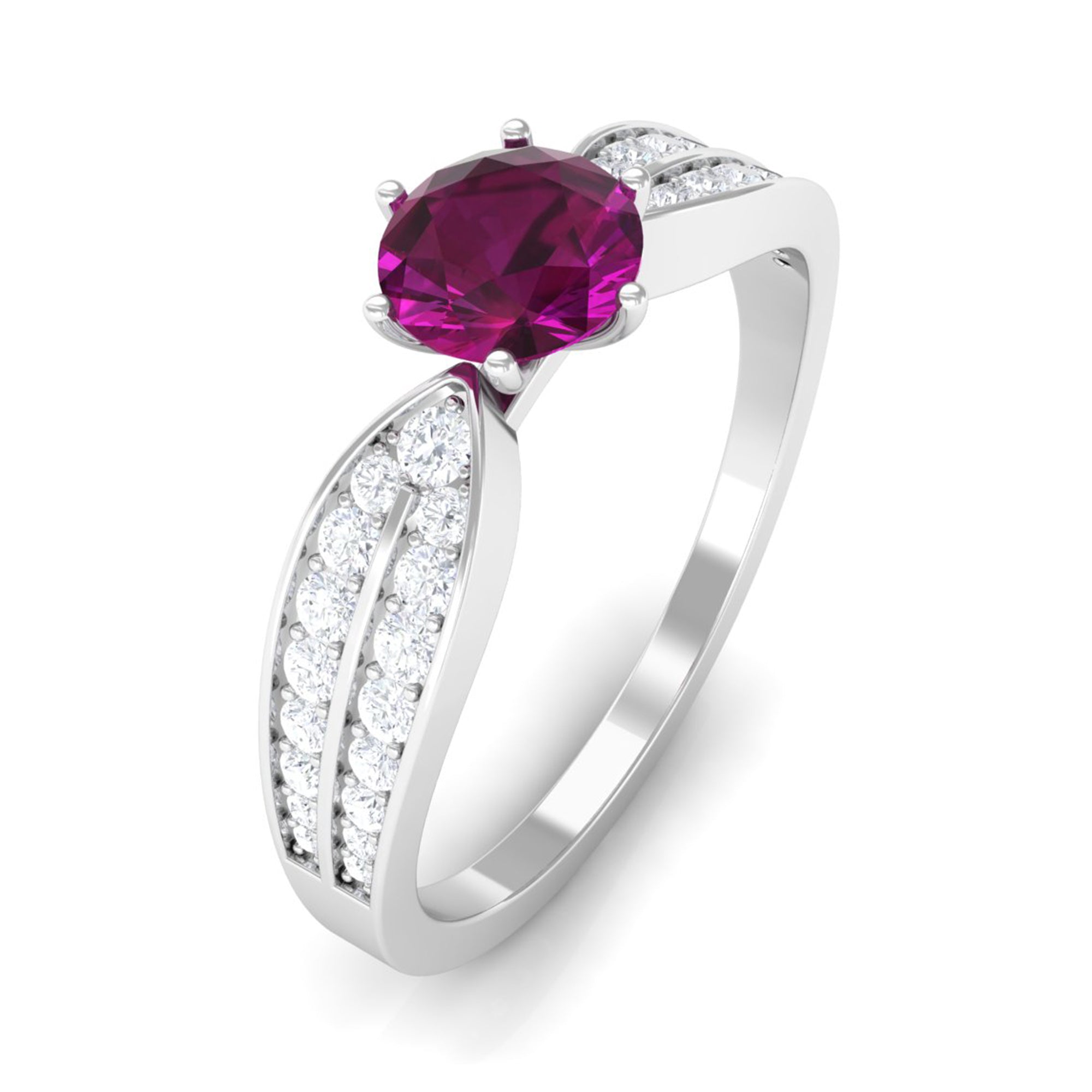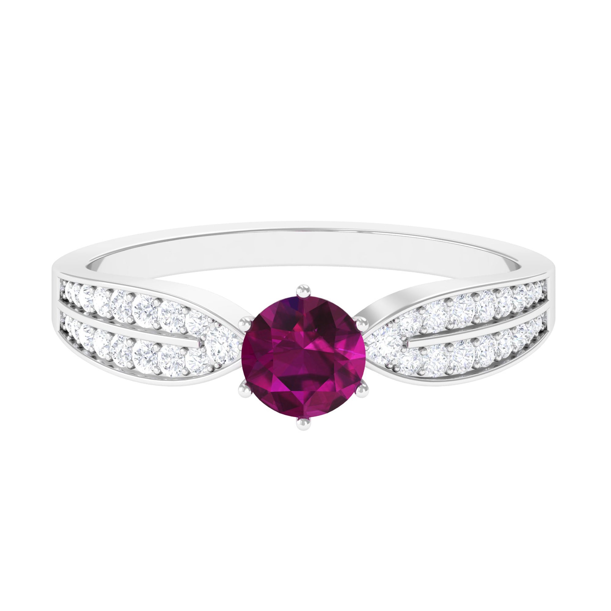 1 CT Six Prong Set Rhodolite Engagement Ring with Diamond Side Stones