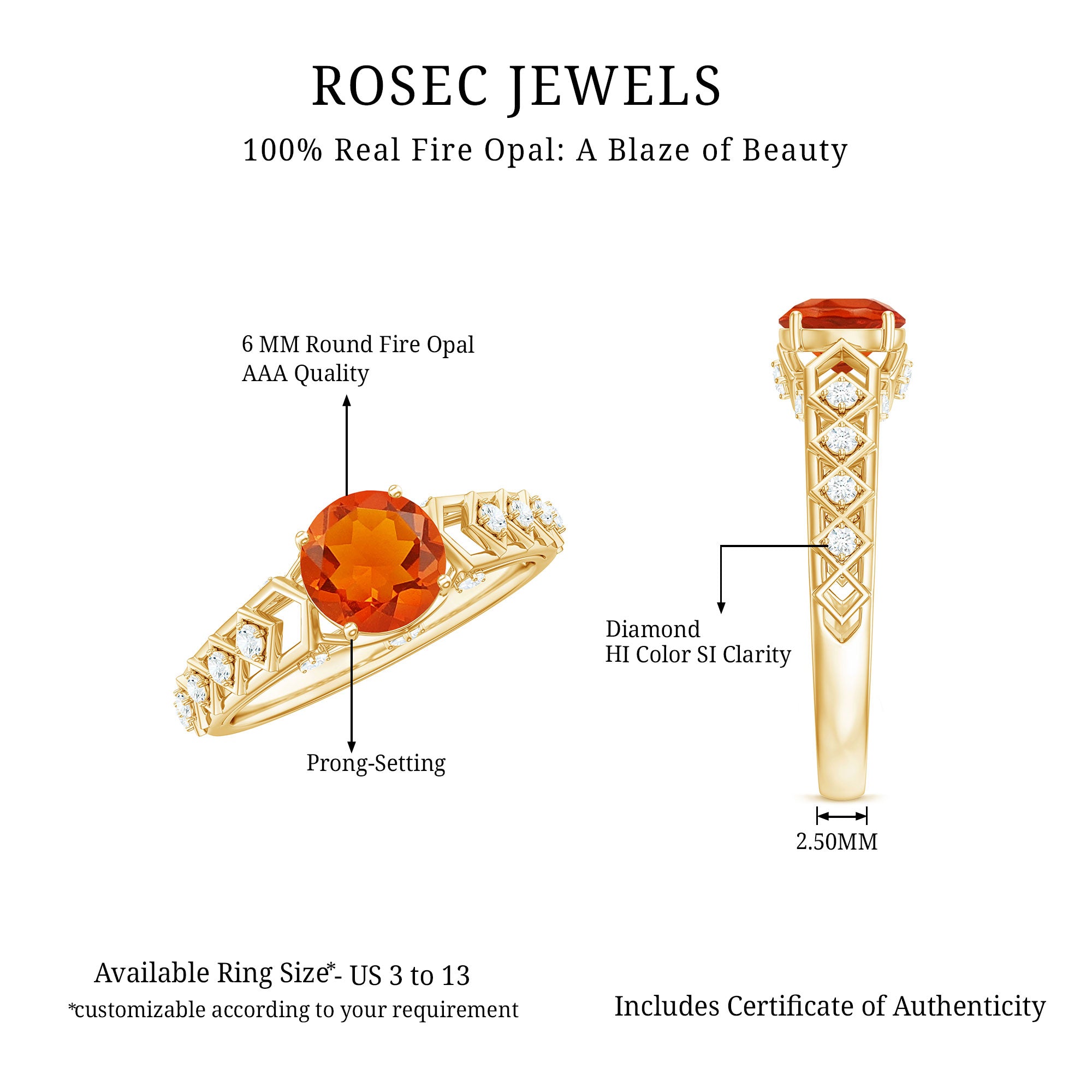 1 CT Solitaire Fire Opal and Diamond Art Deco Engagement Ring