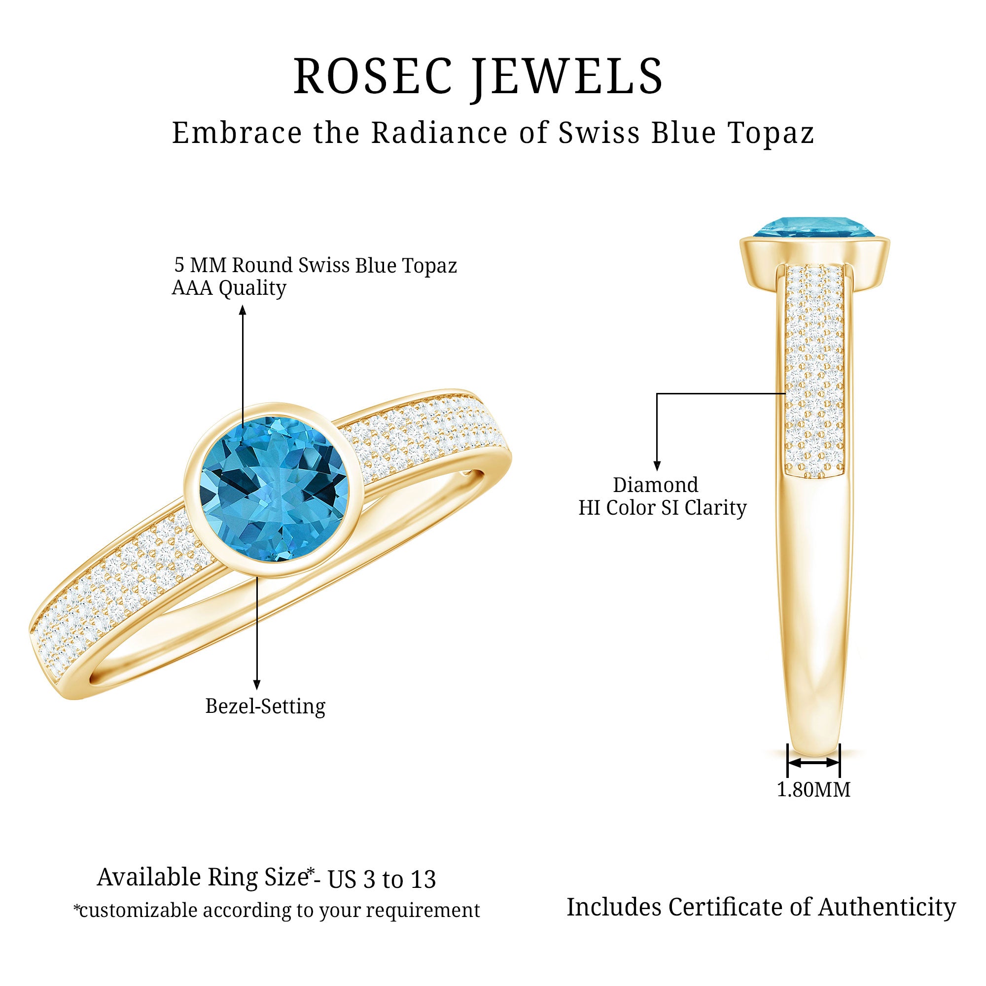 1 CT Solitaire Swiss Blue Topaz Solitaire and Diamond Engagement Ring