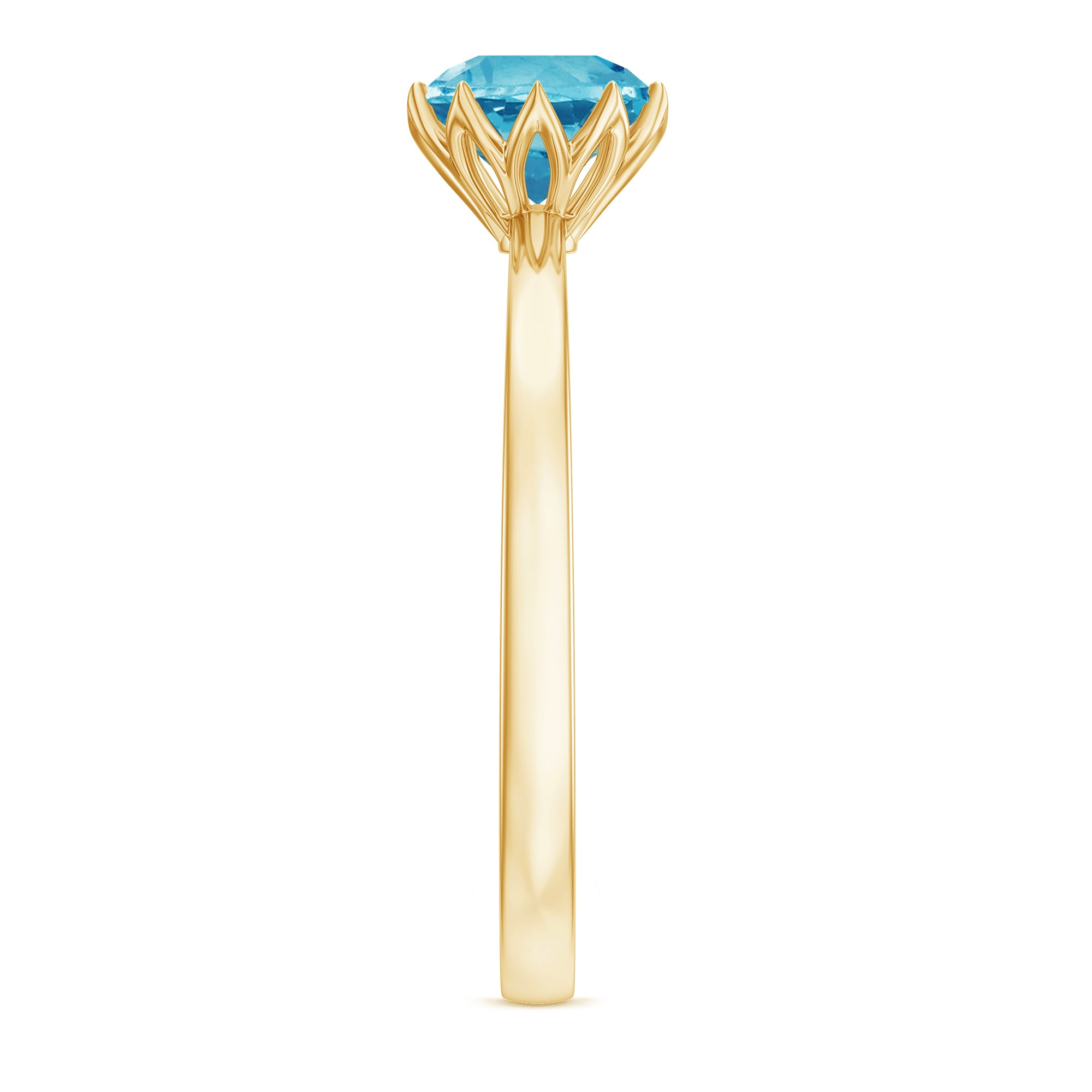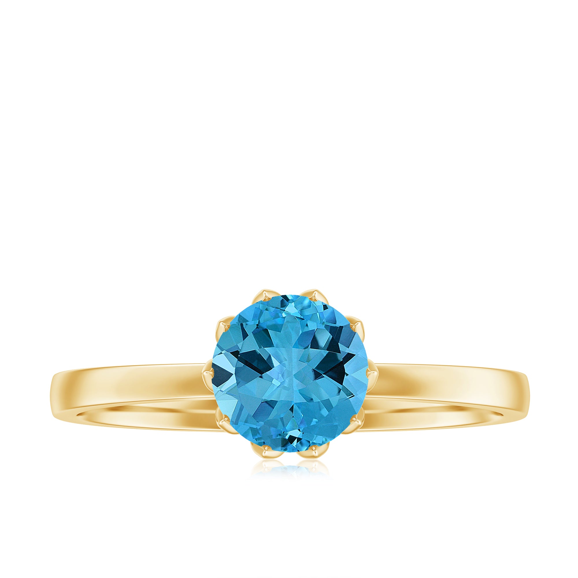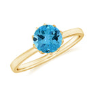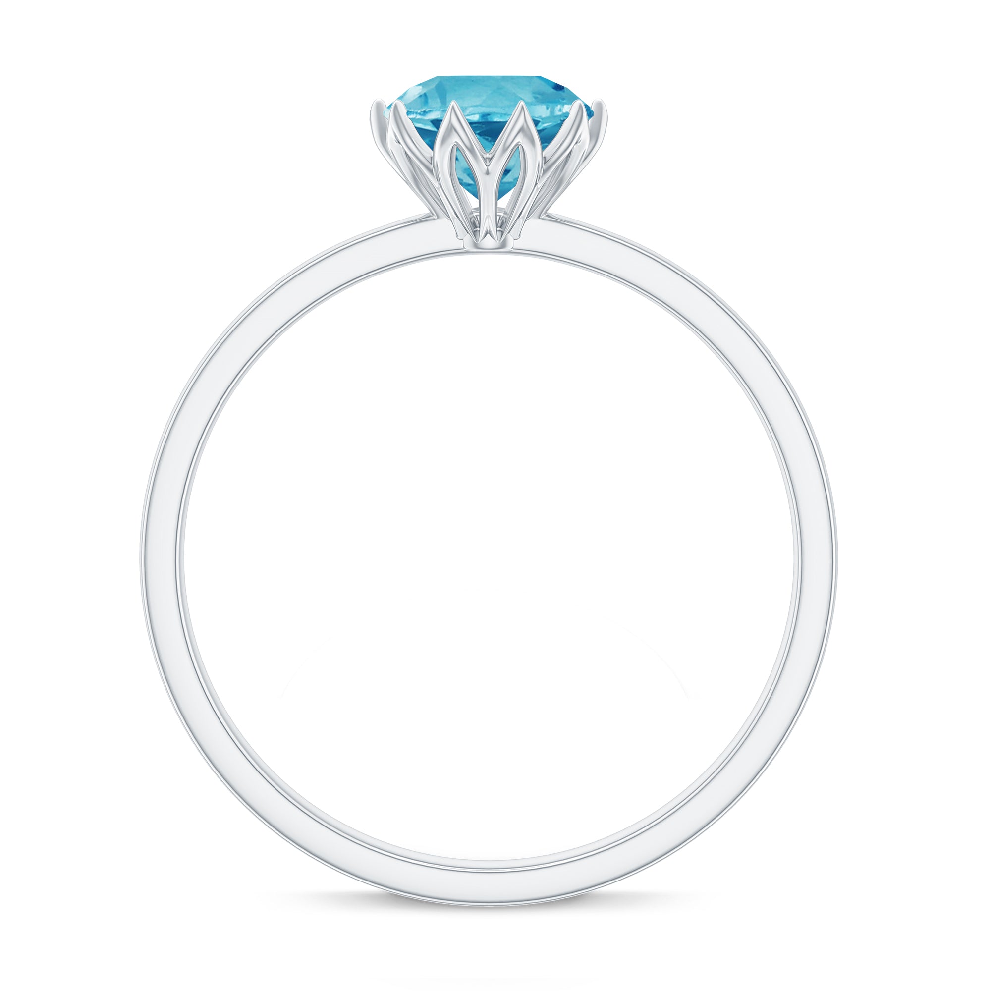 1 CT Swiss Blue Topaz Solitaire Ring in Lotus Basket Setting