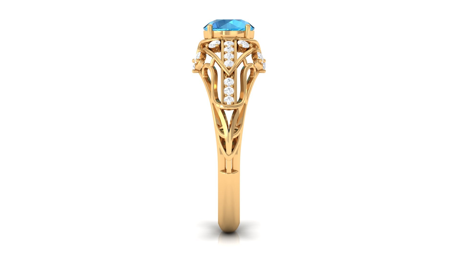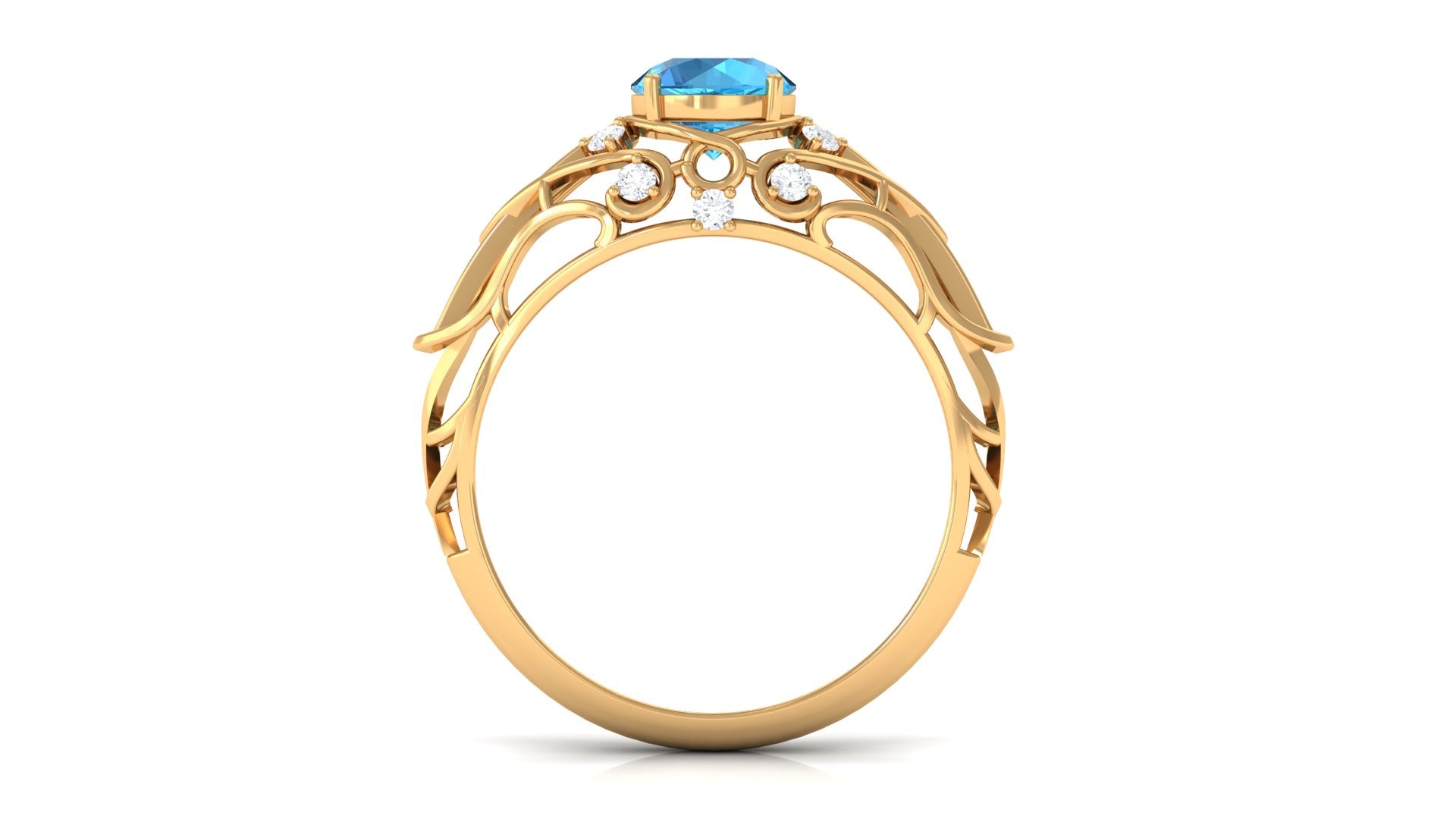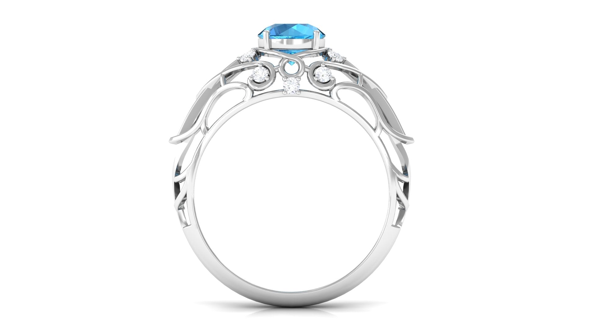 1 CT Vintage Inspired Swiss Blue Topaz Engagement Ring with Diamond