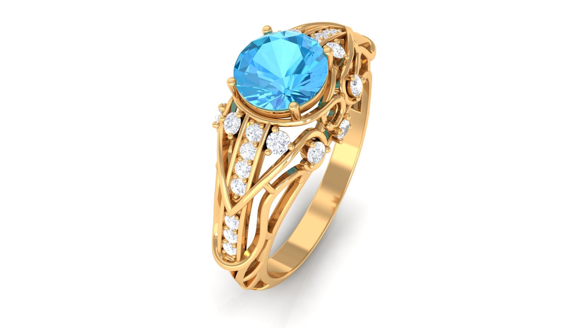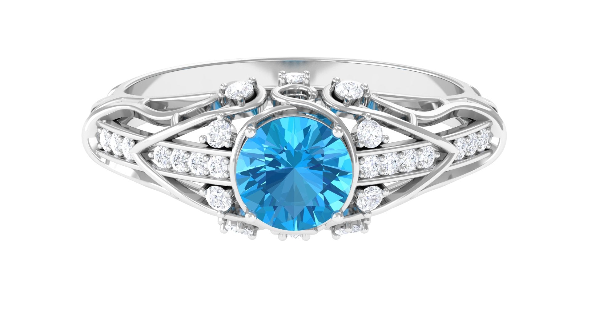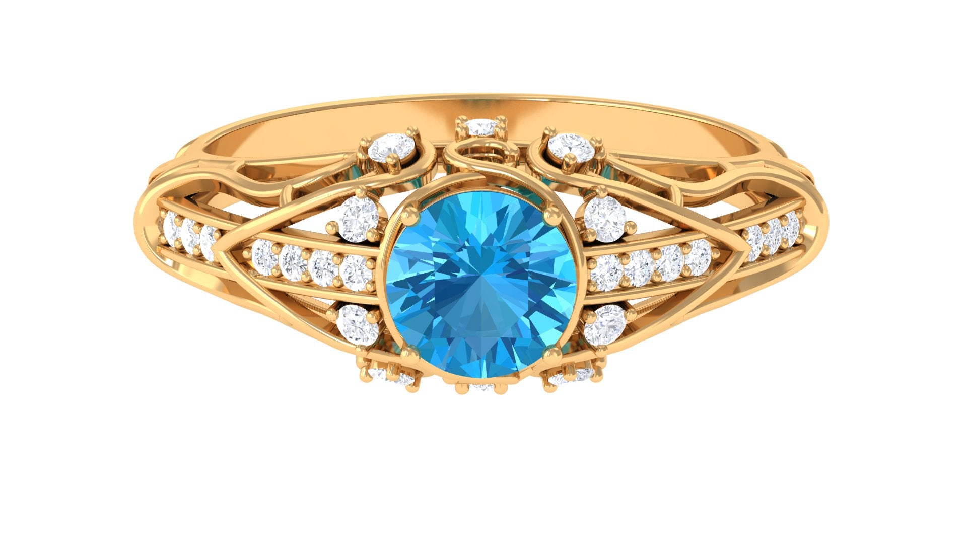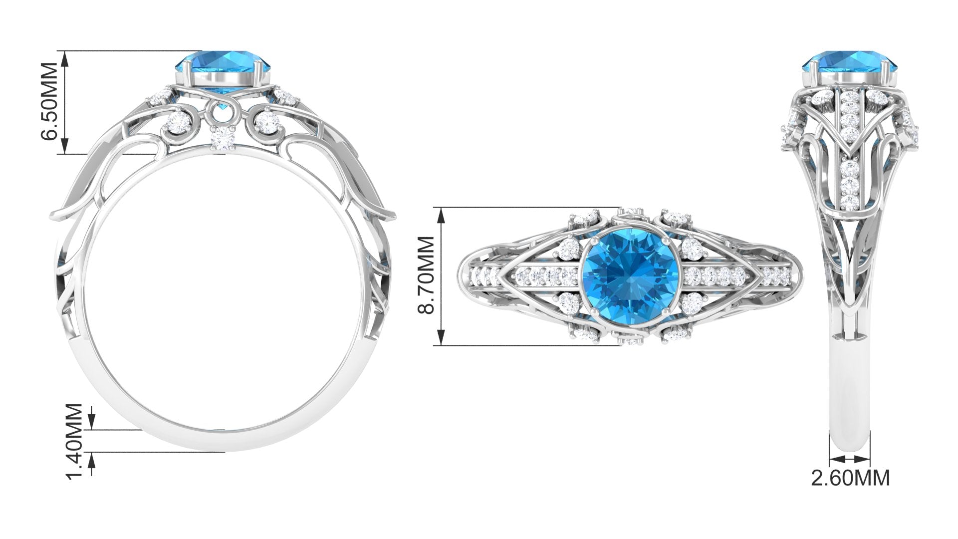 1 CT Vintage Inspired Swiss Blue Topaz Engagement Ring with Diamond