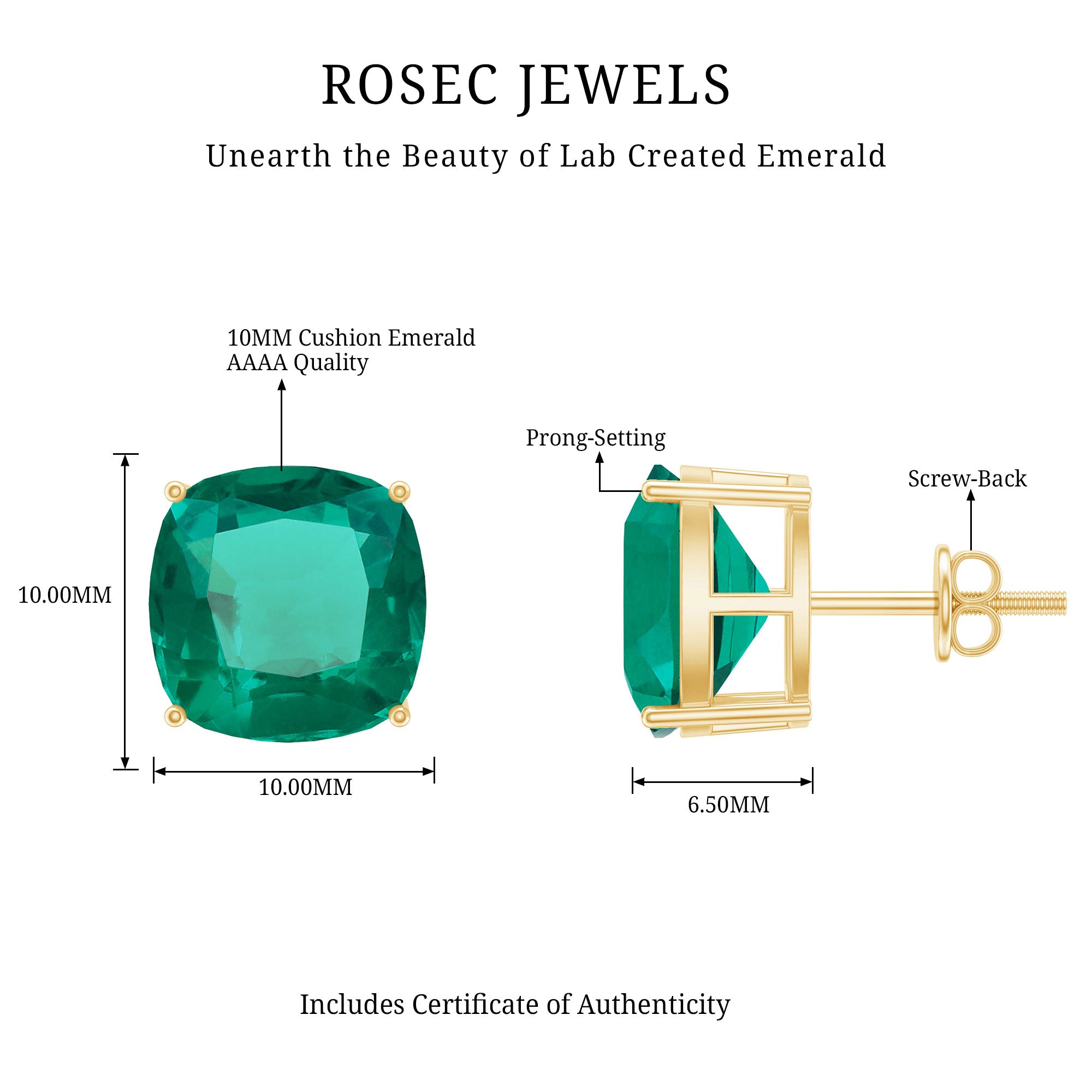 10 MM Cushion Cut Created Emerald Solitaire Stud Earrings
