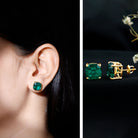 The Stud Earrings are a timeless addition to any jewelry collection. Featuring a sparkling Cushion Cut Lab Created Emerald stone set in a secure prong setting, these earrings are expertly crafted in gold for lasting beauty. Perfect for everyday wear, these solitaire gemstone earrings are a wonderful gift for someone special. They exude sophistication and elegance, making them a great choice for special occasions or just adding a touch of sparkle to your everyday look. With their classic design, these earrings are sure to become a cherished staple in your jewelry box.