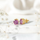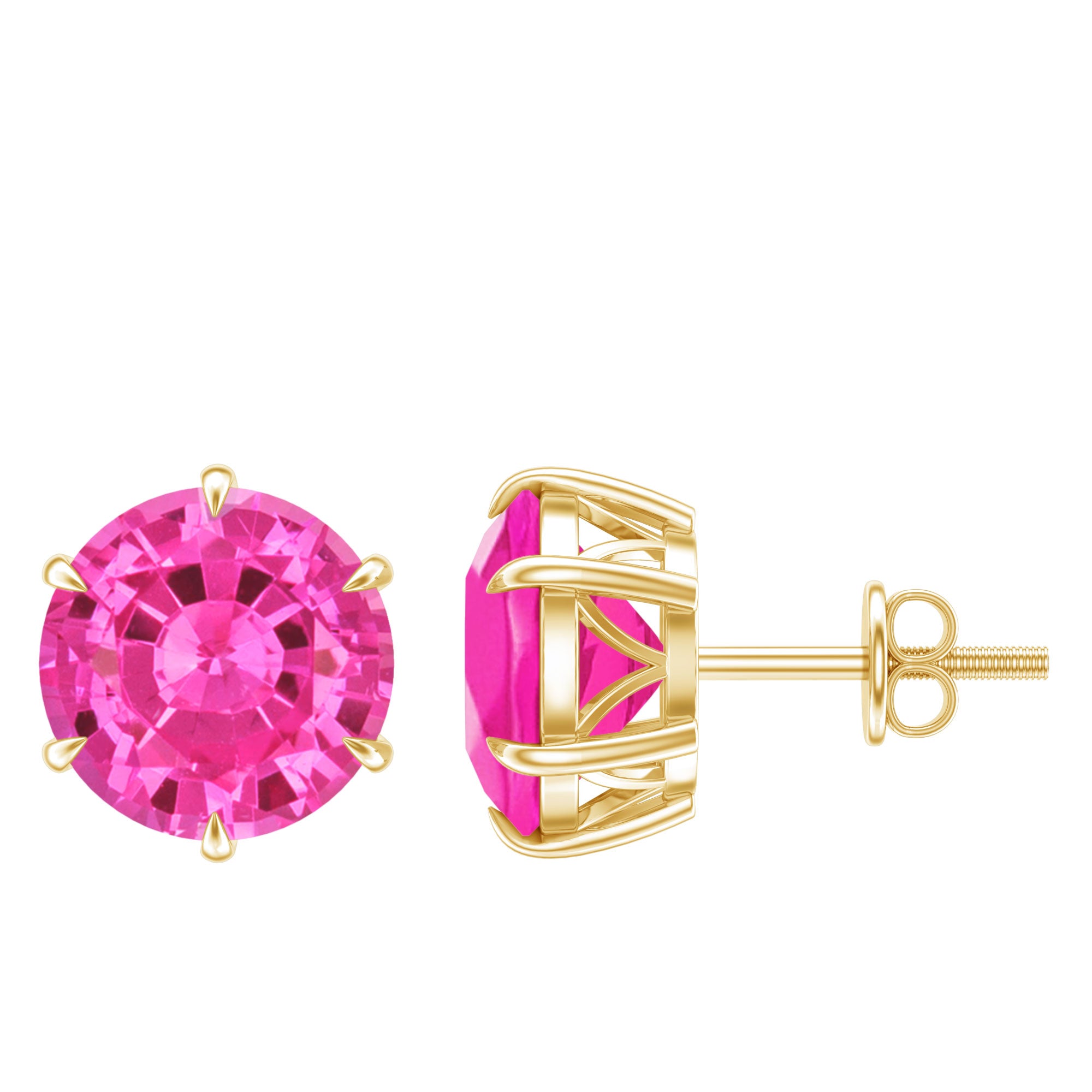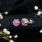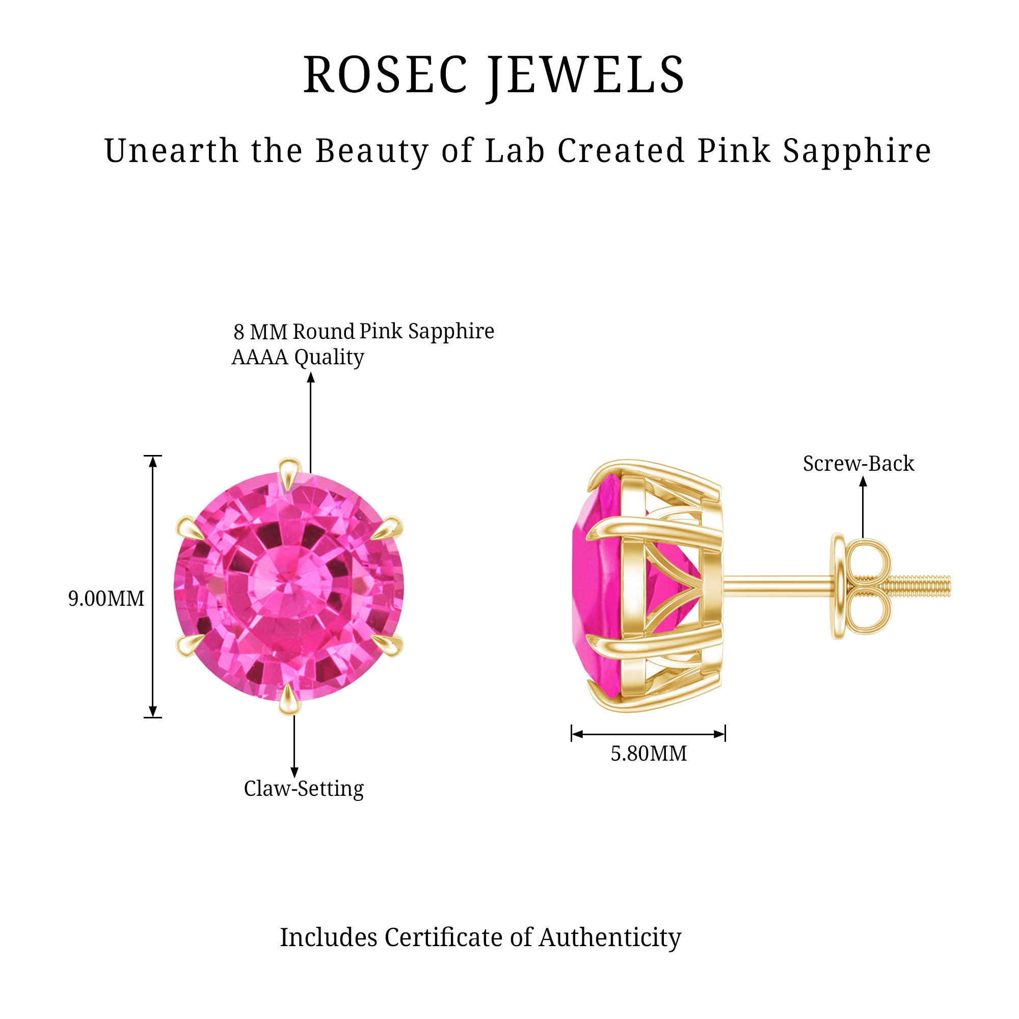 Indulge in the refined beauty of these Lab Grown Pink Sapphire Stud Earrings. They feature dazzling 8 MM Round Cut Lab Grown Pink Sapphire delicately nestled in a captivating Claw Setting. The vibrant pink hue of the AAAA Quality Lab created sapphire gemstones adds a touch of allure and timelessness to any ensemble. These Solitaire Stud Earrings have a timeless design that glams up every outfit. Whether its a formal event or a casual outing, these exquisite Pink Sapphire Solitaire earrings are sure to elevate your style and make a lasting impression with their exquisite design and impeccable craftsmanship.